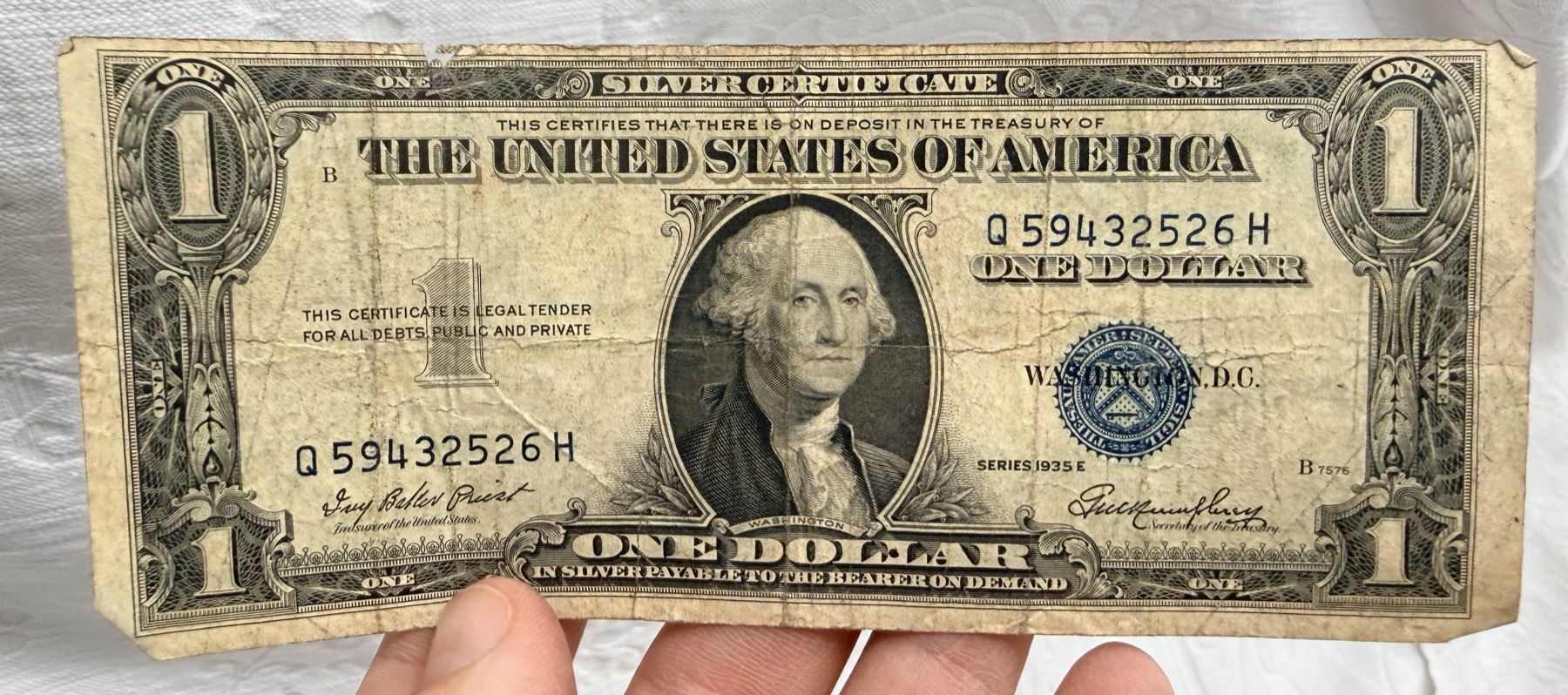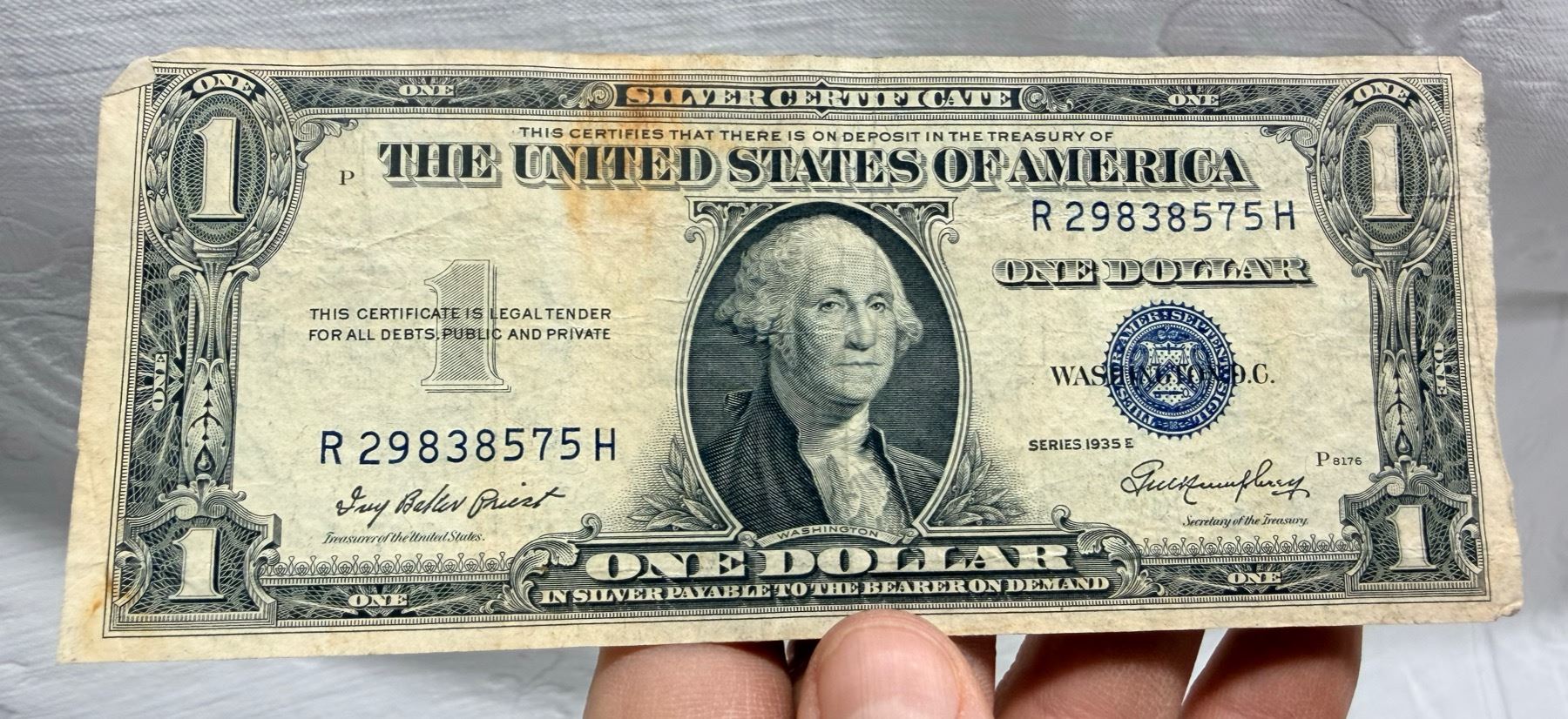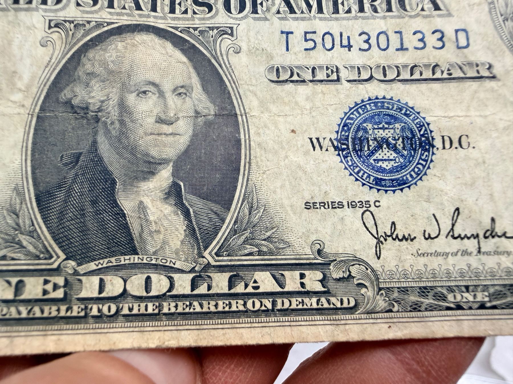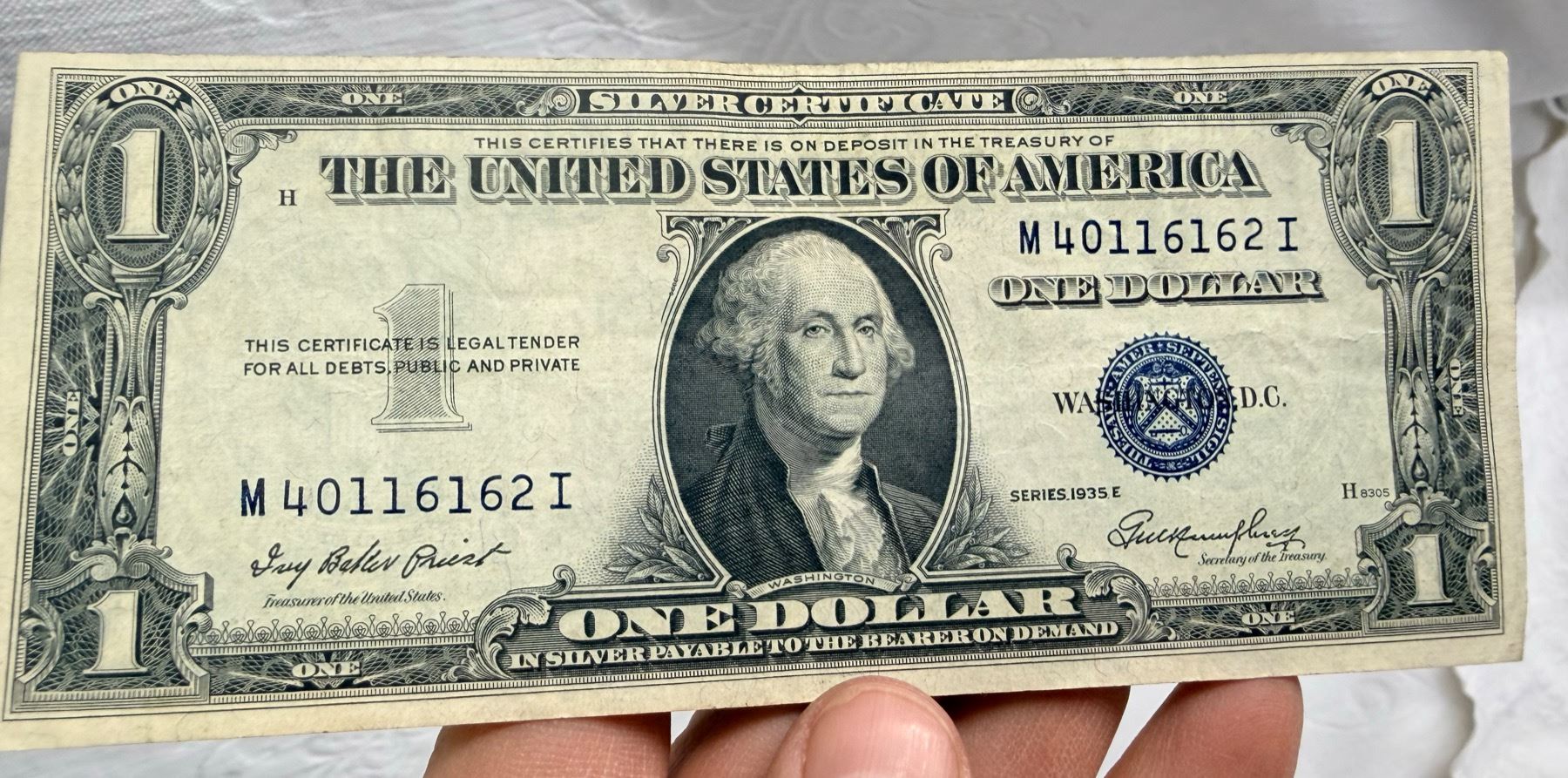 EACH SILVER CERTIFICATE WAS BACKED BY ITS FACE VALUE IN SILVER DOLLARS OR SILVER BULLION IN THE UNITED STATES TREASURY, AND HOLDERS OF THE NOTES COULD ACTUALLY EXCHANGE THEM FOR THE SILVER UNTIL 1968. SILVER CERTIFICATES HAVE DISTINCTIVE BLUE TREASURY SEALS AND BLUE SERIAL NUMBERS.
