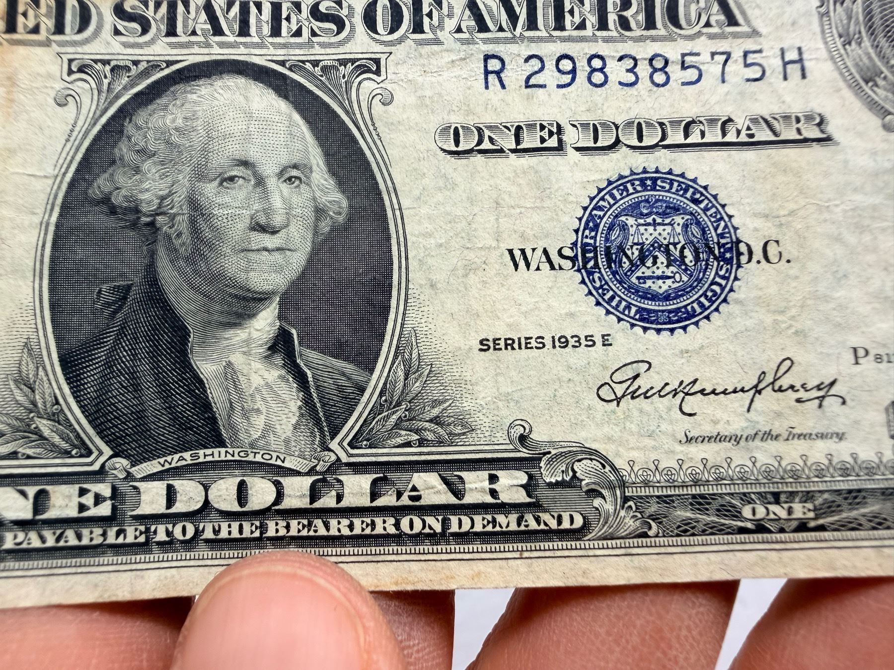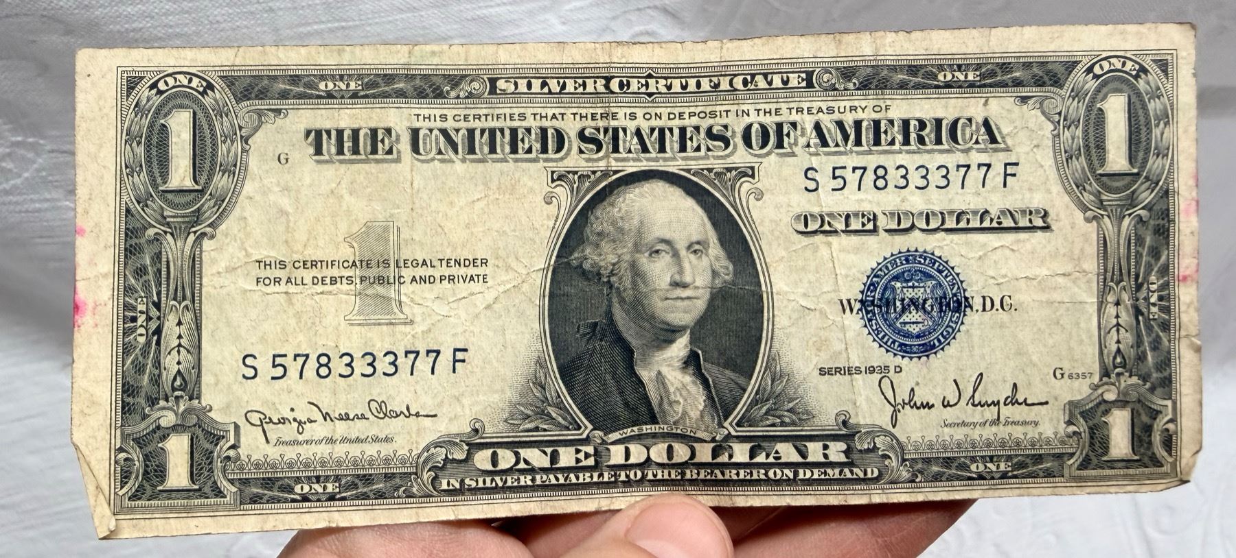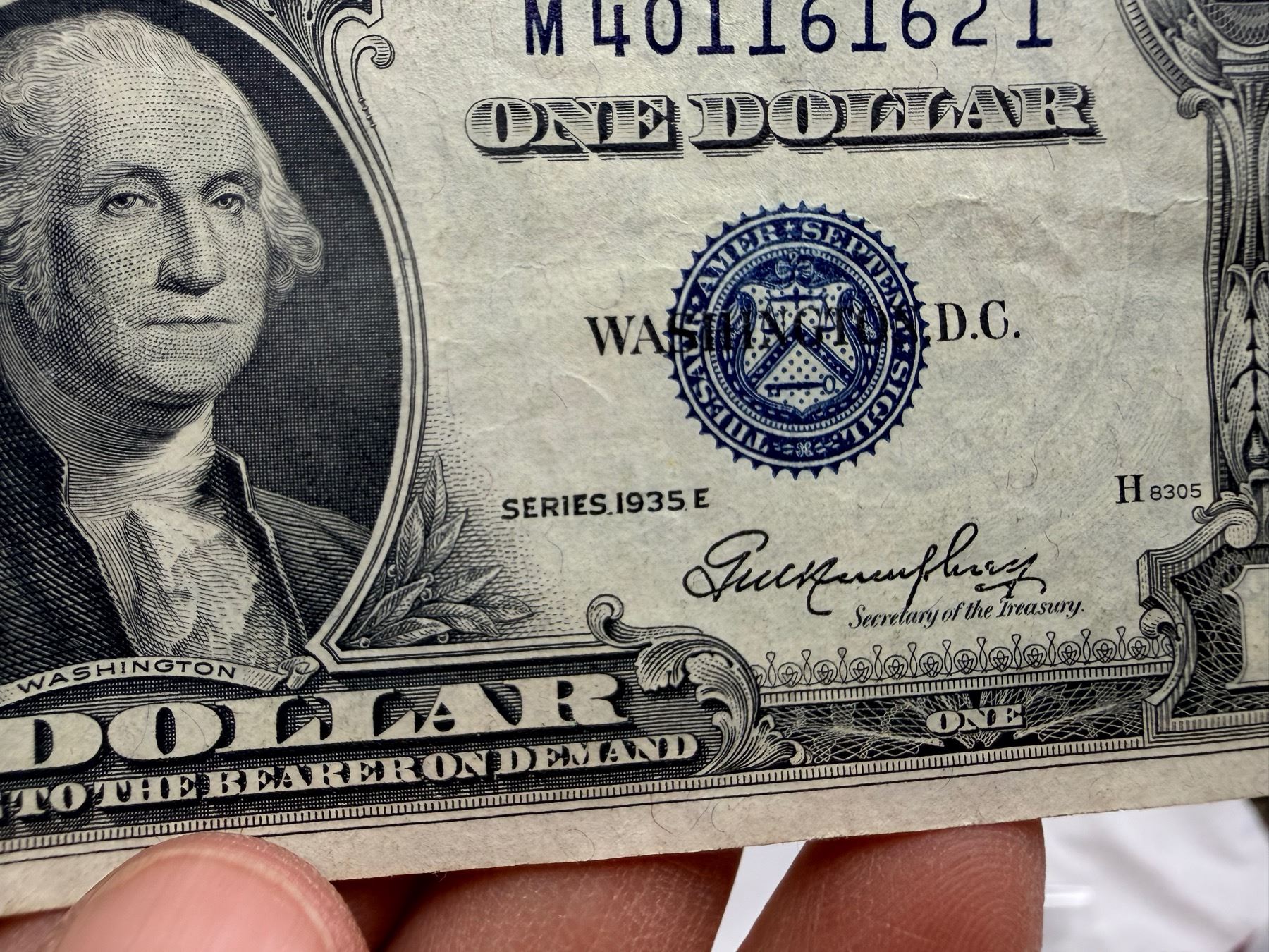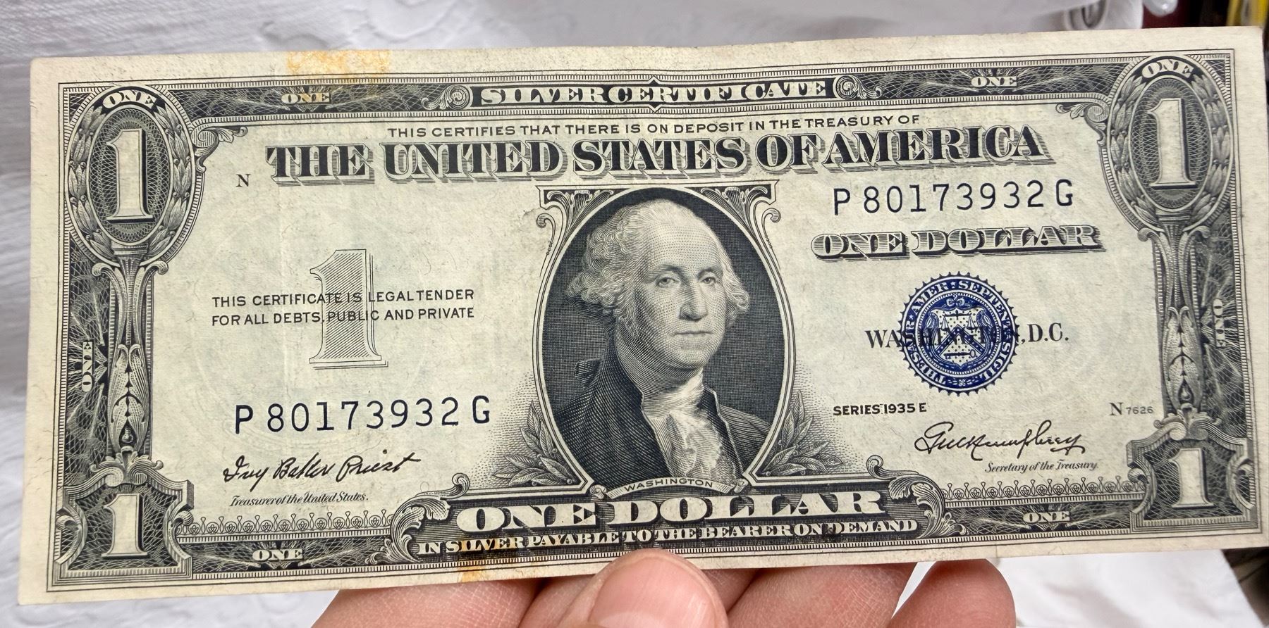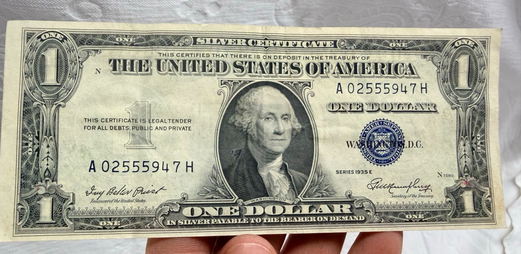 EACH SILVER CERTIFICATE WAS BACKED BY ITS FACE VALUE IN SILVER DOLLARS OR SILVER BULLION IN THE UNITED STATES TREASURY, AND HOLDERS OF THE NOTES COULD ACTUALLY EXCHANGE THEM FOR THE SILVER UNTIL 1968. SILVER CERTIFICATES HAVE DISTINCTIVE BLUE TREASURY SEALS AND BLUE SERIAL NUMBERS.