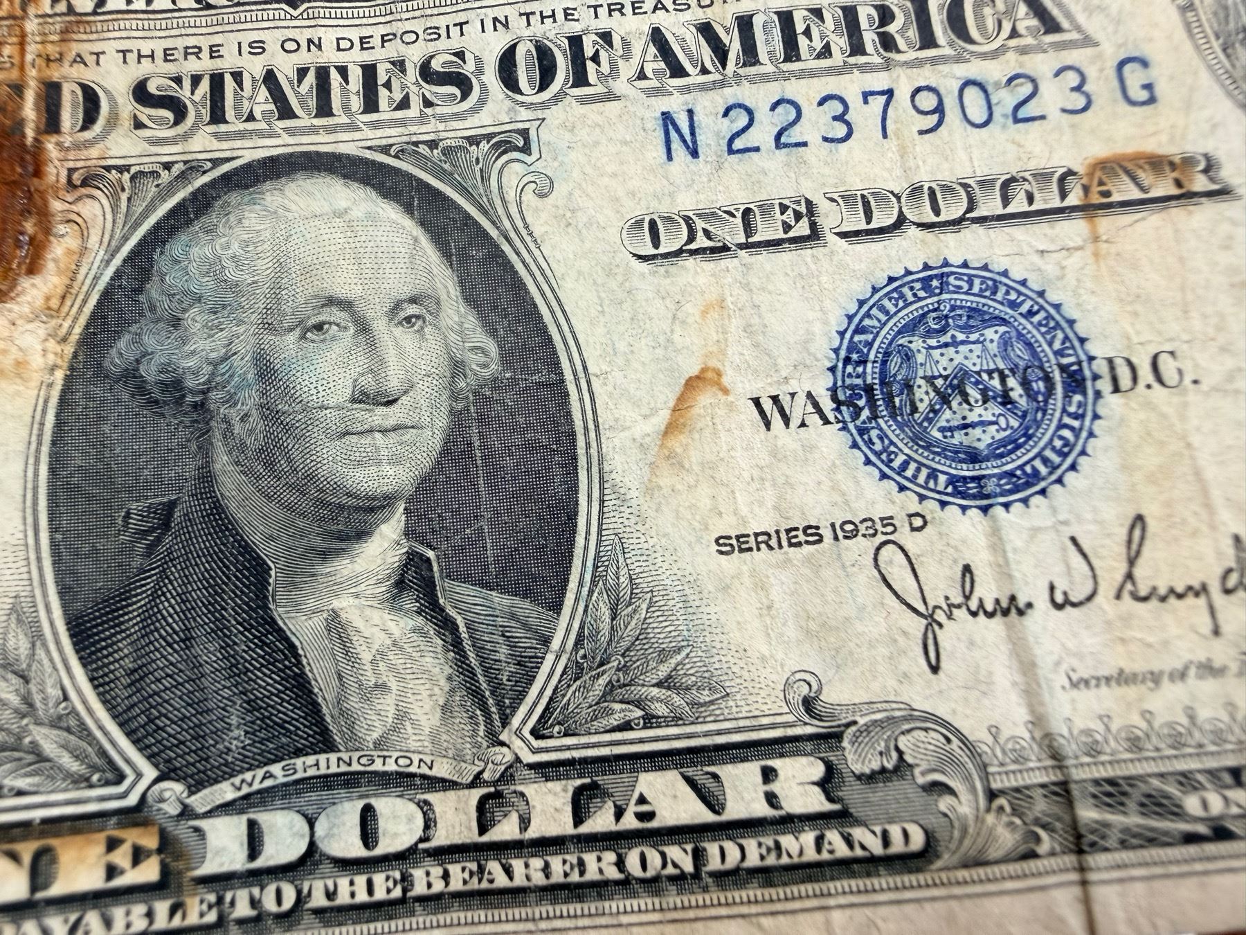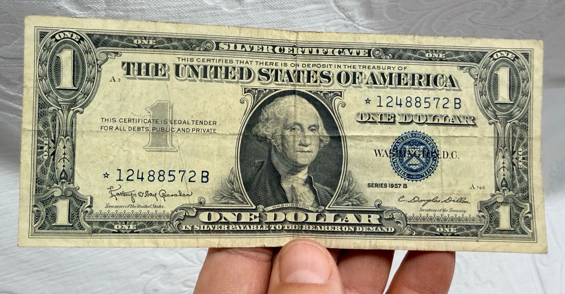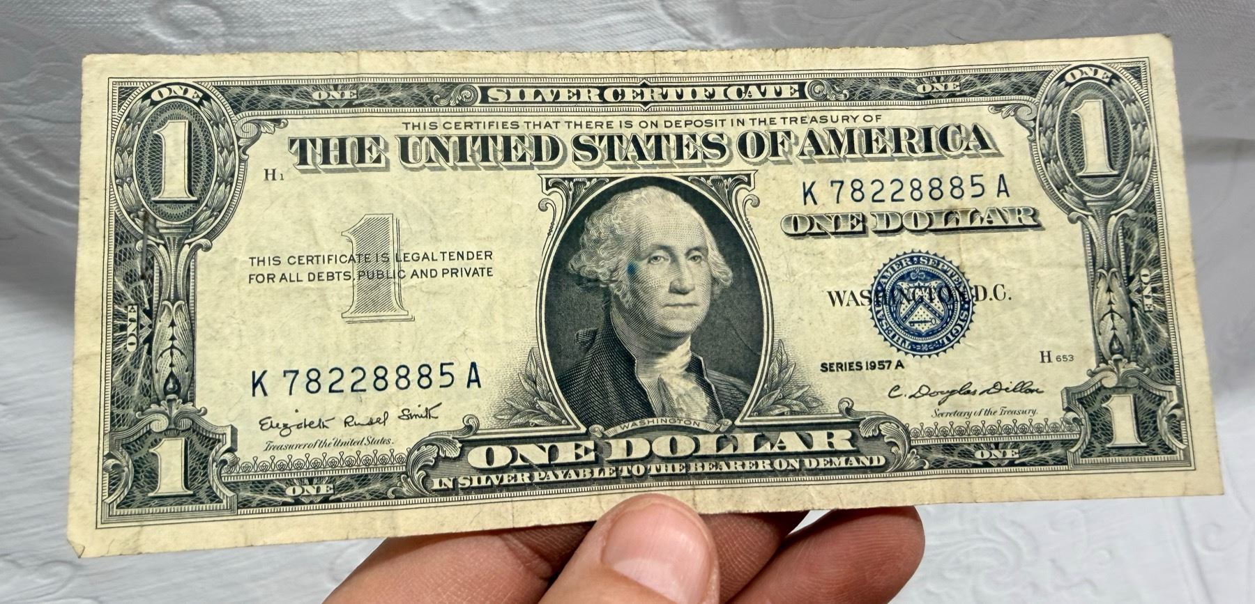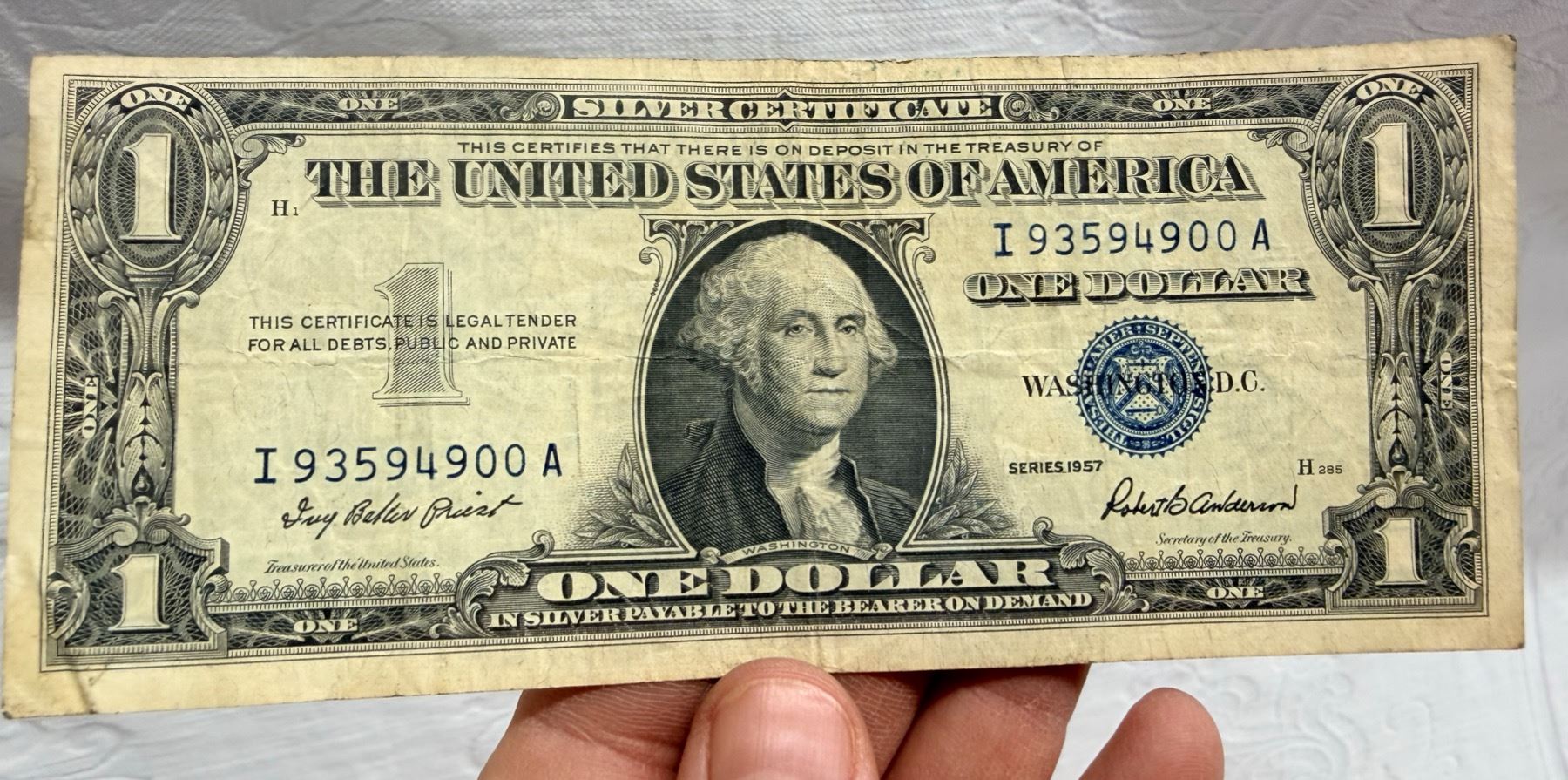 EACH SILVER CERTIFICATE WAS BACKED BY ITS FACE VALUE IN SILVER DOLLARS OR SILVER BULLION IN THE UNITED STATES TREASURY, AND HOLDERS OF THE NOTES COULD ACTUALLY EXCHANGE THEM FOR THE SILVER UNTIL 1968. SILVER CERTIFICATES HAVE DISTINCTIVE BLUE TREASURY SEALS AND BLUE SERIAL NUMBERS.
