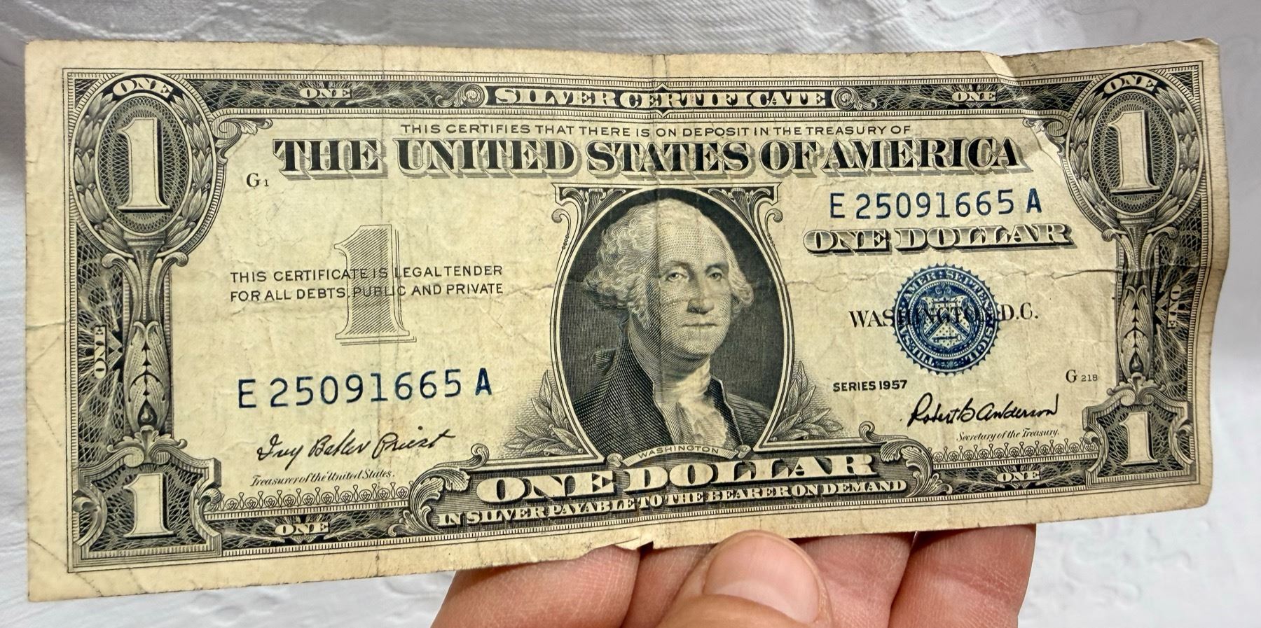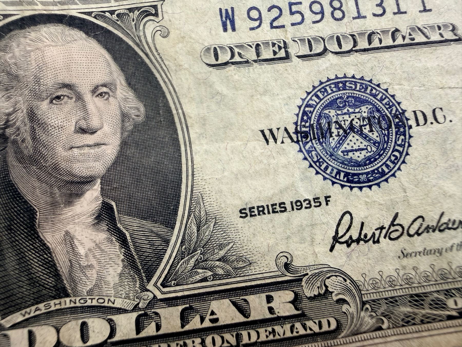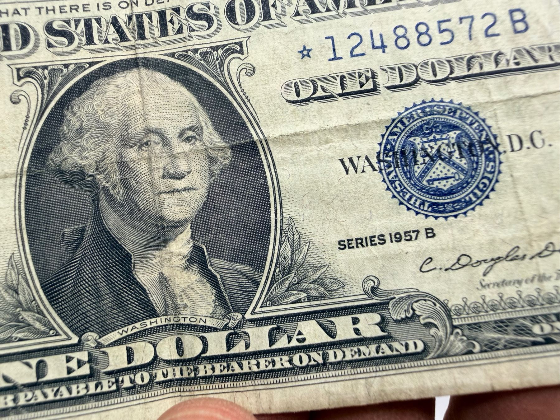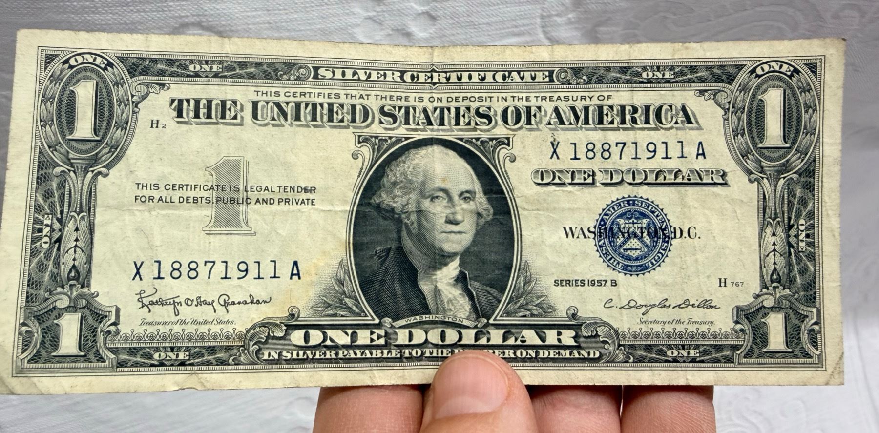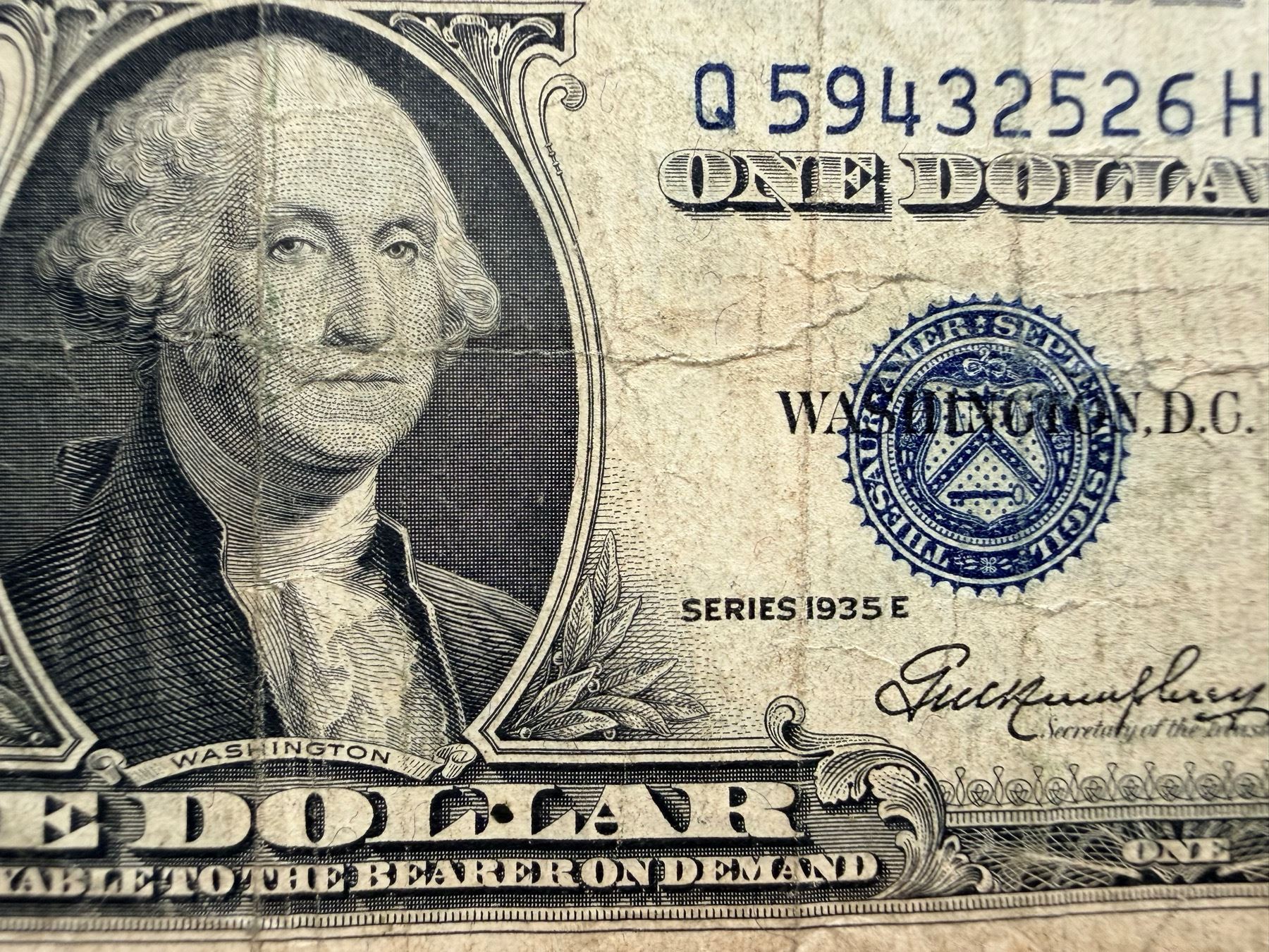 EACH SILVER CERTIFICATE WAS BACKED BY ITS FACE VALUE IN SILVER DOLLARS OR SILVER BULLION IN THE UNITED STATES TREASURY, AND HOLDERS OF THE NOTES COULD ACTUALLY EXCHANGE THEM FOR THE SILVER UNTIL 1968. SILVER CERTIFICATES HAVE DISTINCTIVE BLUE TREASURY SEALS AND BLUE SERIAL NUMBERS.