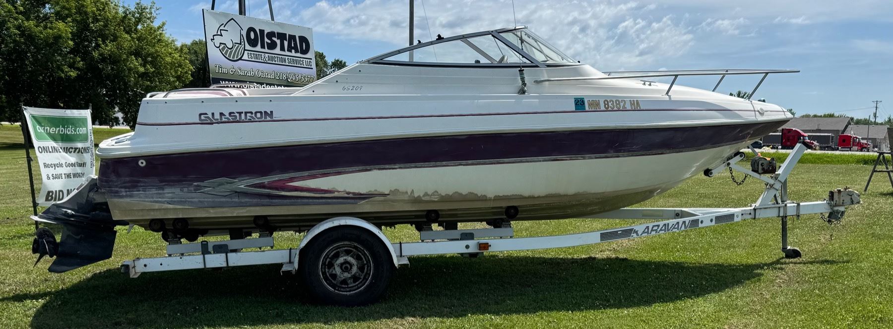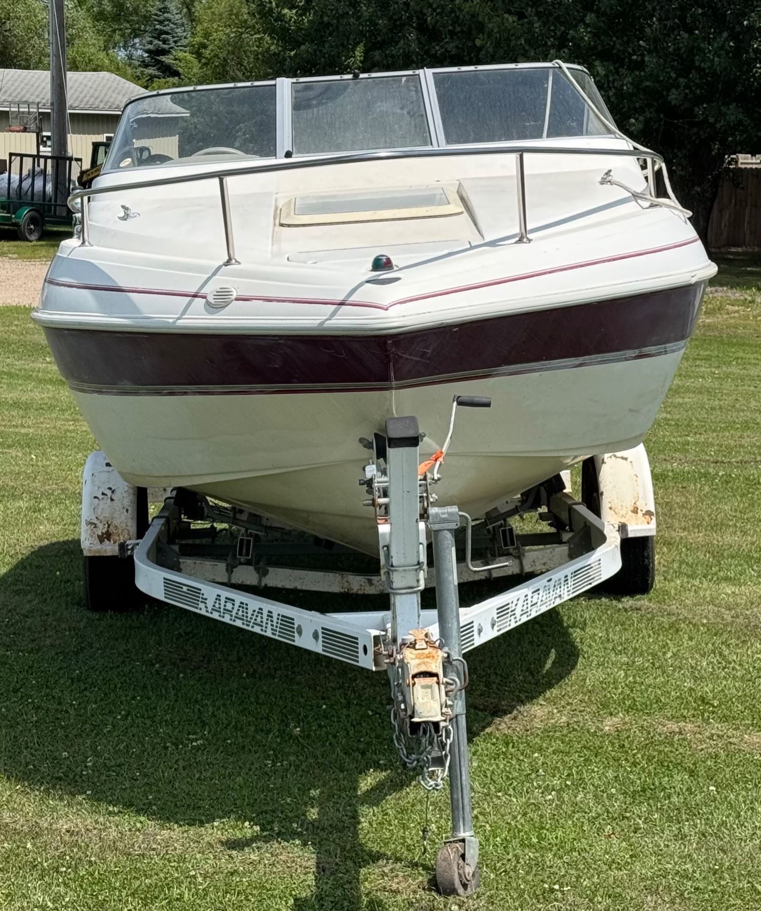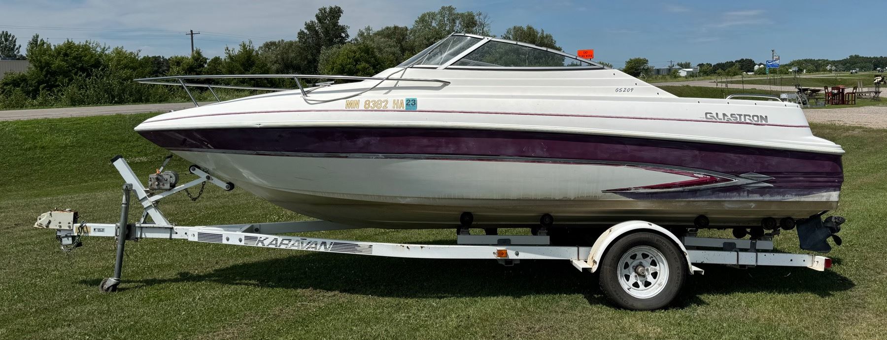 1997 GLASTRON 20' 2" BOAT WITH 5.7GL VOLVO PENTA SX COBRA INBOARD MOTOR ON KARAVAN TRAILER