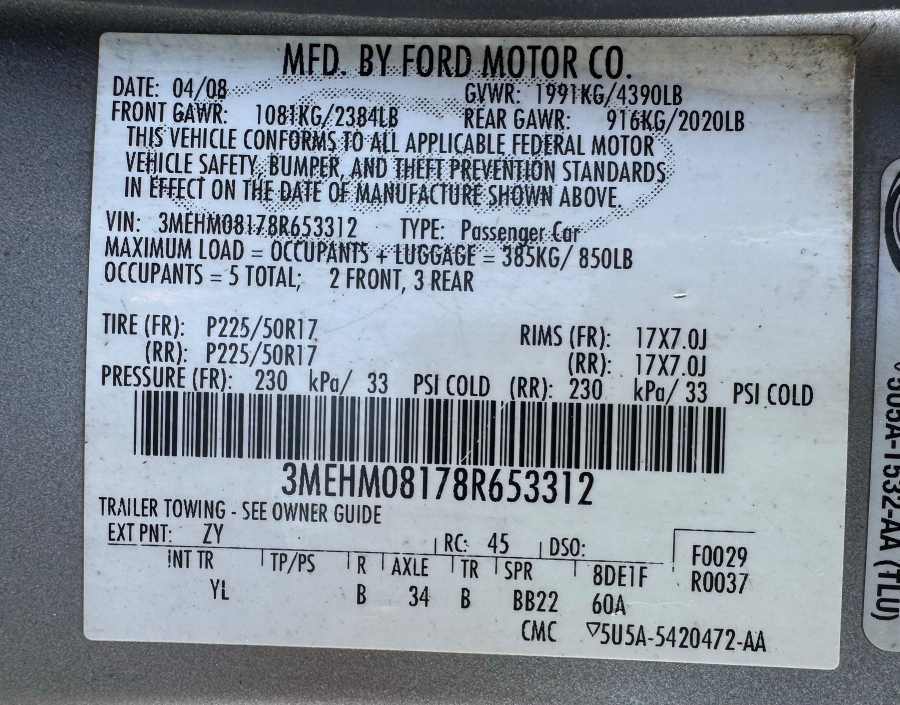 VIN: 3MEHM08178R653312; ODOMETER READS: 90335 MILES