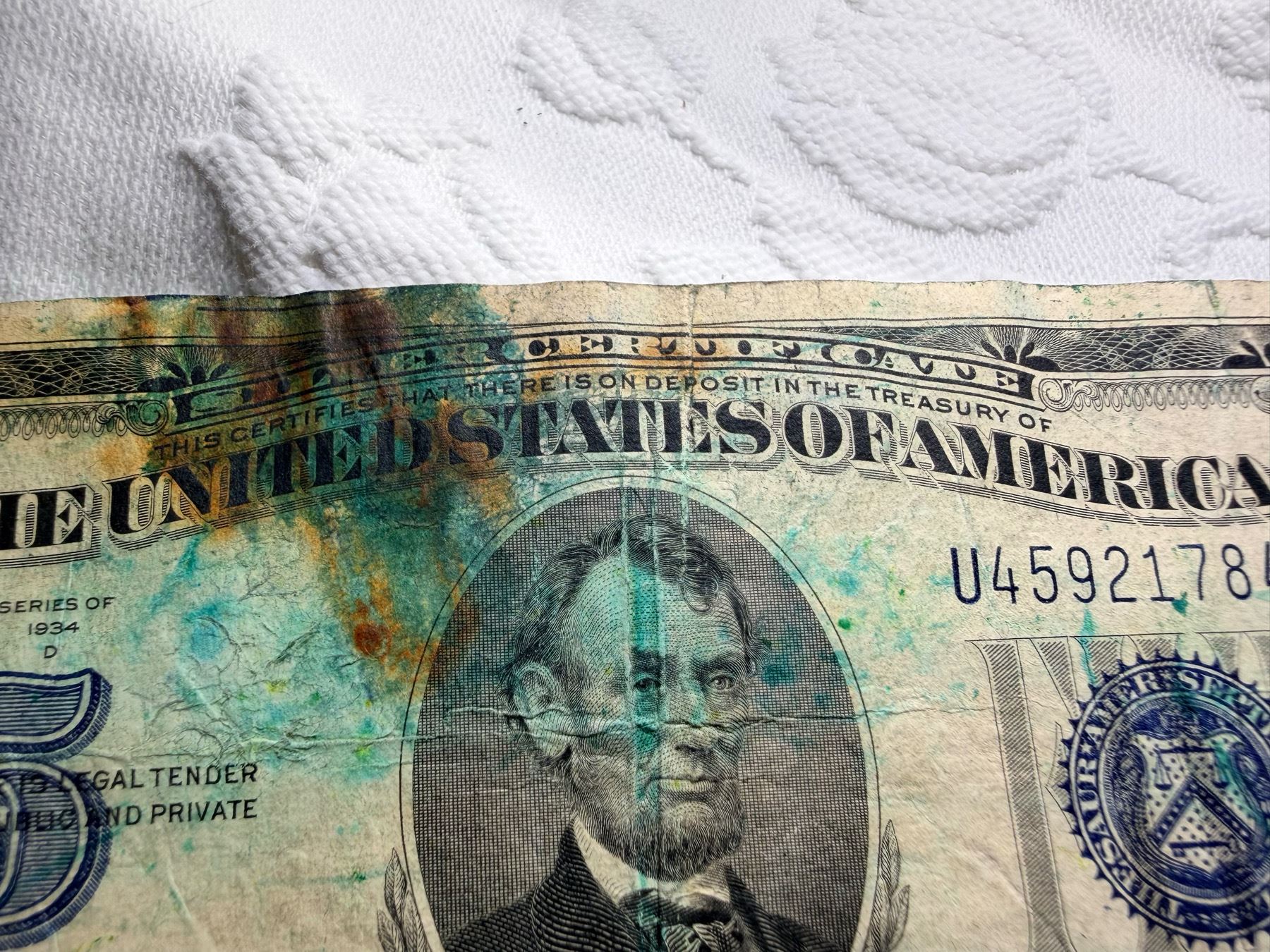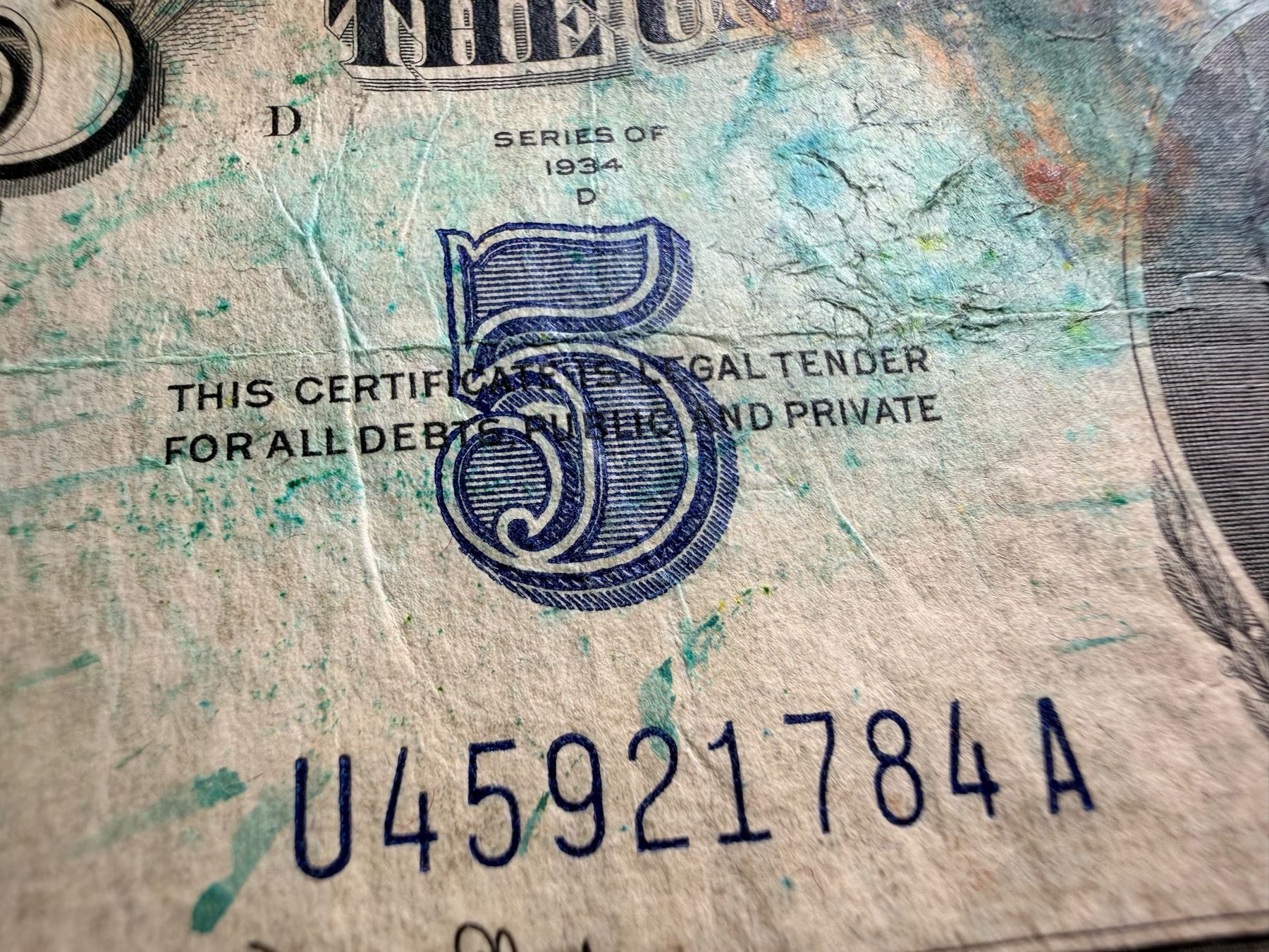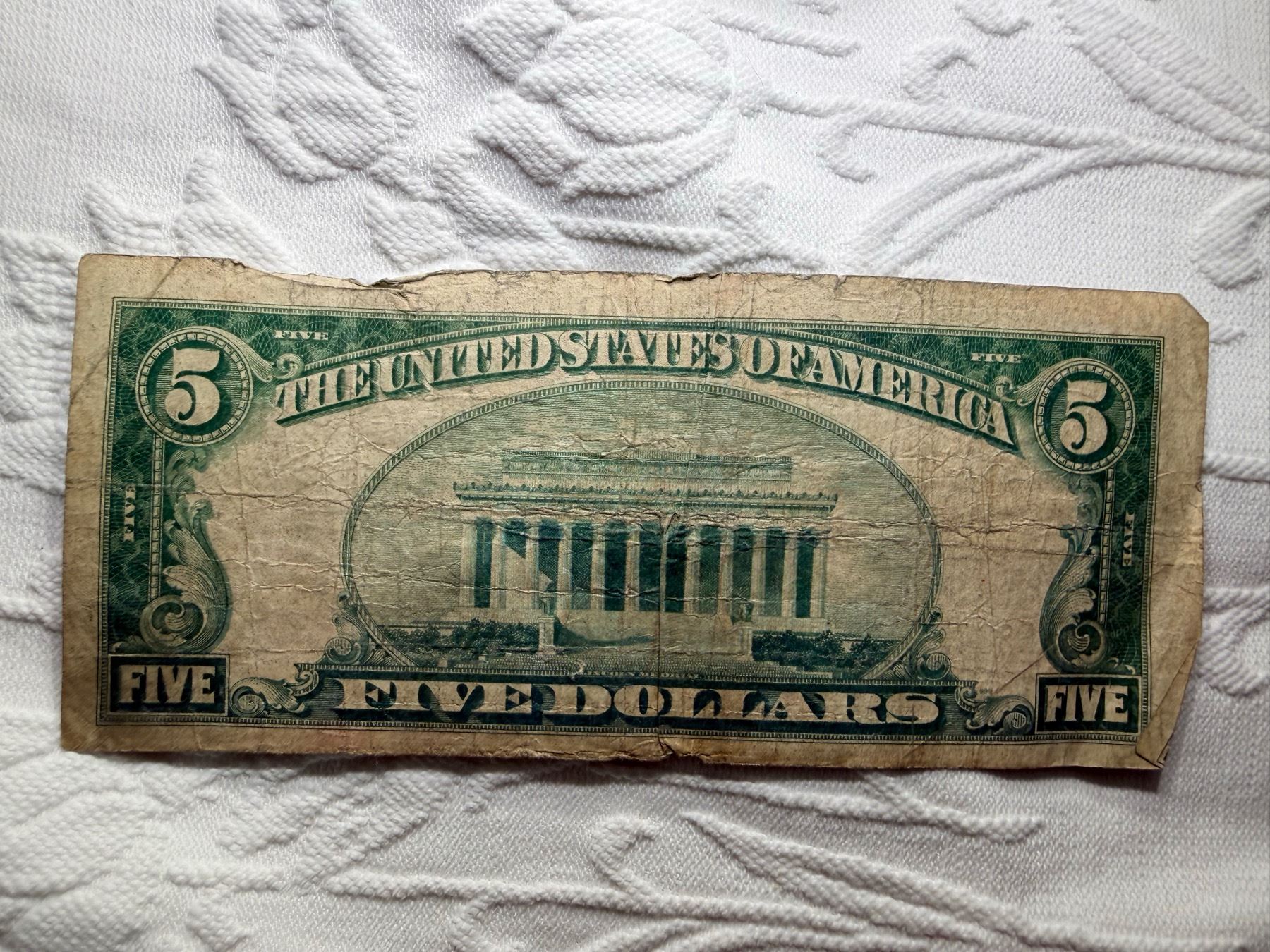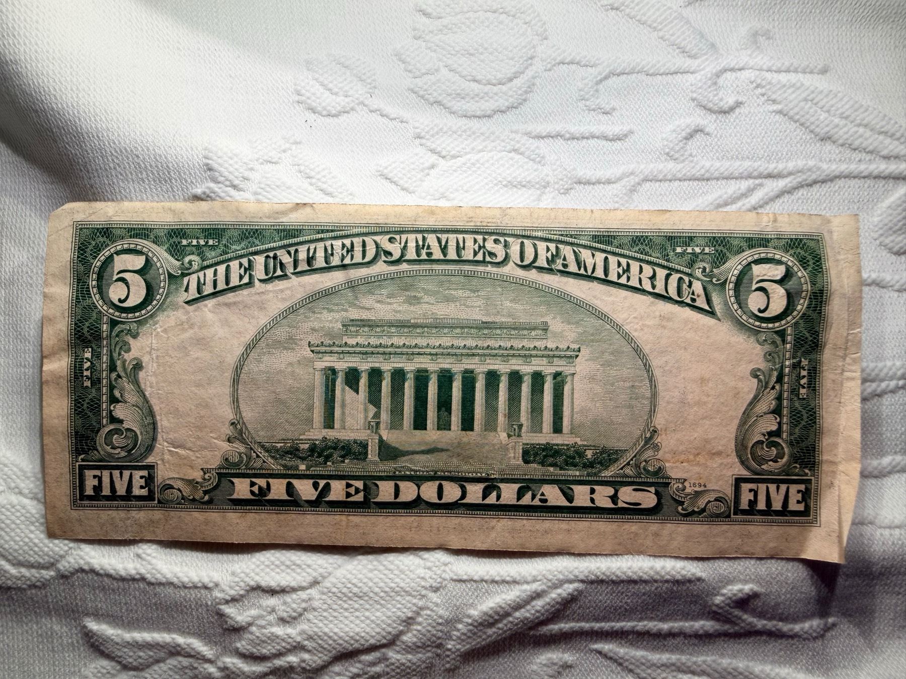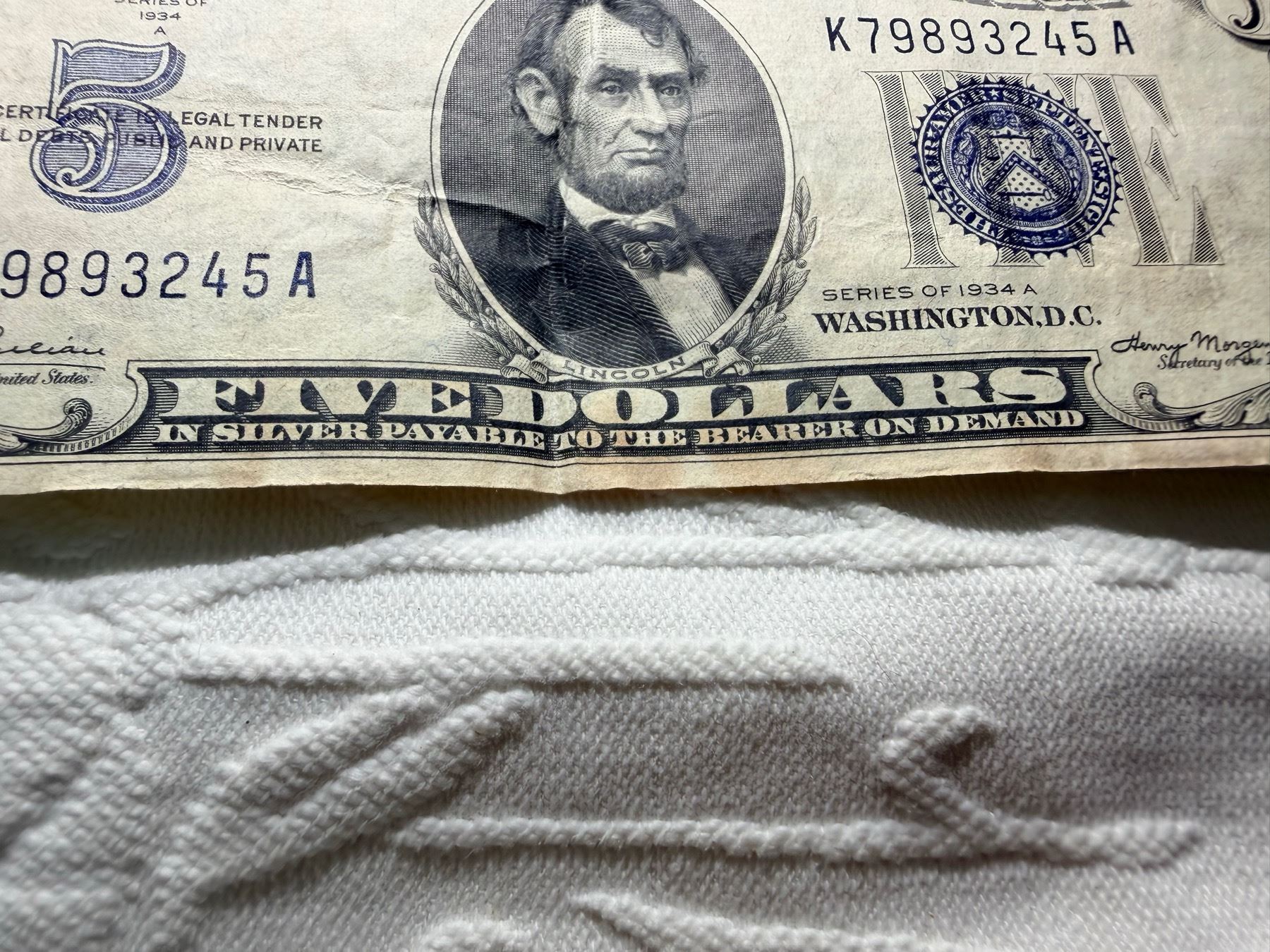 $5 SILVER CERTIFICATES - SERIES 1934A, 1934C, 1934D; BLUE TREASURY SEAL AND SERIAL NUMBERS AND BLUE 5 - LOT OF 5