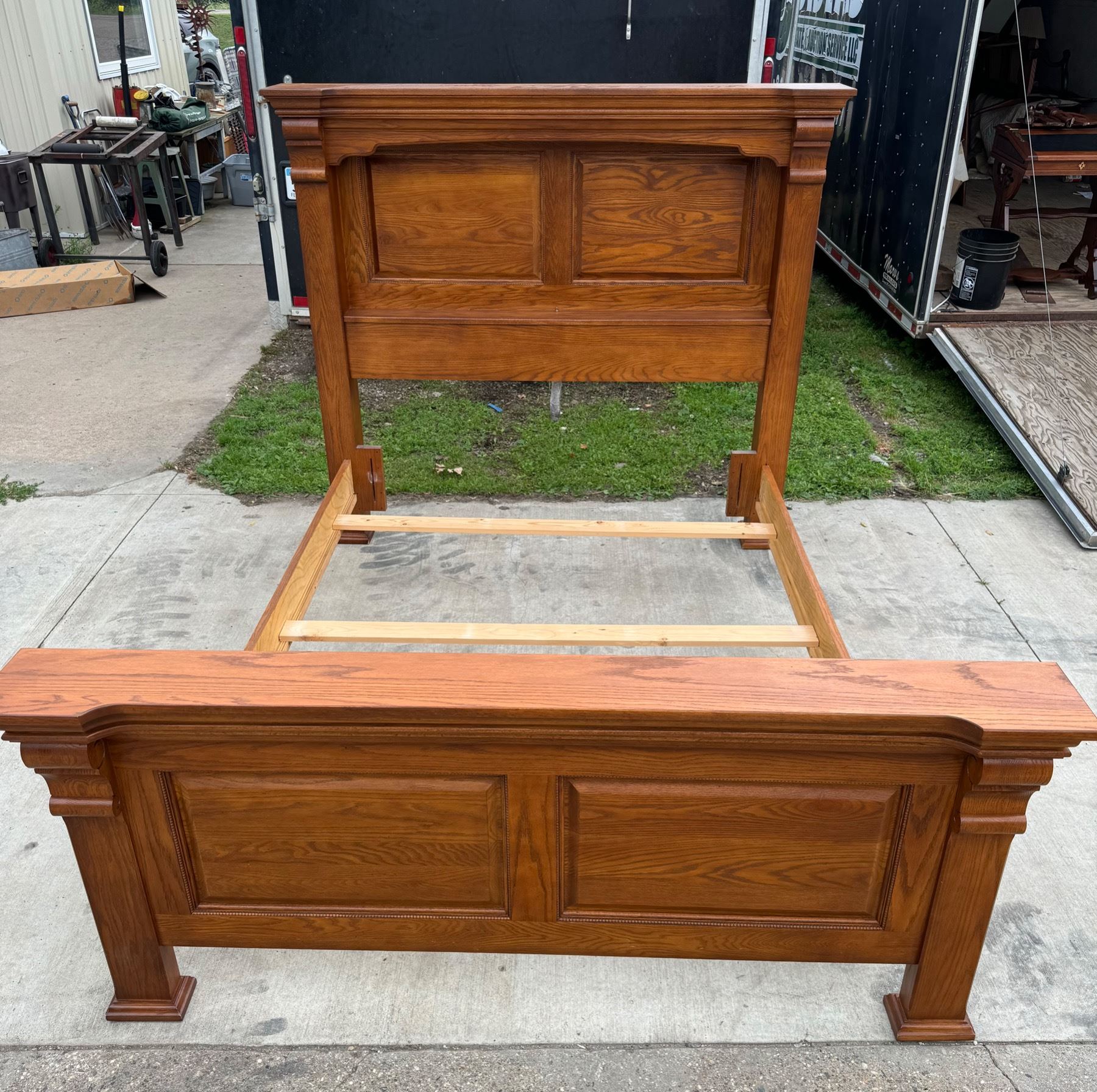 AMISH-MADE CONTEMPORARY SOLID OAK BED FRAME - LIGHTED!