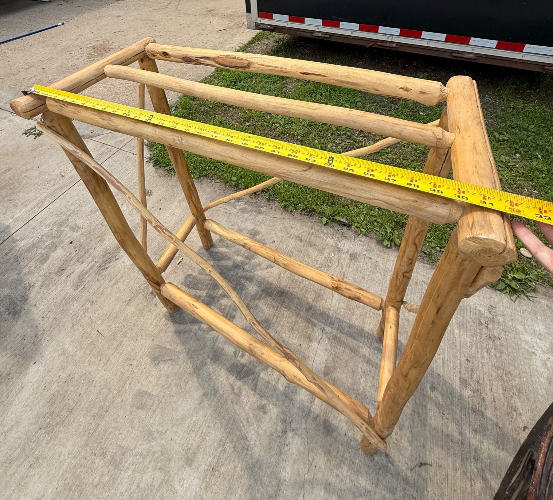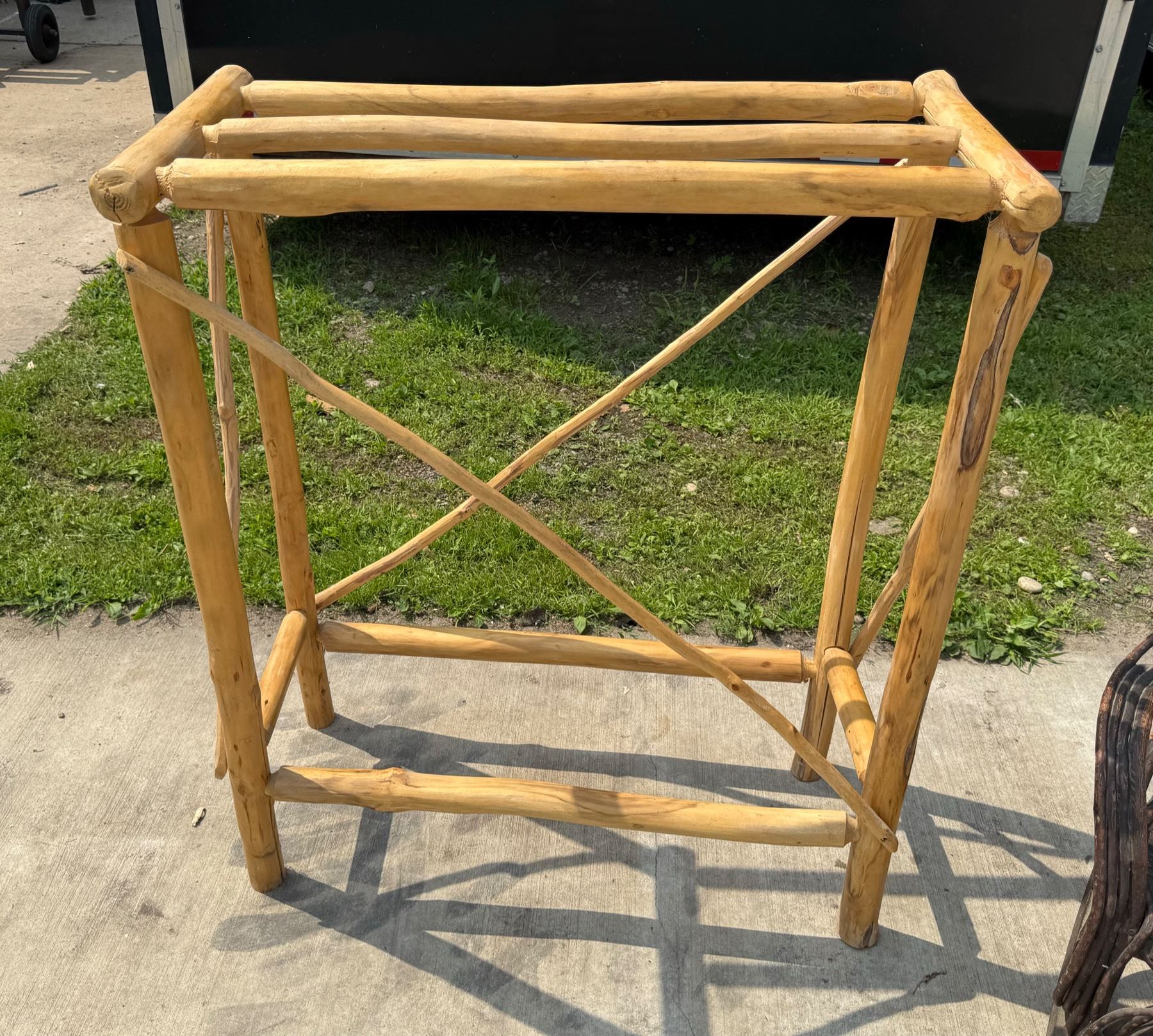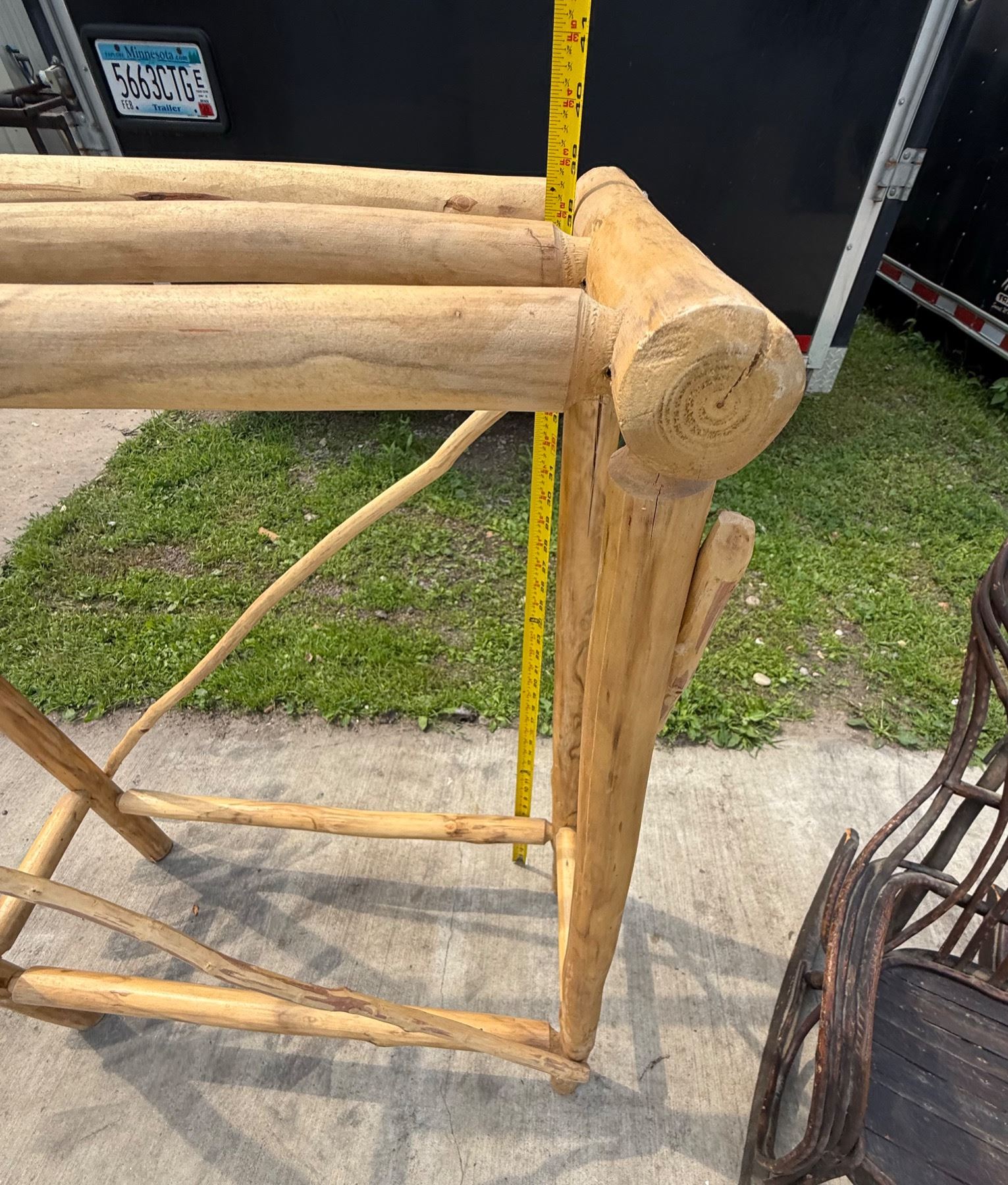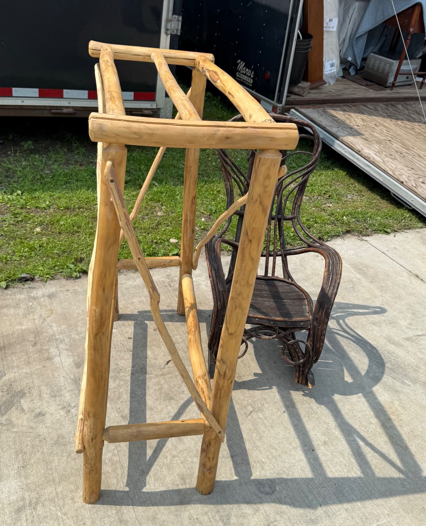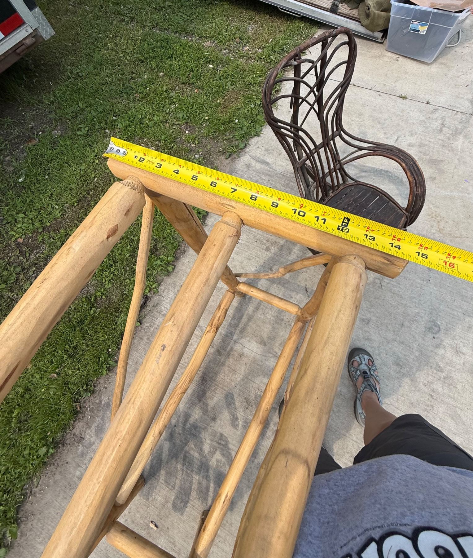 ANTIQUE BENTWOOD HICKORY AND OAK TWIG ROCKER AND LOG WOOD TABLE