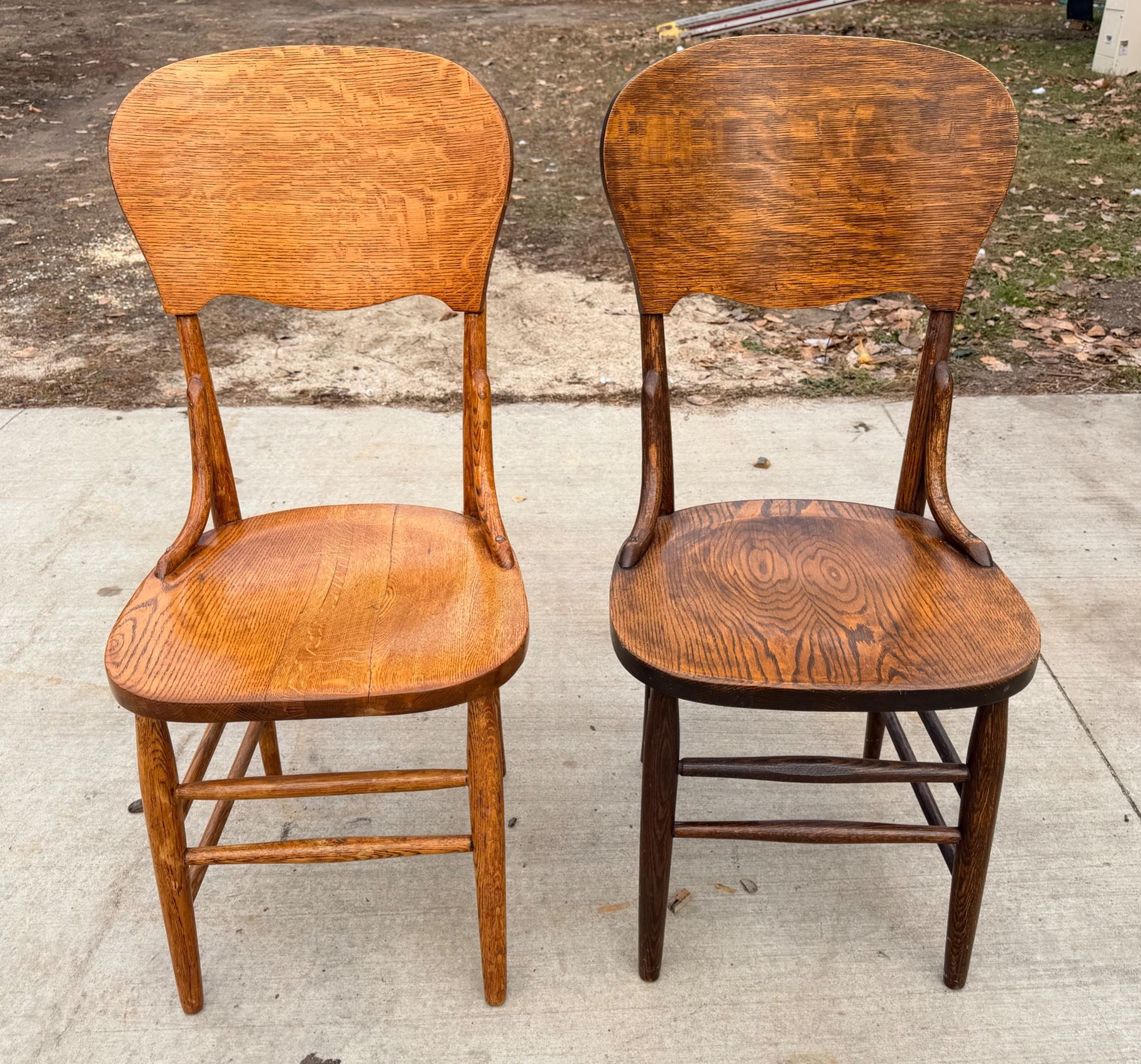 ANTIQUE TIGER OAK BENTWOOD CHAIRS, PAIR