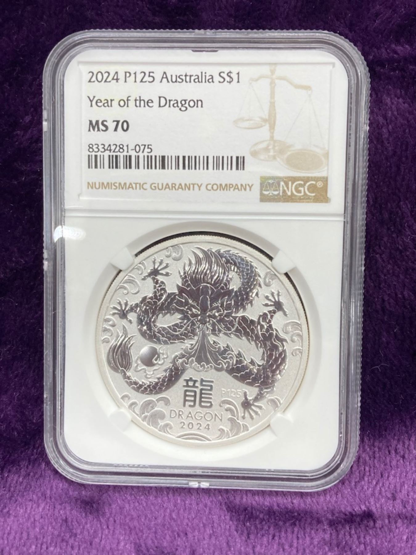 AUSTRALIAN 1 OUNCE 1 DOLLAR 2024 SILVER COIN - YEAR OF THE DRAGON MS70
