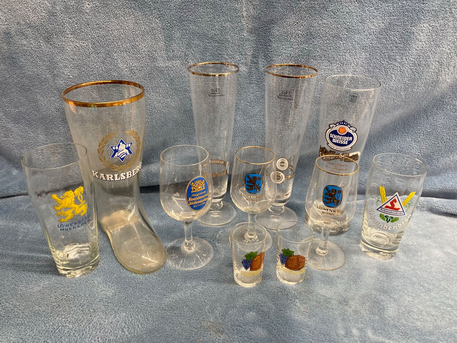 MOSTLY EUROPEAN BEER GLASSES…FUN FOR USE OR DISPLAY. ALL IN GOOD CONDITION.