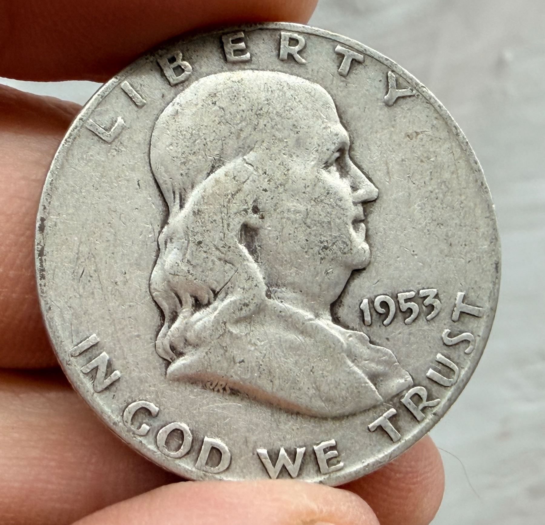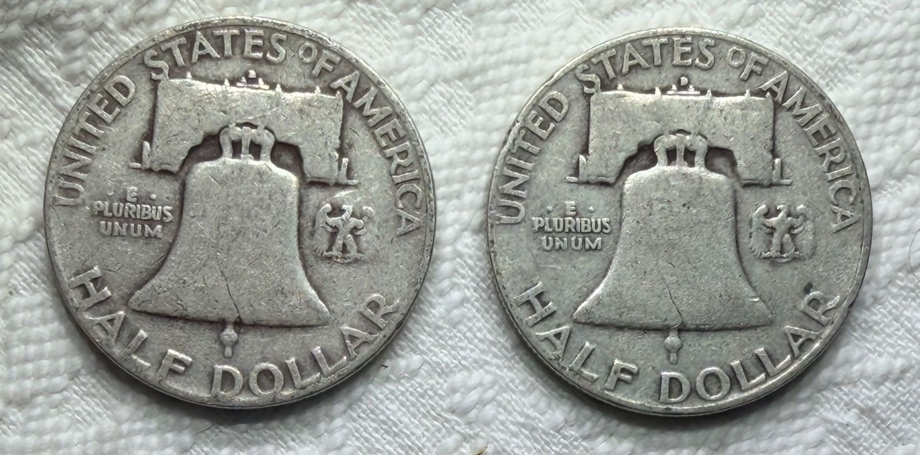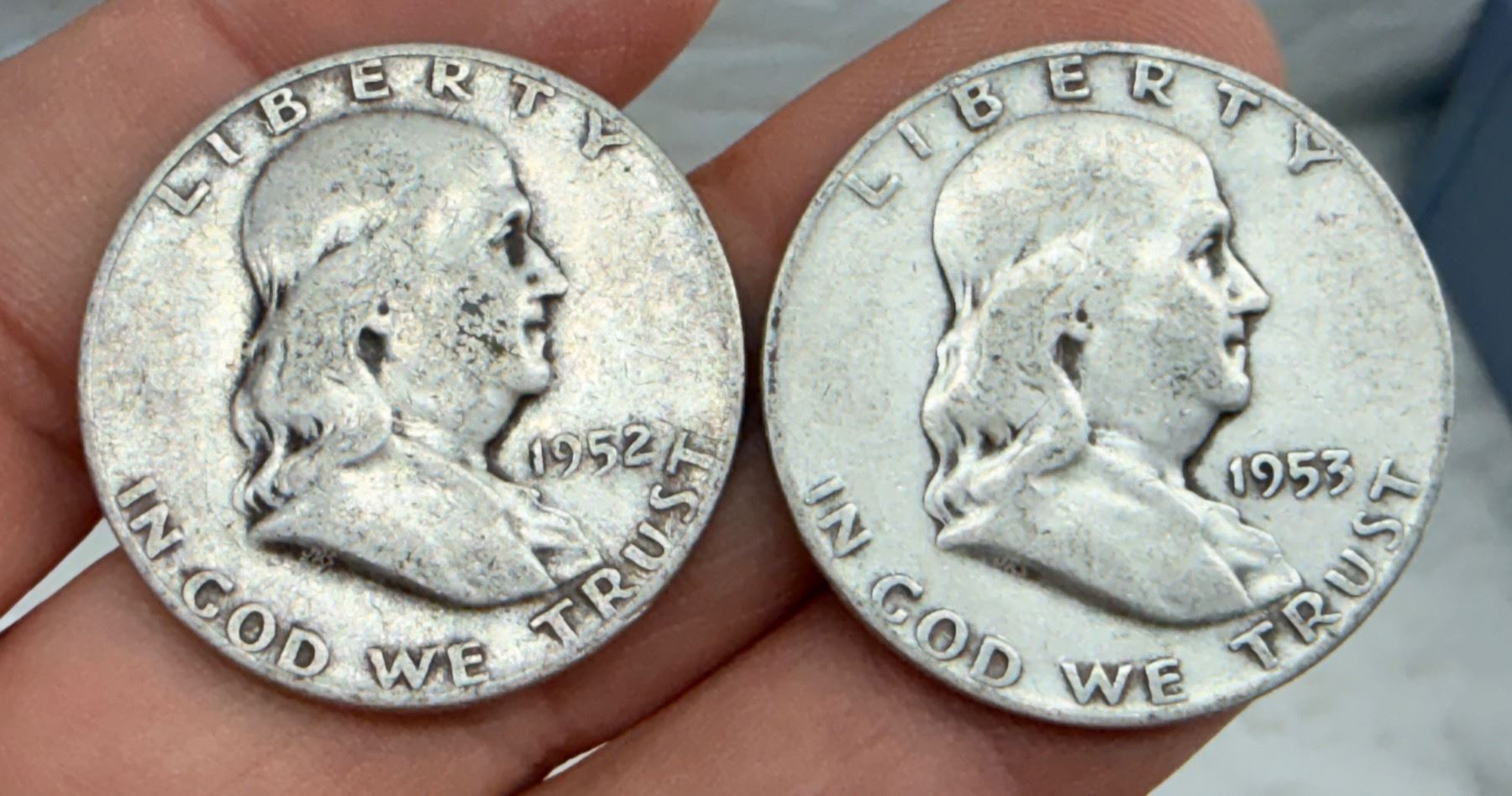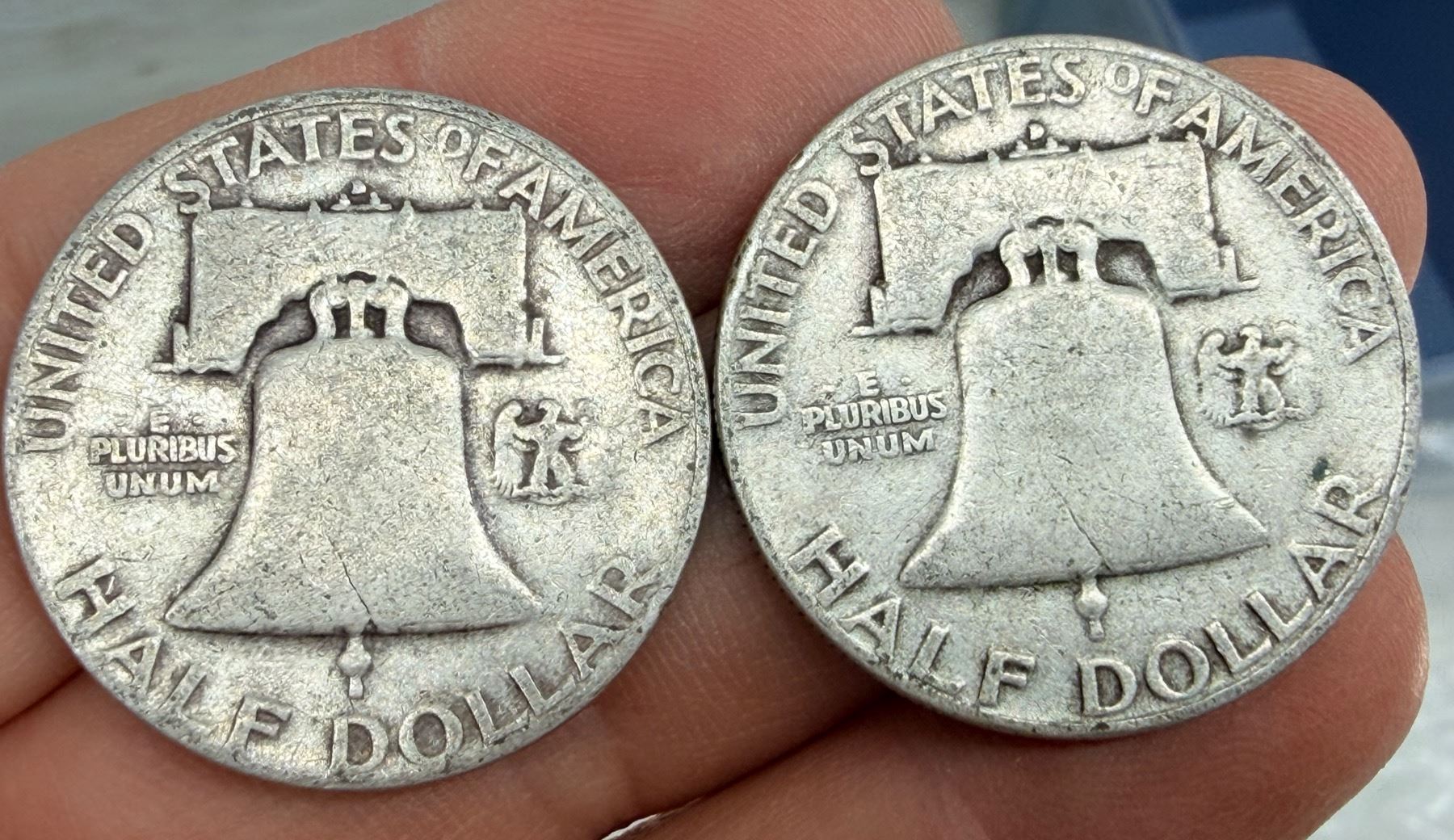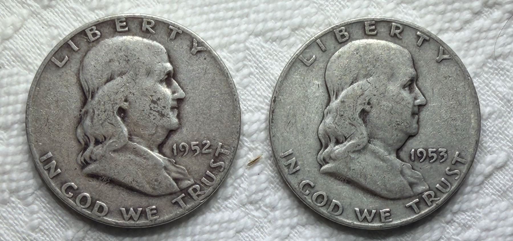 BEN FRANKLIN SILVER HALF DOLLAR - 1952D, 1953D; DENVER MINT+C1588