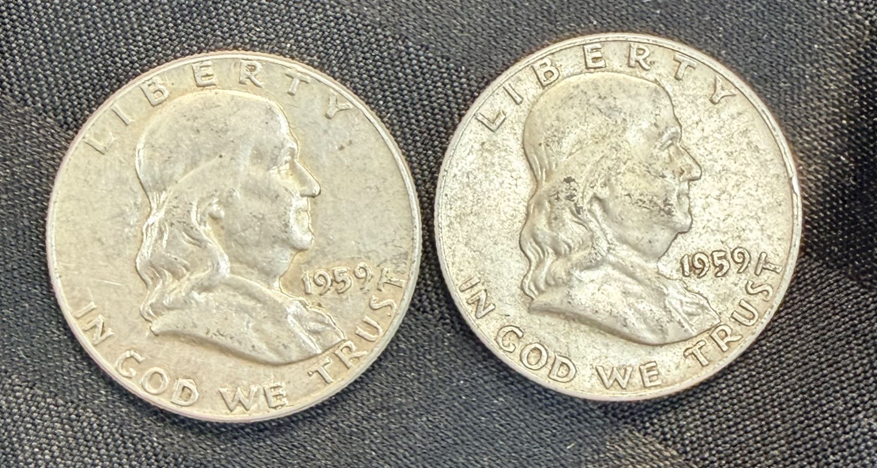 BEN FRANKLIN SILVER HALF DOLLARS - 1959, 1959D; PHILADELPPHIA AND DENVER MINTS
