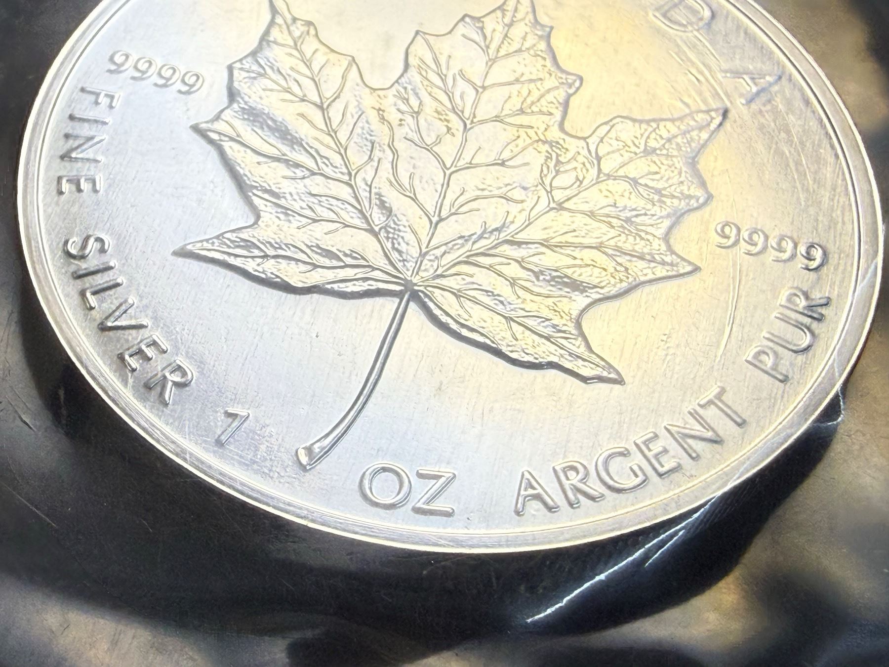 COIN IS 1 TROY OUNCE OF .9999 FINE SILVER; "1 OUNCE ARGENT" REFERS TO ONE TROY OUNCE OF PURE SILVER (AG), OFTEN SEEN ON HIGH-PURITY BULLION COINS LIKE THE CANADIAN SILVER MAPLE LEAF, STAMPED "FINE SILVER 1 OZ ARGENT PUR," MEANING 99.99 PERCENT PURE SILVER, A COMMON STANDARD FOR GOVERNMENT-MINTED SILVER BULLION, WITH "ARGENT" BEING FRENCH FOR SILVER