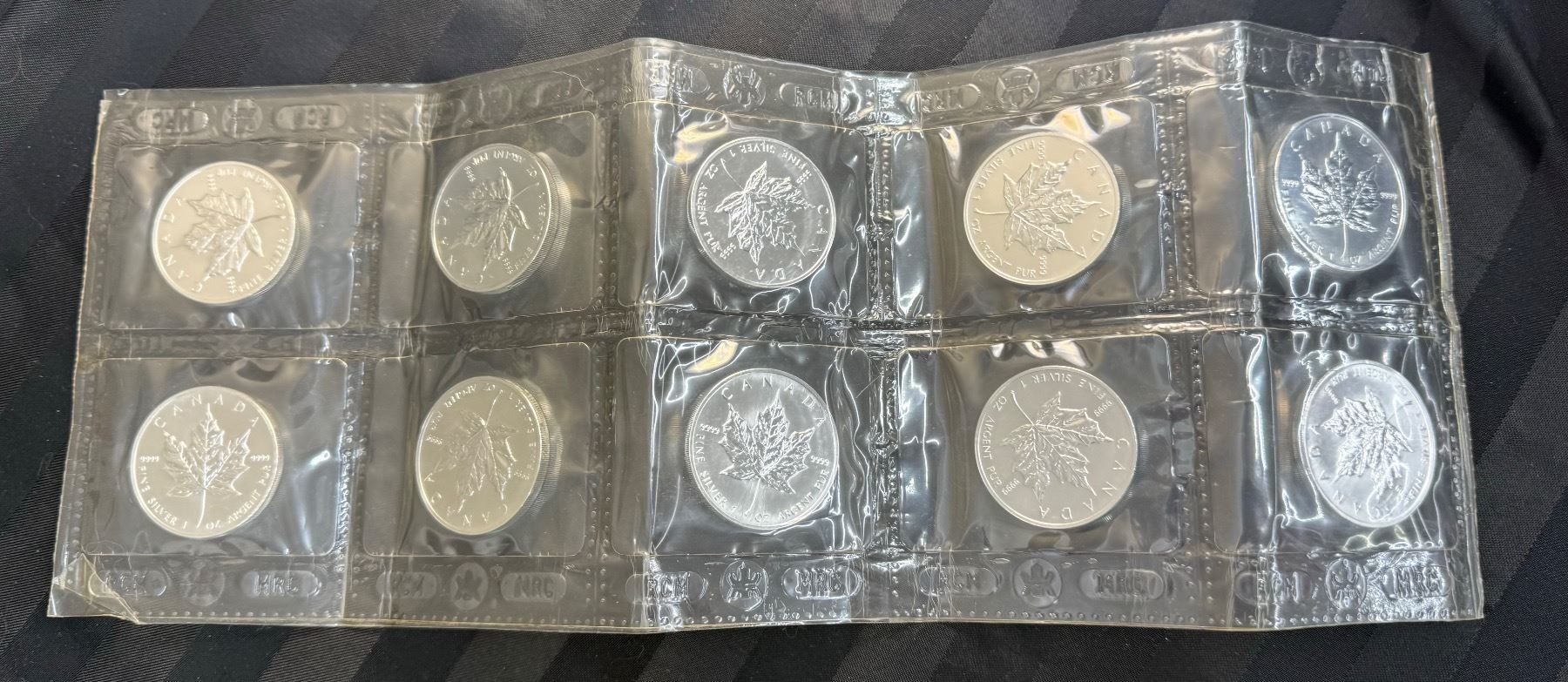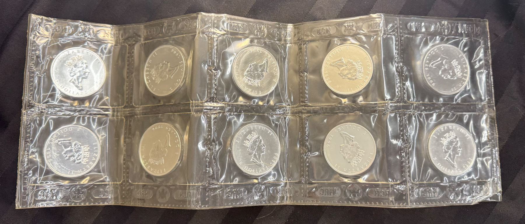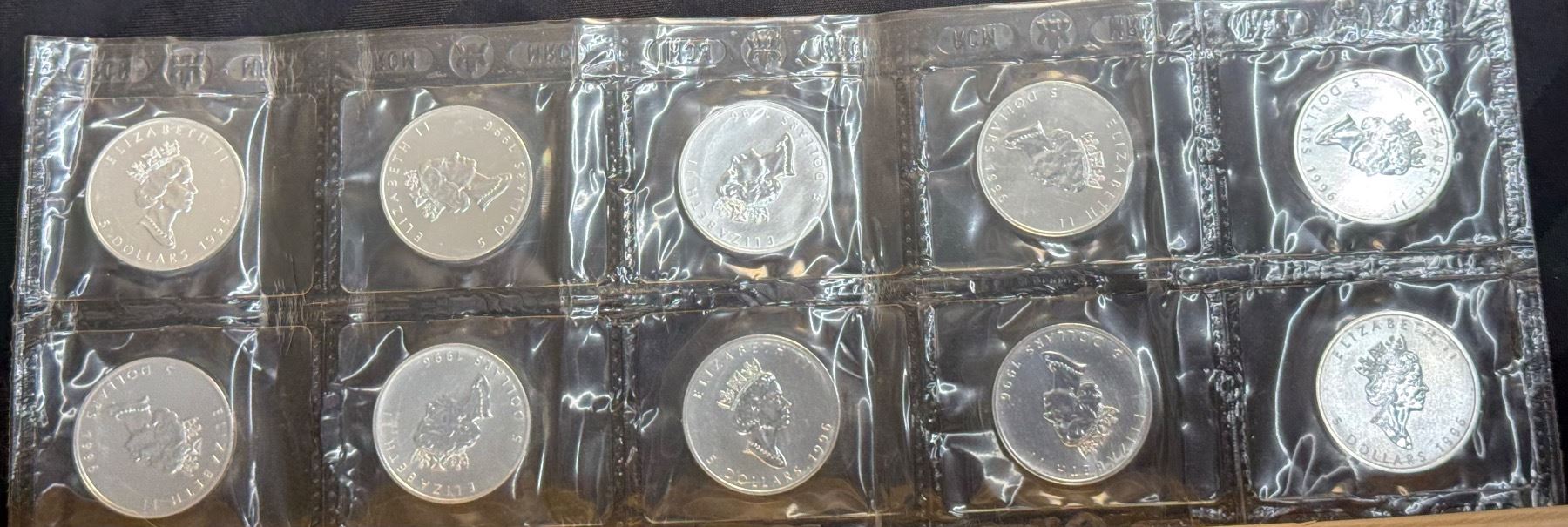 CANADIAN MAPLE LEAF $5 SILVER COINS - PACK OF 10 1996 COINS IN ORIGINAL ROYAL CANADIAN MINT PACKAGING! RARE
