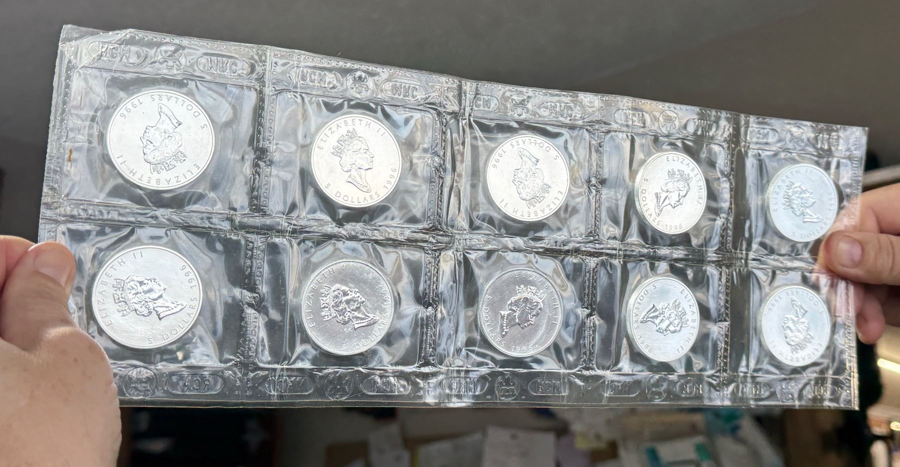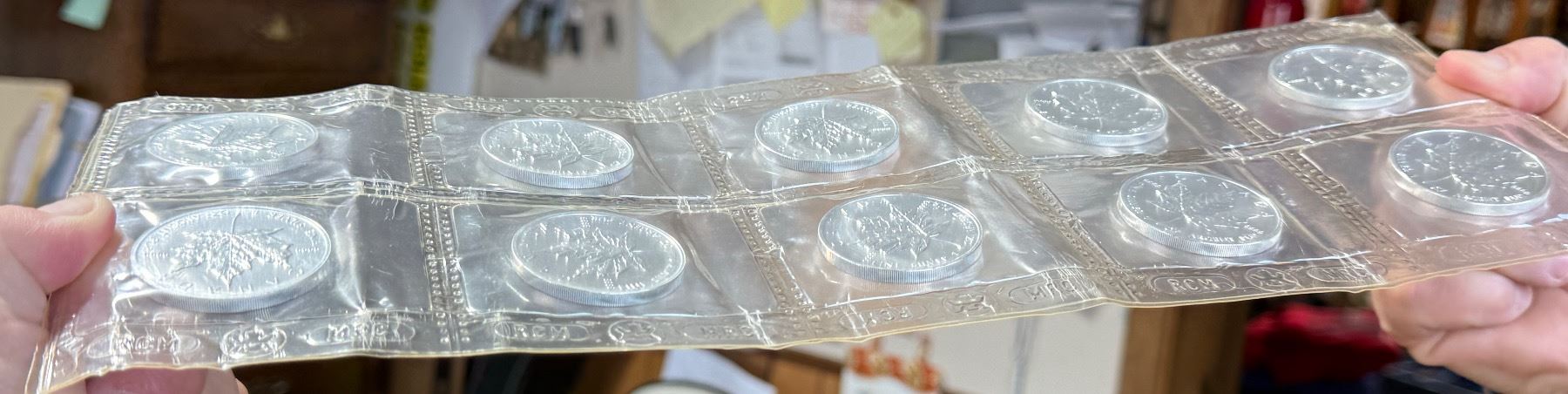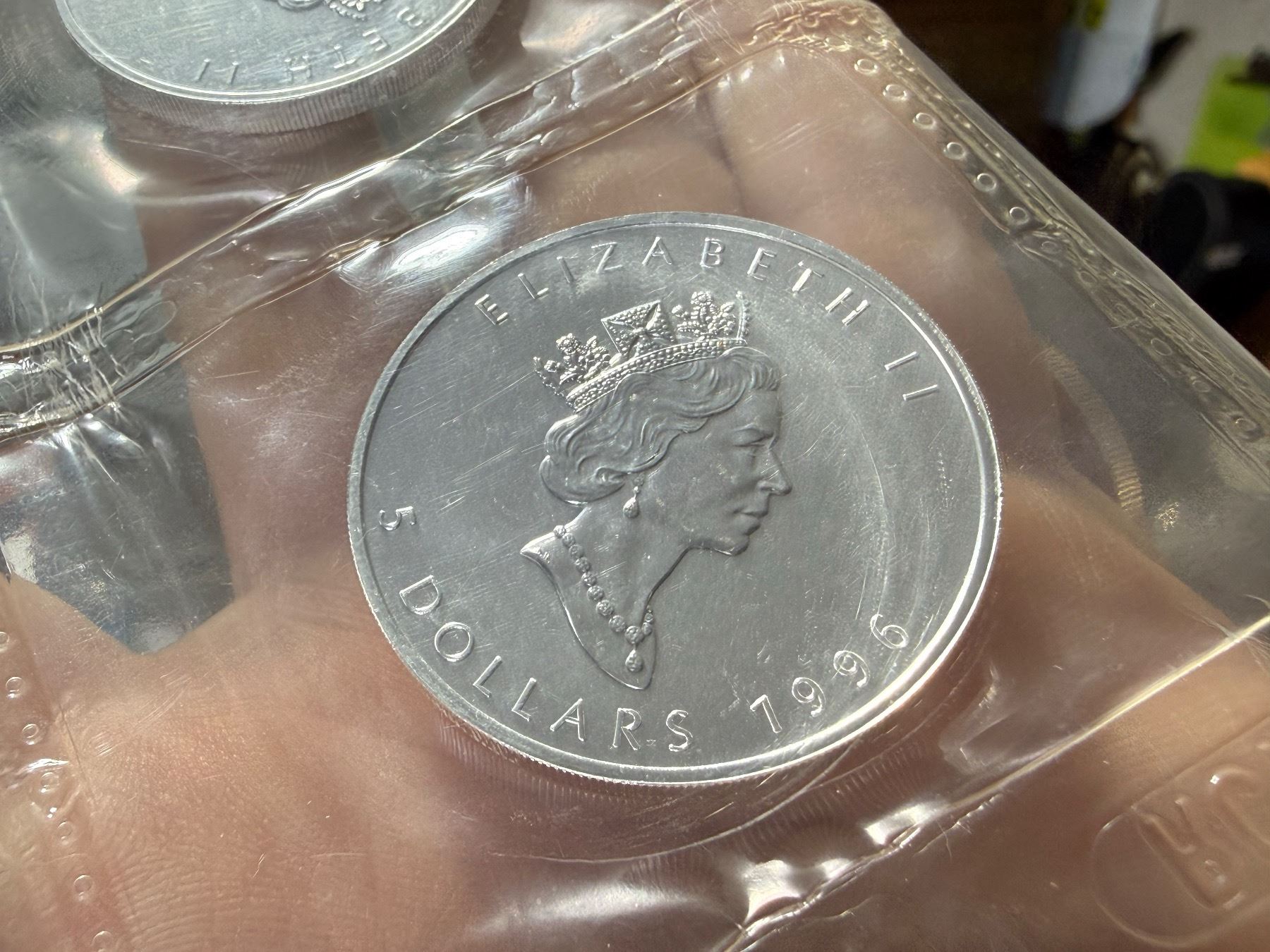 CANADIAN MAPLE LEAF $5 SILVER COINS - PACK OF 10 1996 COINS IN ORIGINAL ROYAL CANADIAN MINT PACKAGING! RARE