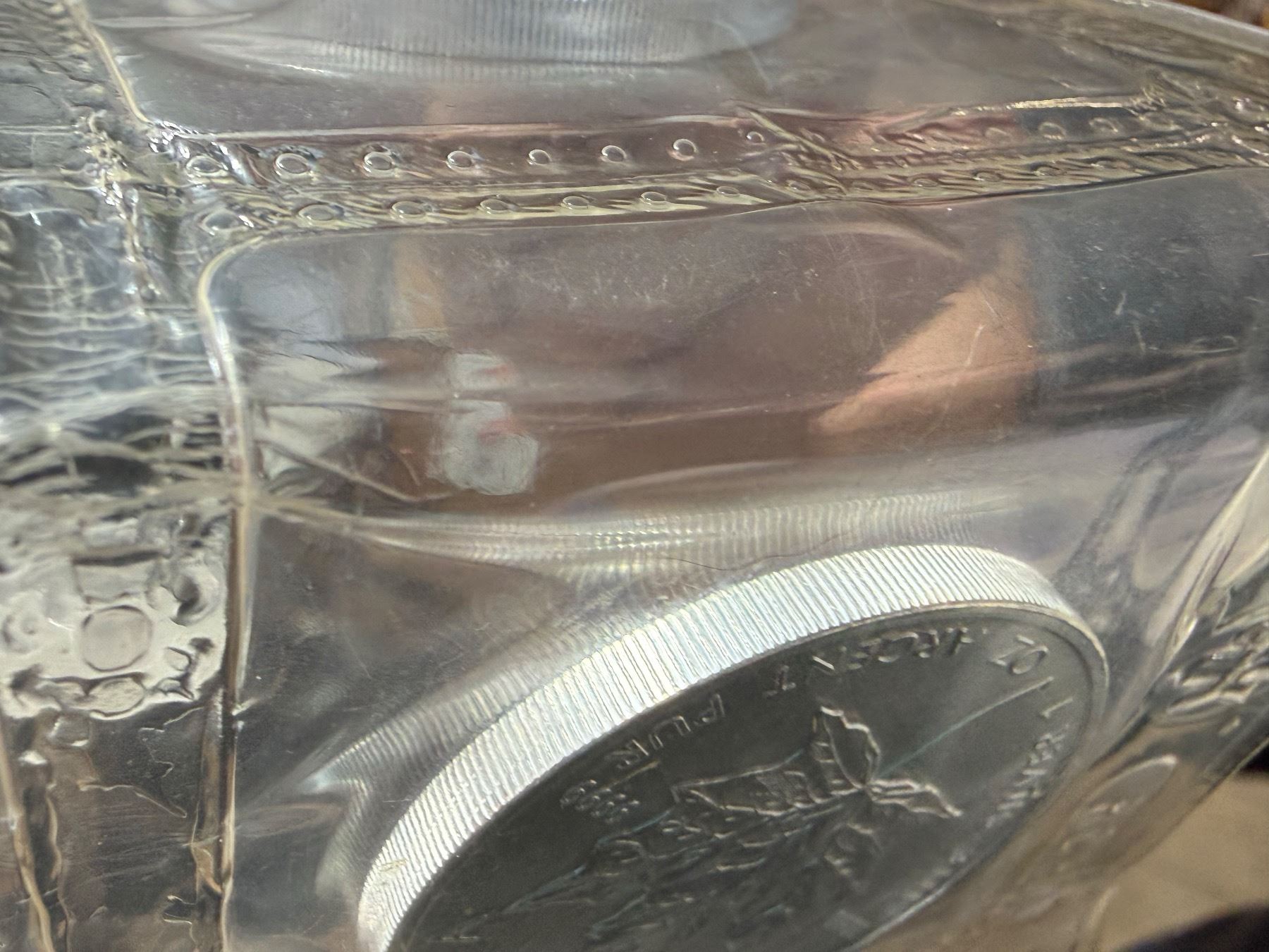 EACH COIN IS 1 TROY OUNCE OF .9999 FINE SILVER; "1 OUNCE ARGENT" REFERS TO ONE TROY OUNCE OF PURE SILVER (AG), OFTEN SEEN ON HIGH-PURITY BULLION COINS LIKE THE CANADIAN SILVER MAPLE LEAF, STAMPED "FINE SILVER 1 OZ ARGENT PUR," MEANING 99.99 PERCENT PURE SILVER, A COMMON STANDARD FOR GOVERNMENT-MINTED SILVER BULLION, WITH "ARGENT" BEING FRENCH FOR SILVER