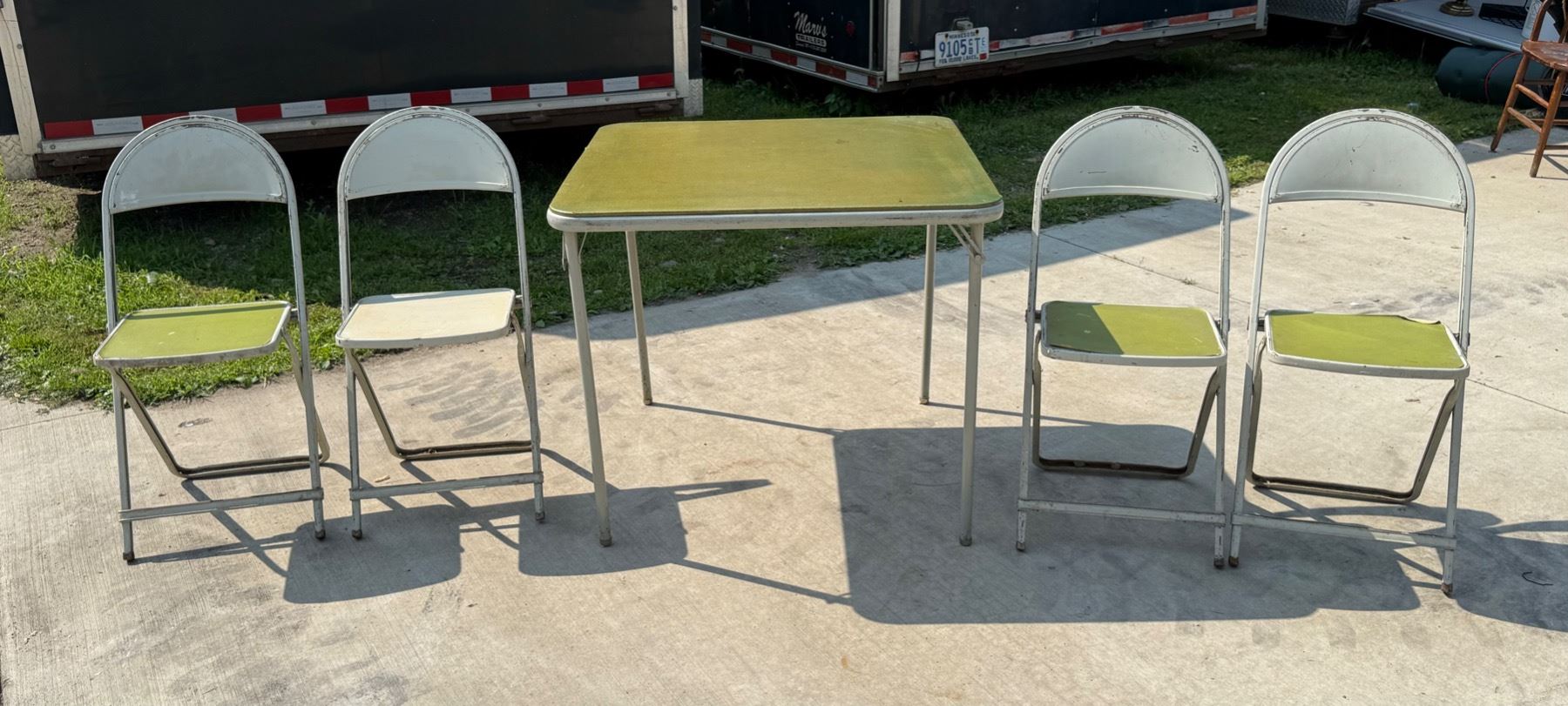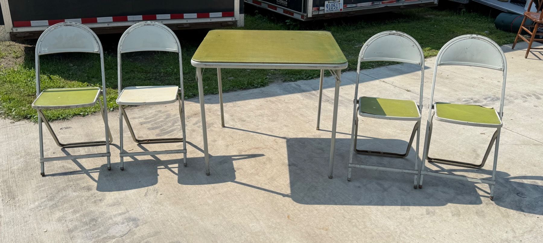 CARD TABLE AND FOUR FOLDING CHAIRS