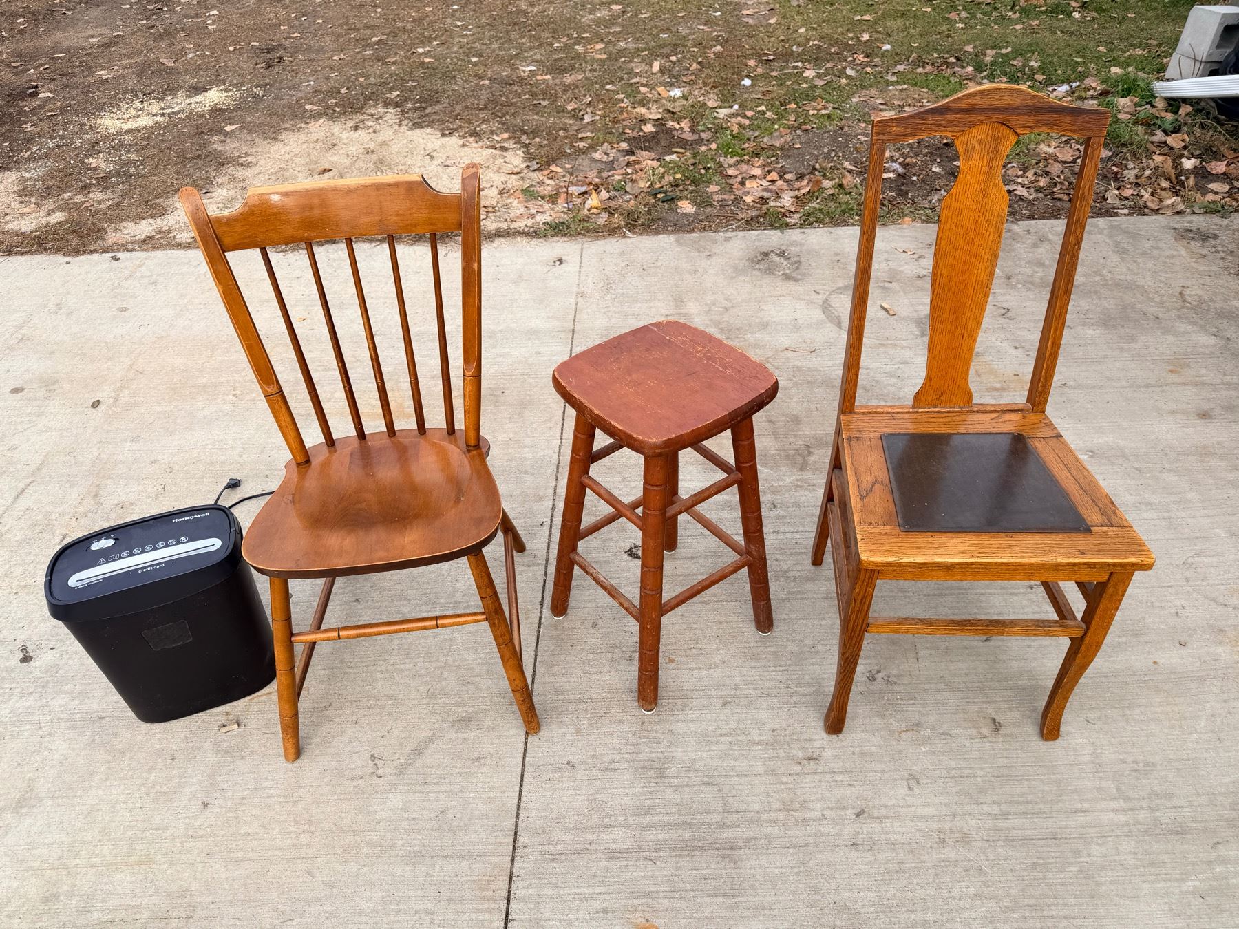 CHAIRS, STOOL, AND PAPER SHREDDER
