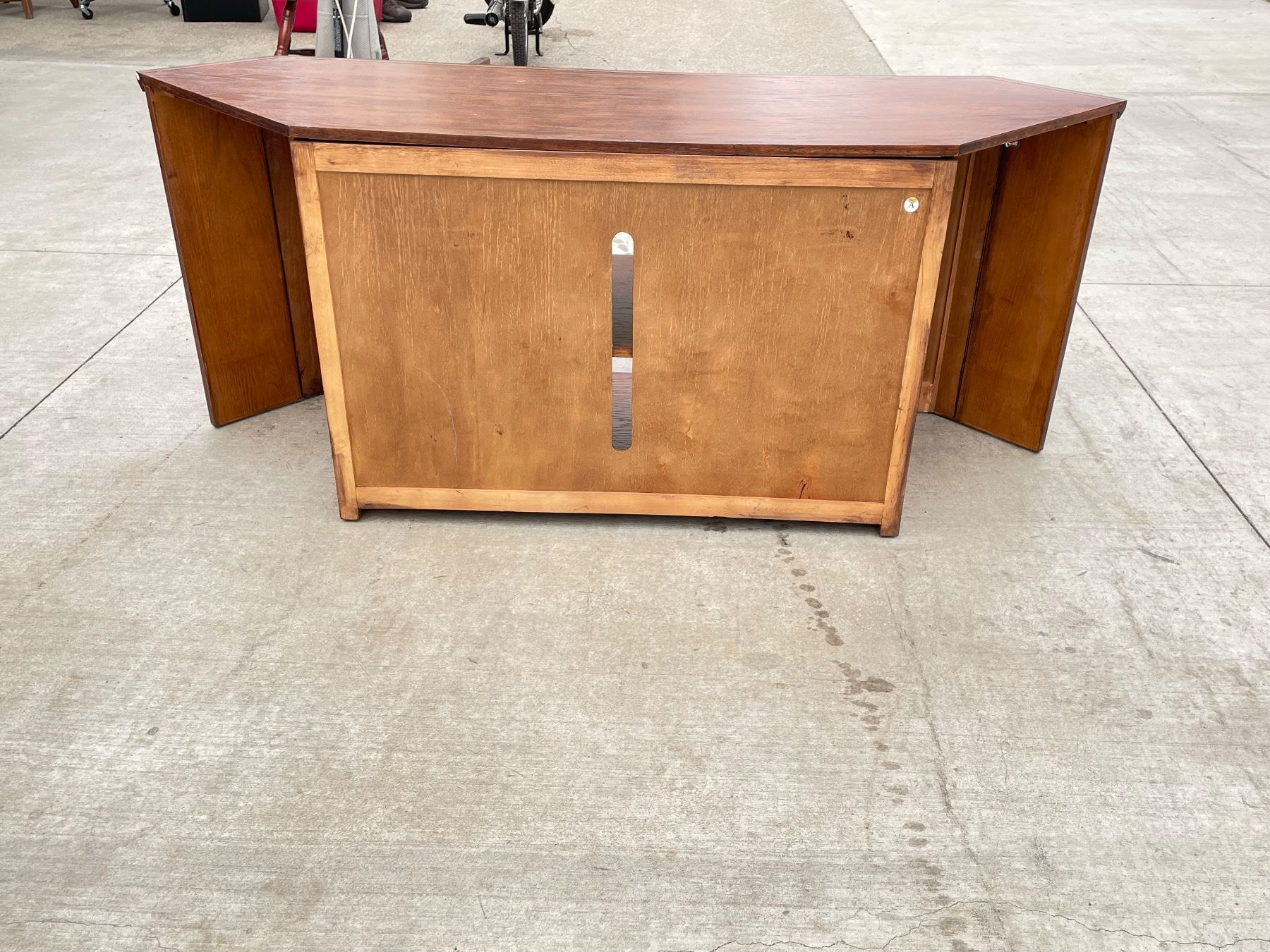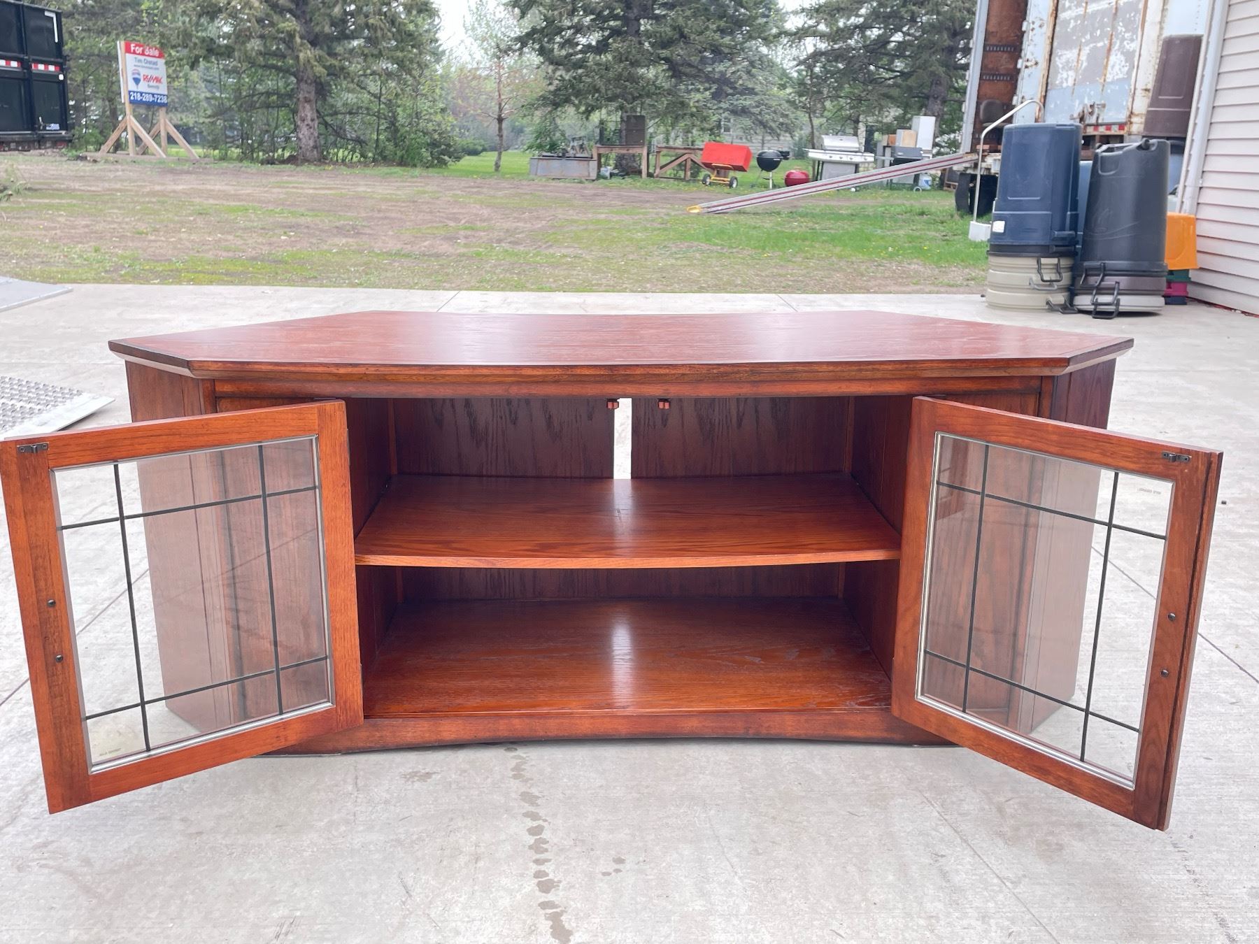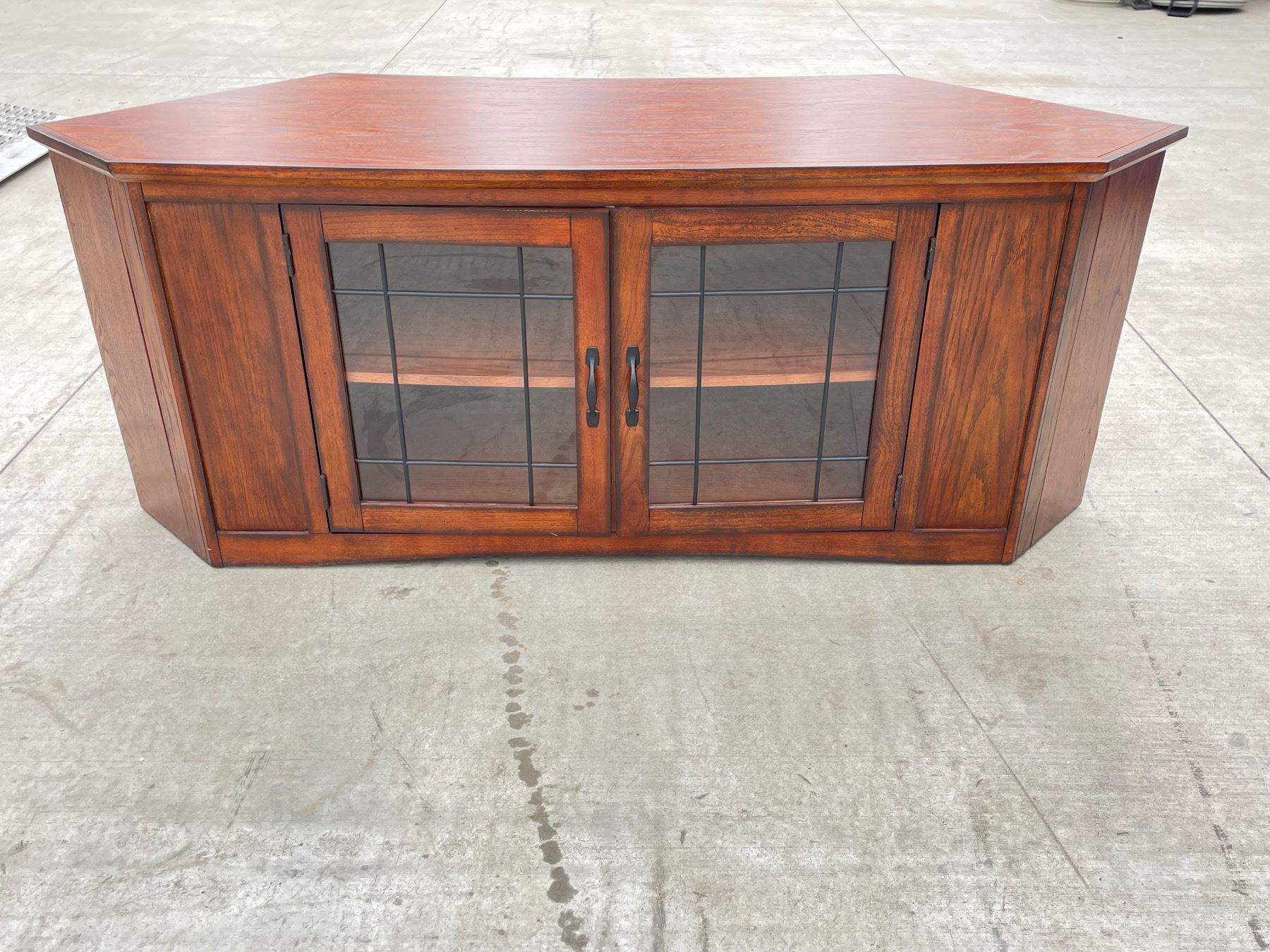 CONTEMPORARY WOOD AND GLASS TV/ELECTRONICS CORNER CABINET; IN VERY GOOD CONDITION