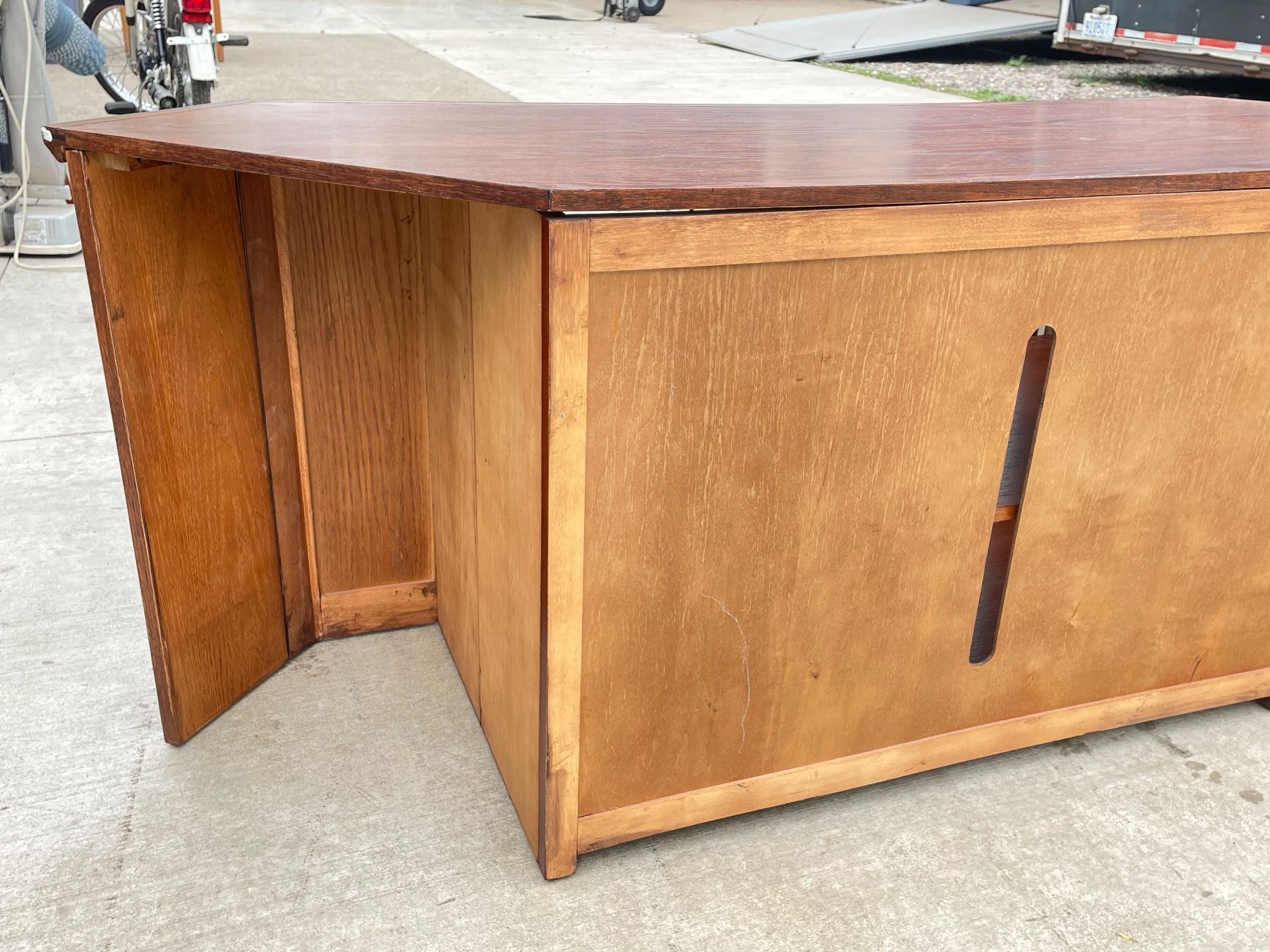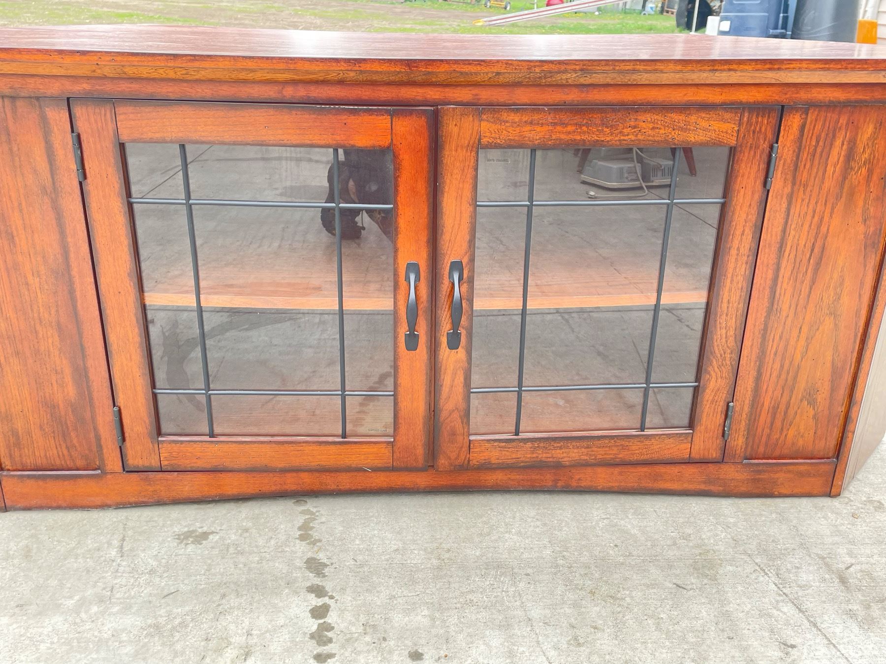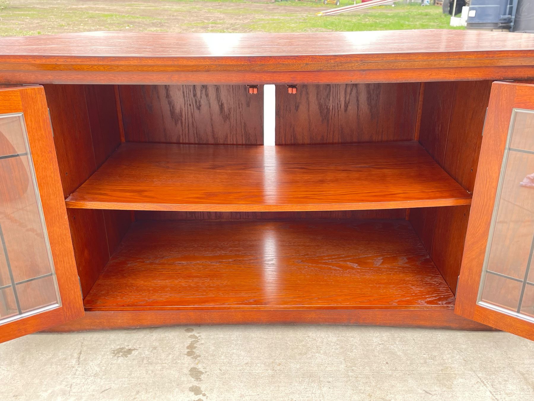CONTEMPORARY WOOD AND GLASS TV/ELECTRONICS CORNER CABINET; IN VERY GOOD CONDITION