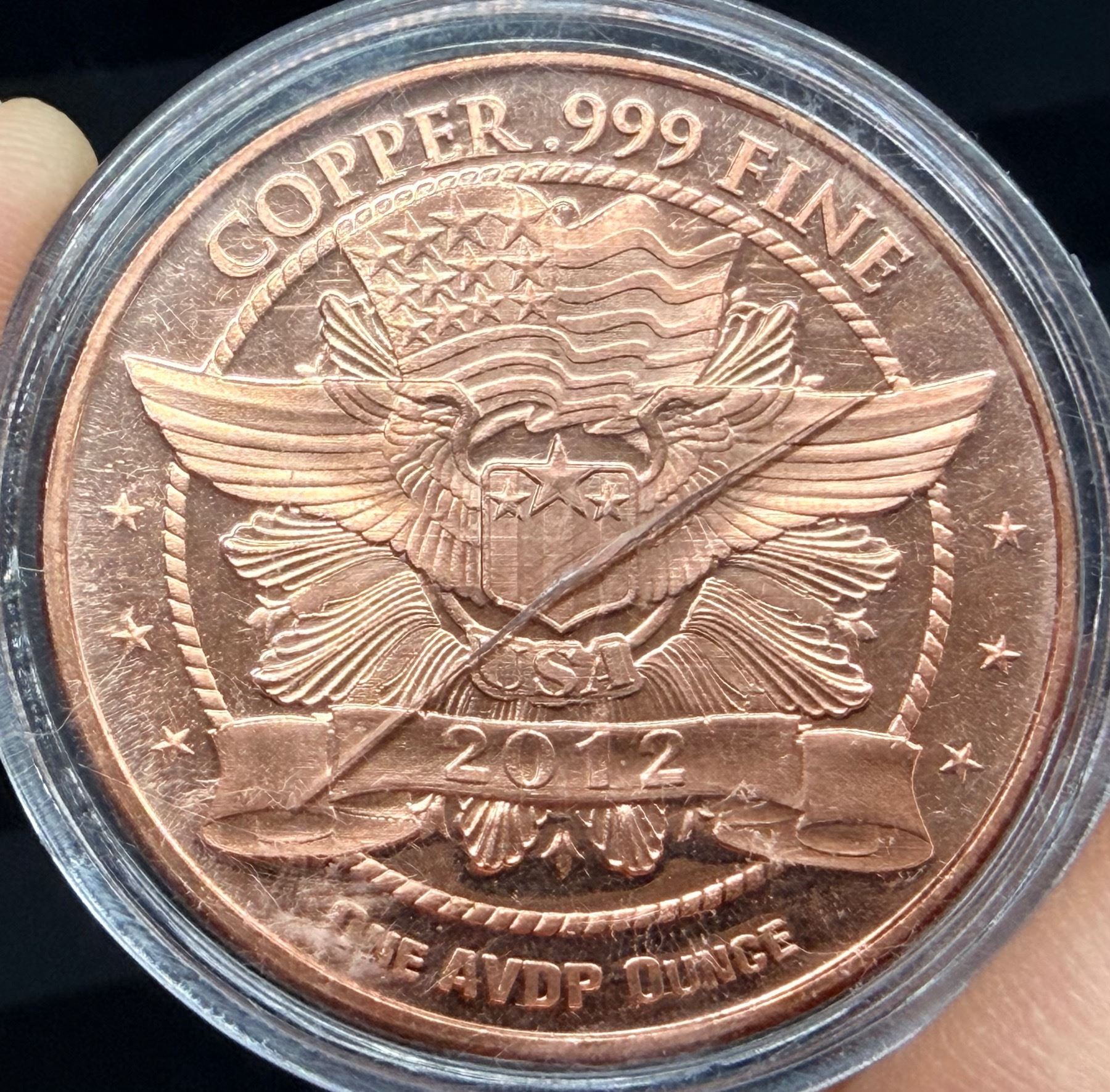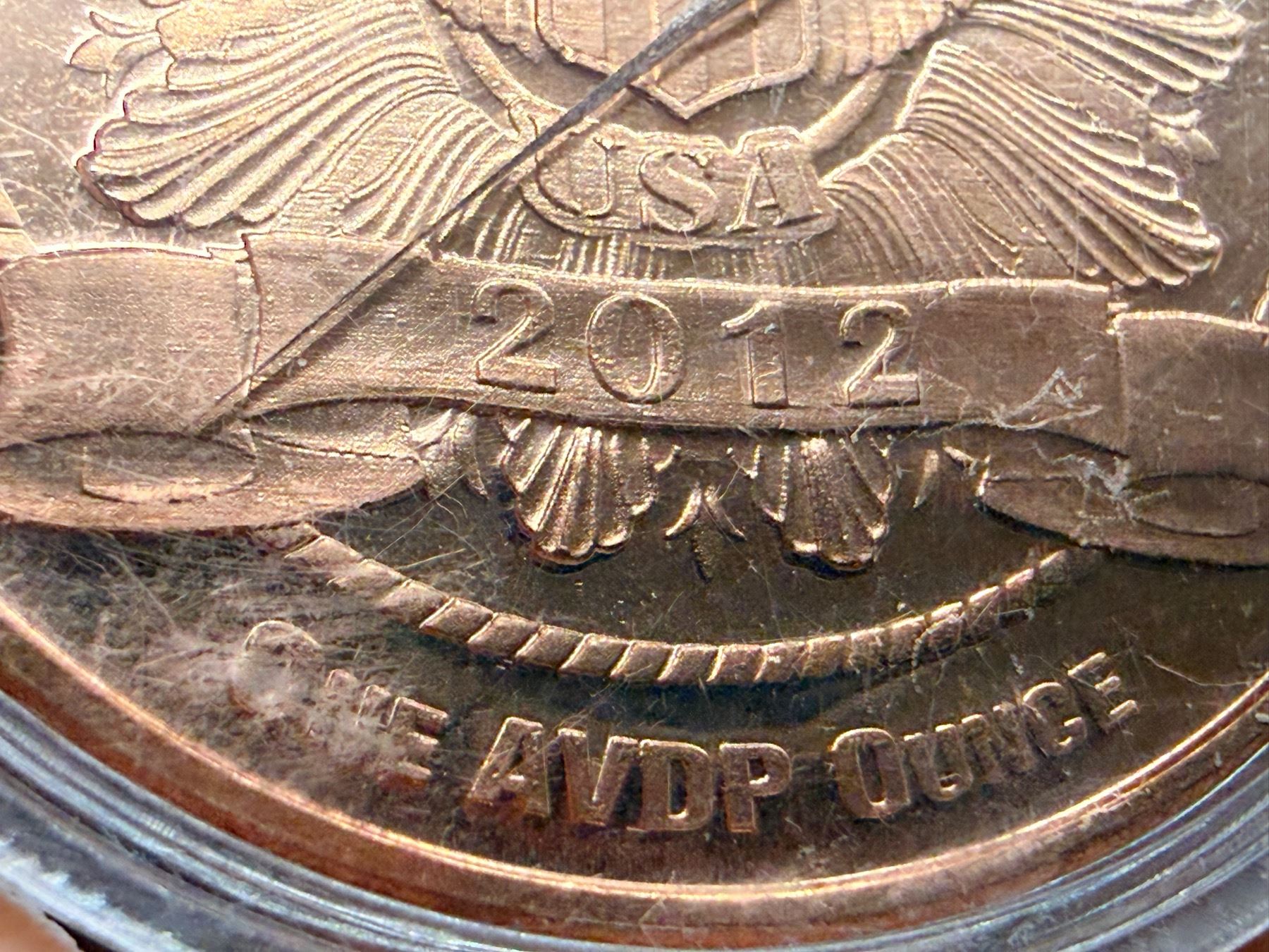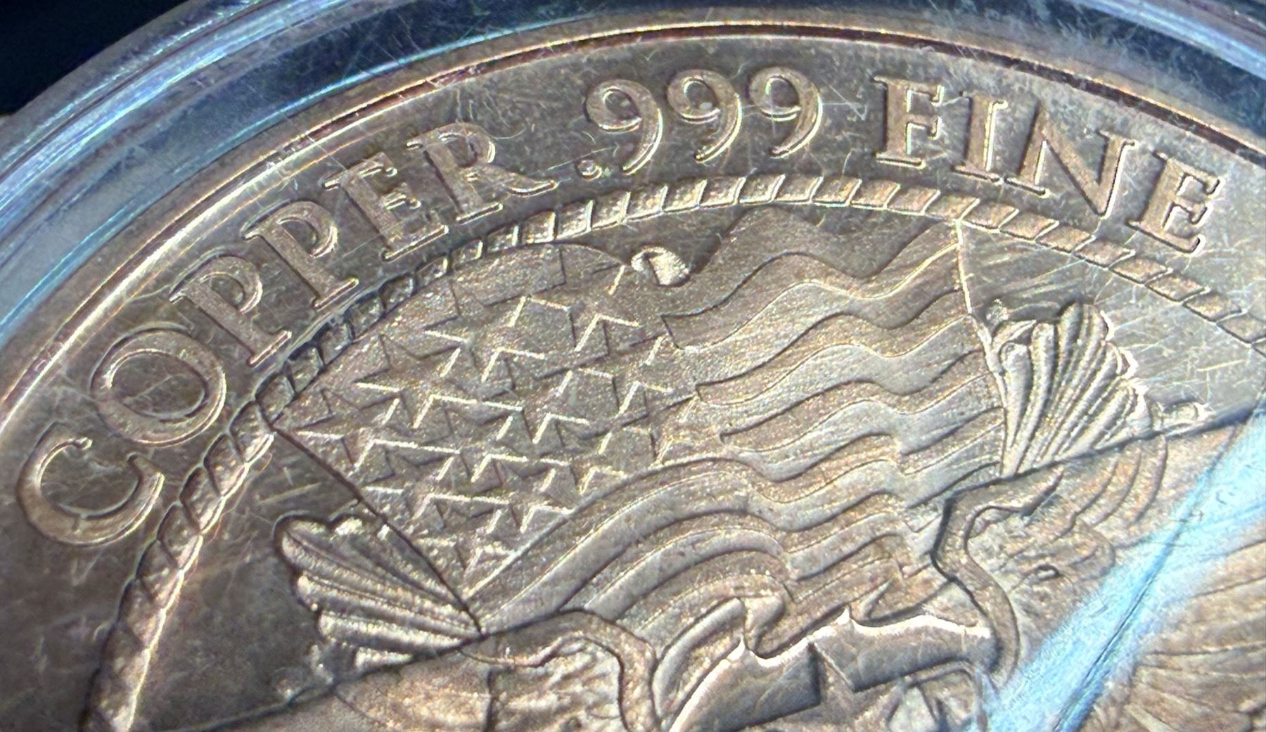 COPPER BULLION ROUND - 1 AVDP OUNCE .999 FINE COPPER USA 2012 PANDA BEARS - MOM AND CUP COPPER BULLION; THE AVOIRDUPOIS OUNCE (AVDP OUNCE) IS A UNIT OF MEASUREMENT THAT WEIGHS APPROXIMATELY 28.35 GRAMS