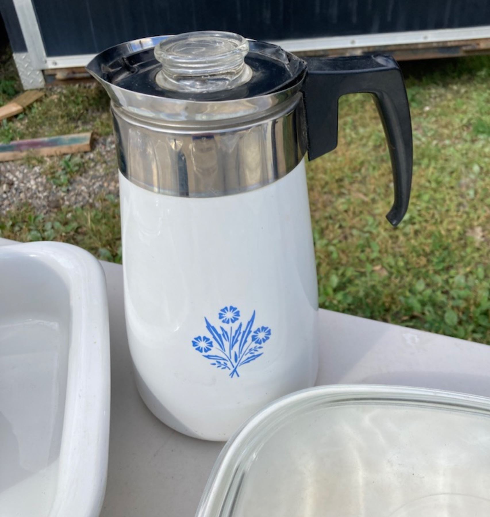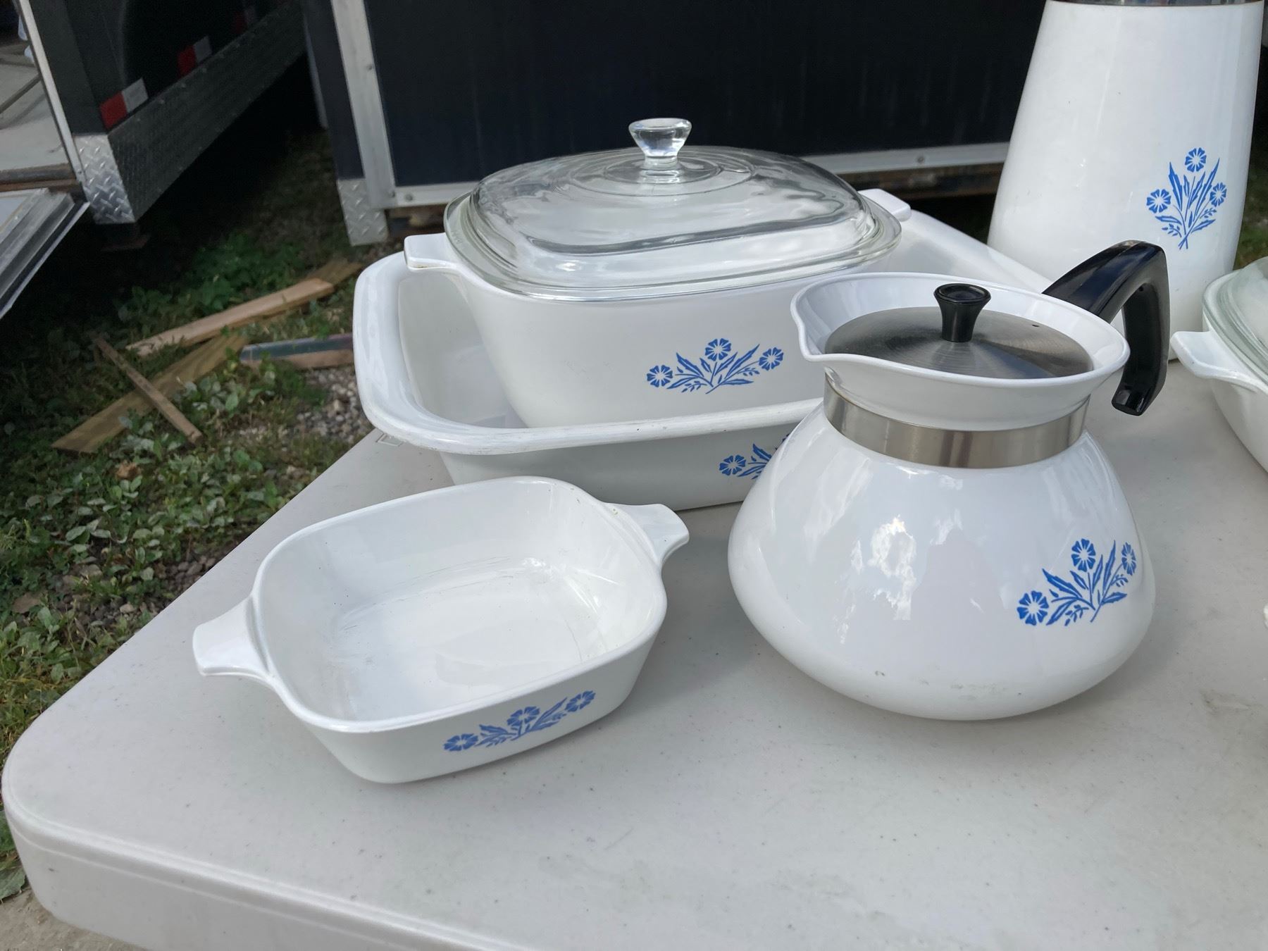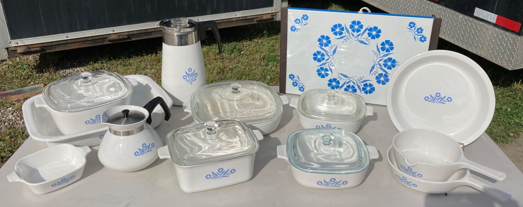 INCLUDING CASSEROLE DISHES WITH LIDS, COFFEE AND TEA POT, FOOD WARMING TRAY, AND PANS