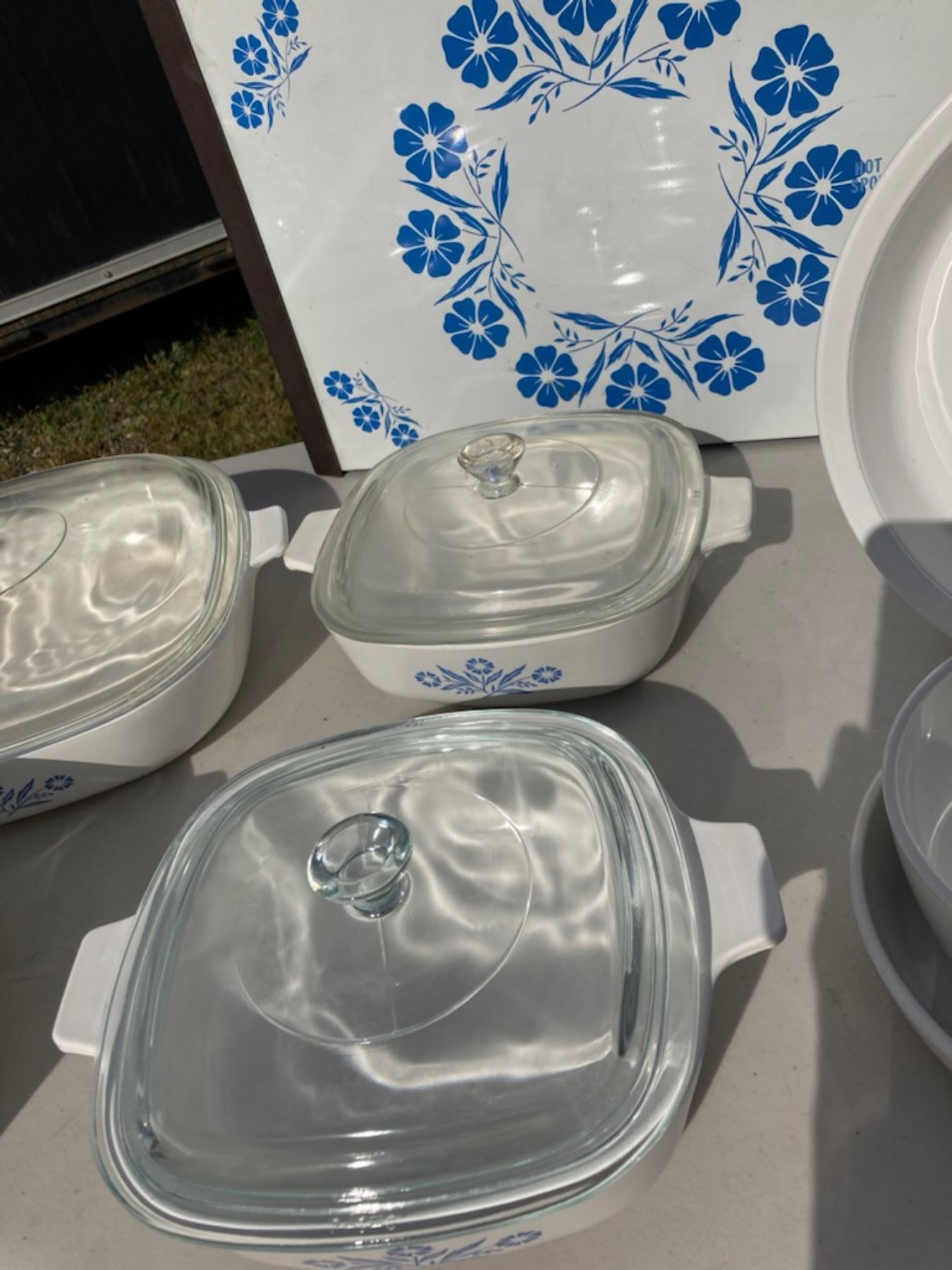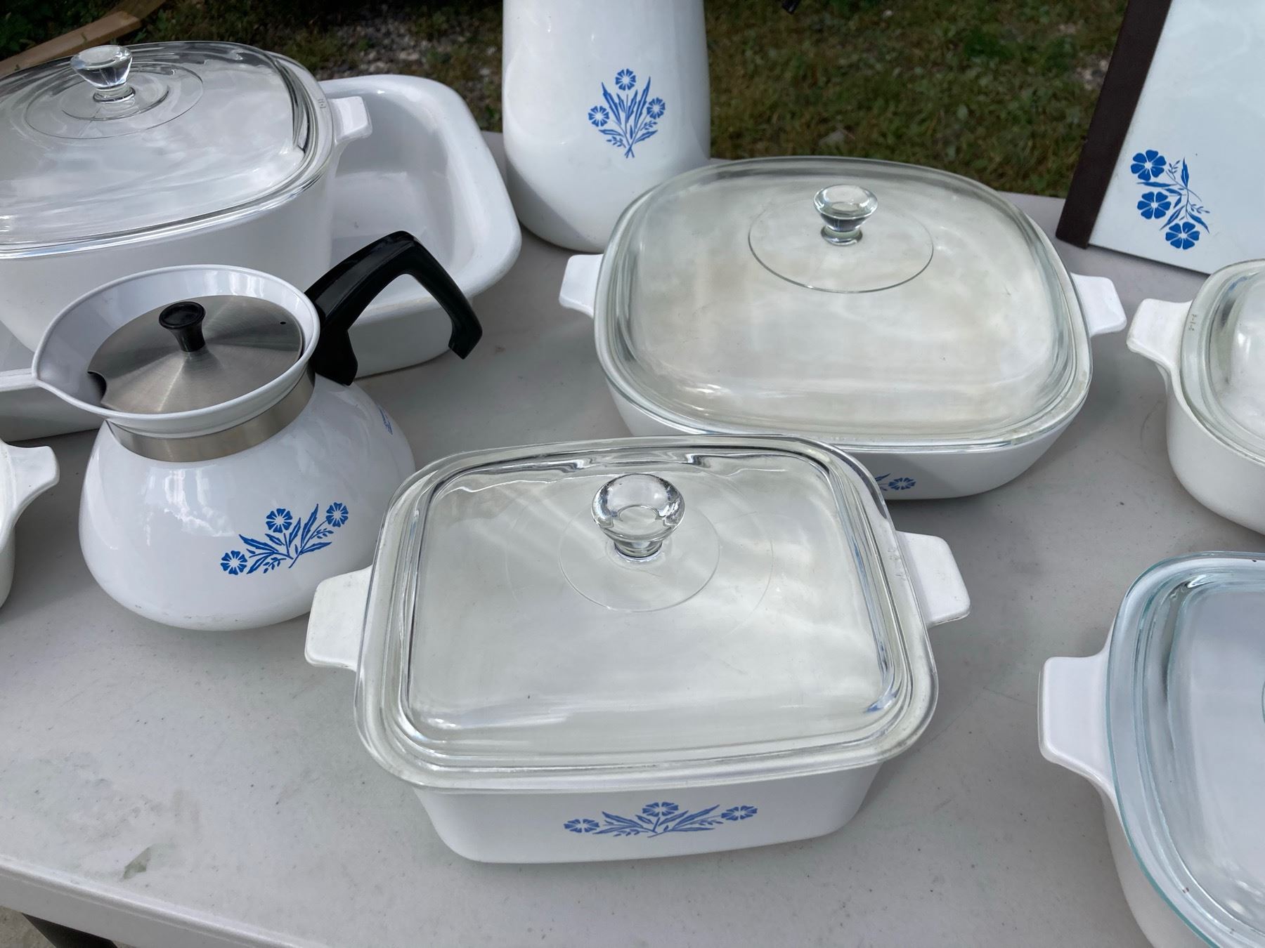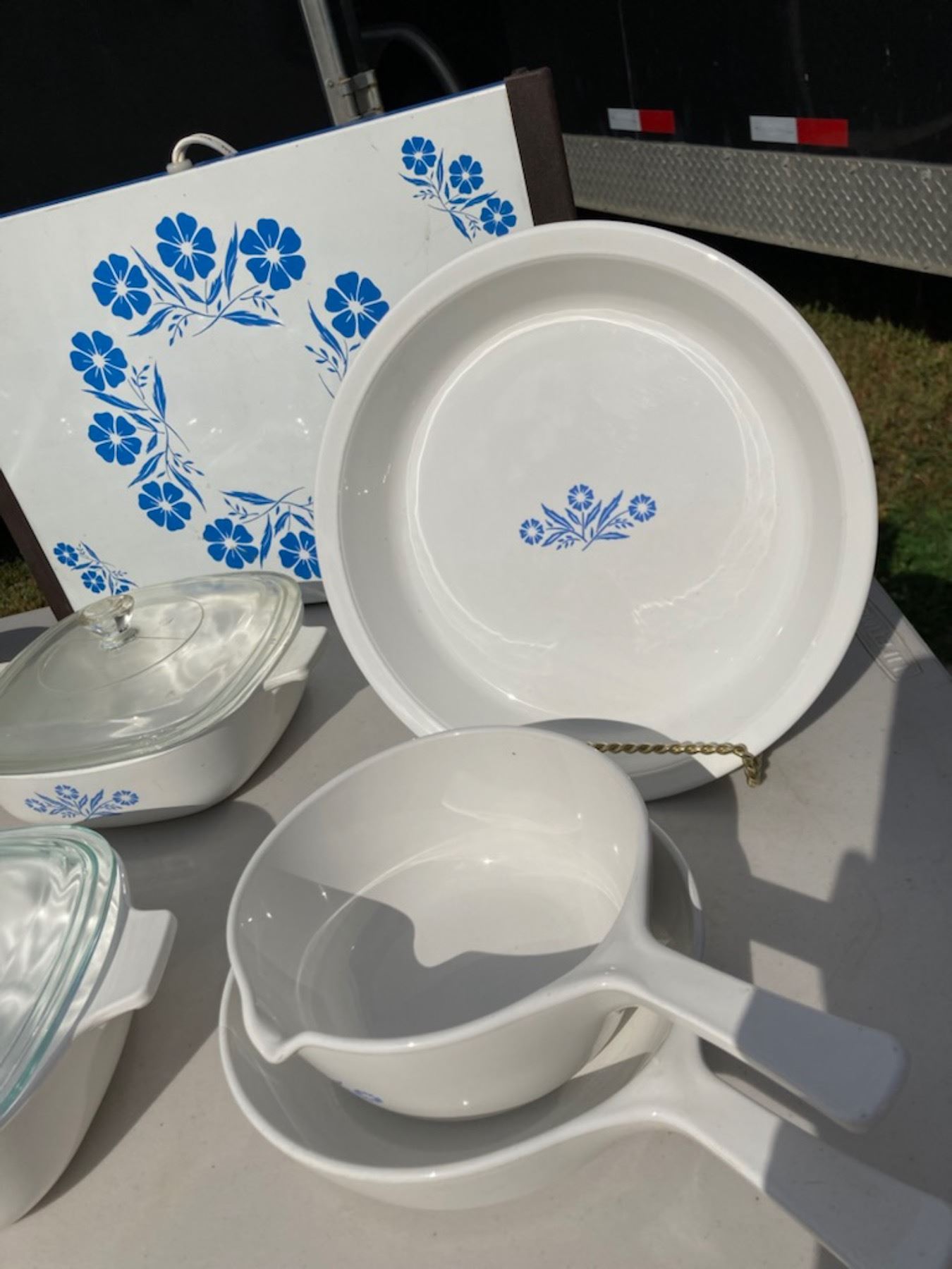 INCLUDING CASSEROLE DISHES WITH LIDS, COFFEE AND TEA POT, FOOD WARMING TRAY, AND PANS