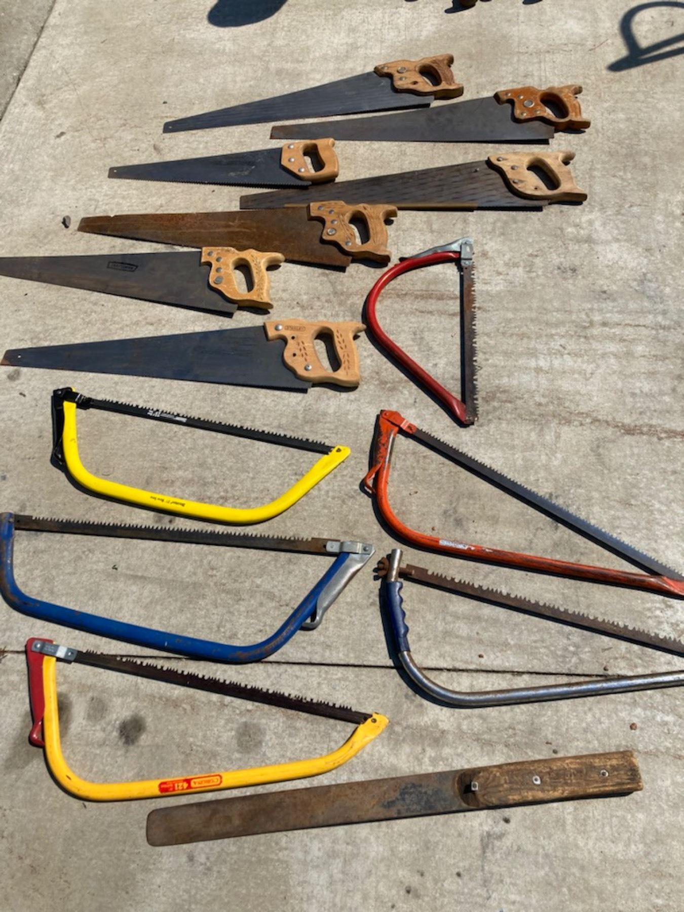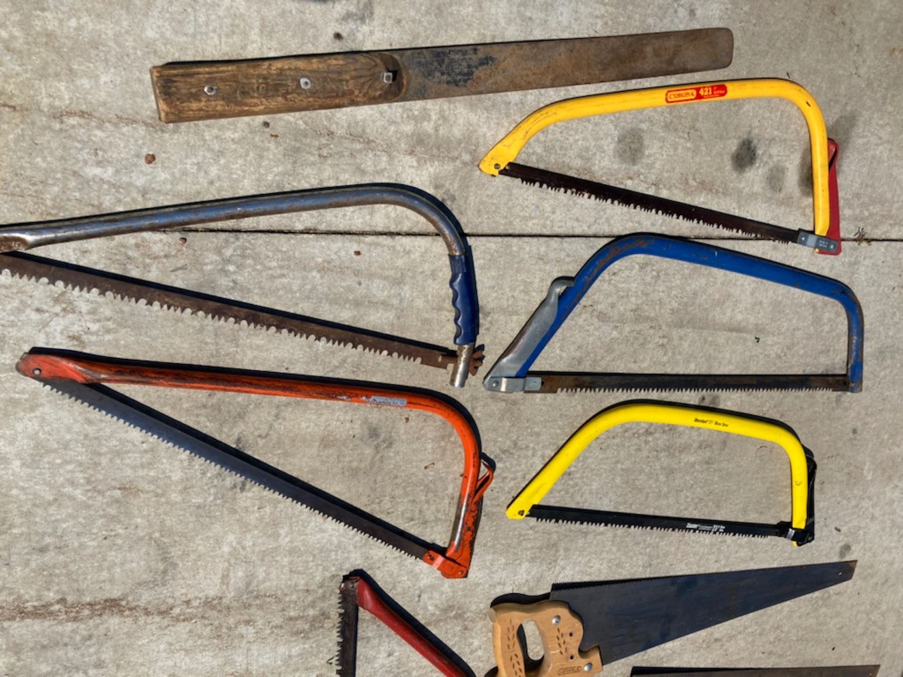 CROSSCUT SAWS, BOW SAWS, AND LEVEL; LOT