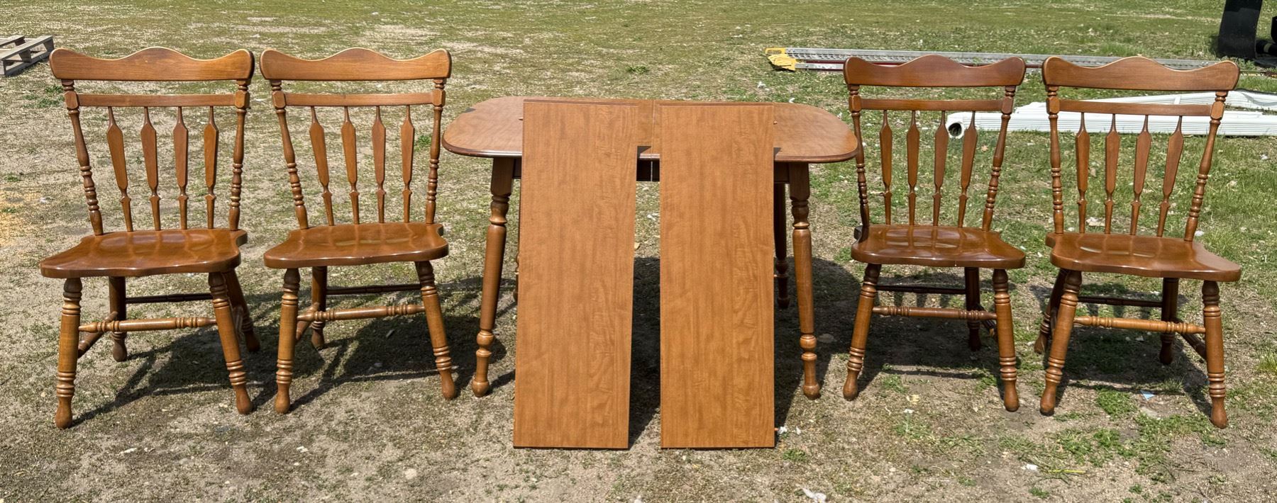 DINING TABLE WITH FOUR CHAIRS AND TWO LEAVES