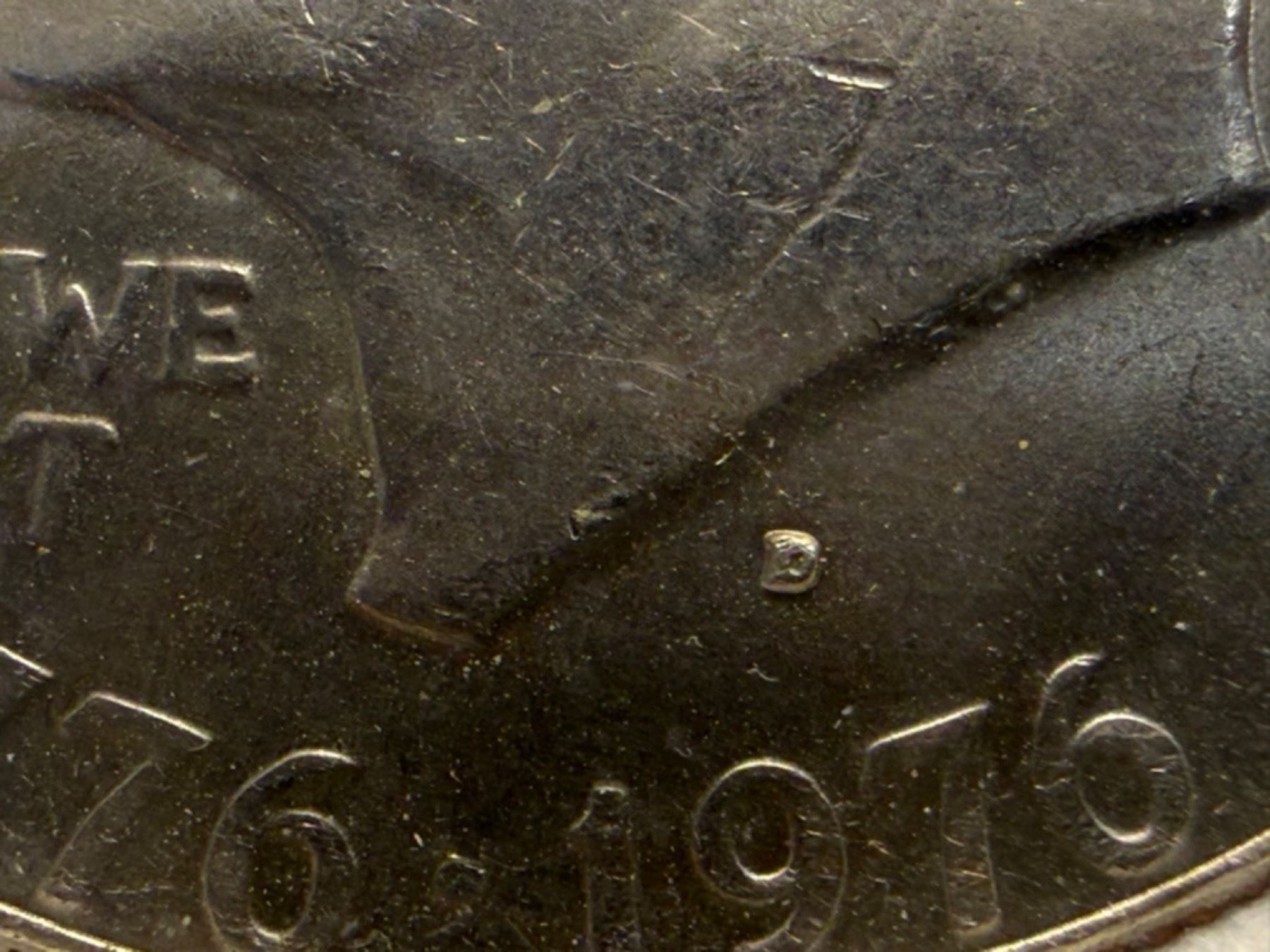 DENVER MINT; EISENHOWER DOLLARS WERE MINTED FROM 1971-1978 WITH A DESIGN CHANGE FOR THE BICENTENNIAL COMMEMORATION; SAN FRANCISCO MINT EISENHOWER DOLLARS FROM 1971-1976 ARE 40 PERCENT SILVER AND 60 PERCENT COPPER