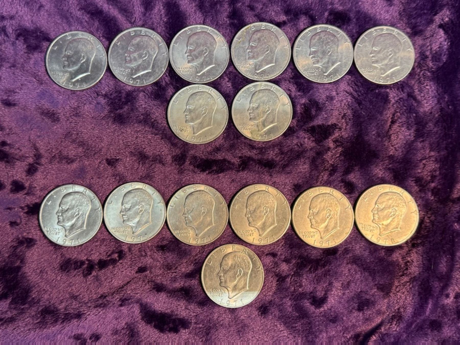 EISENHOWER DOLLARS - 1971; LOT OF 15