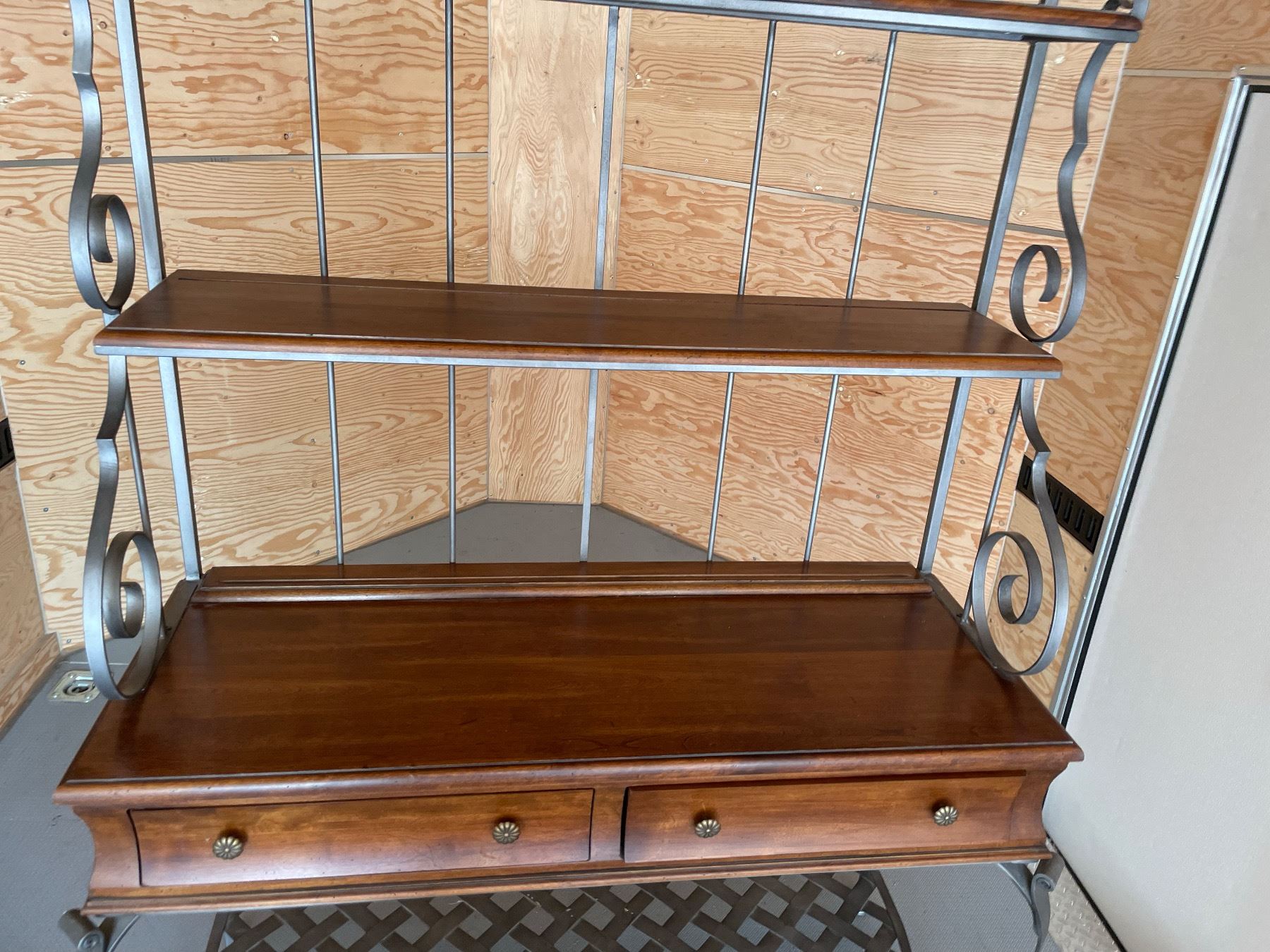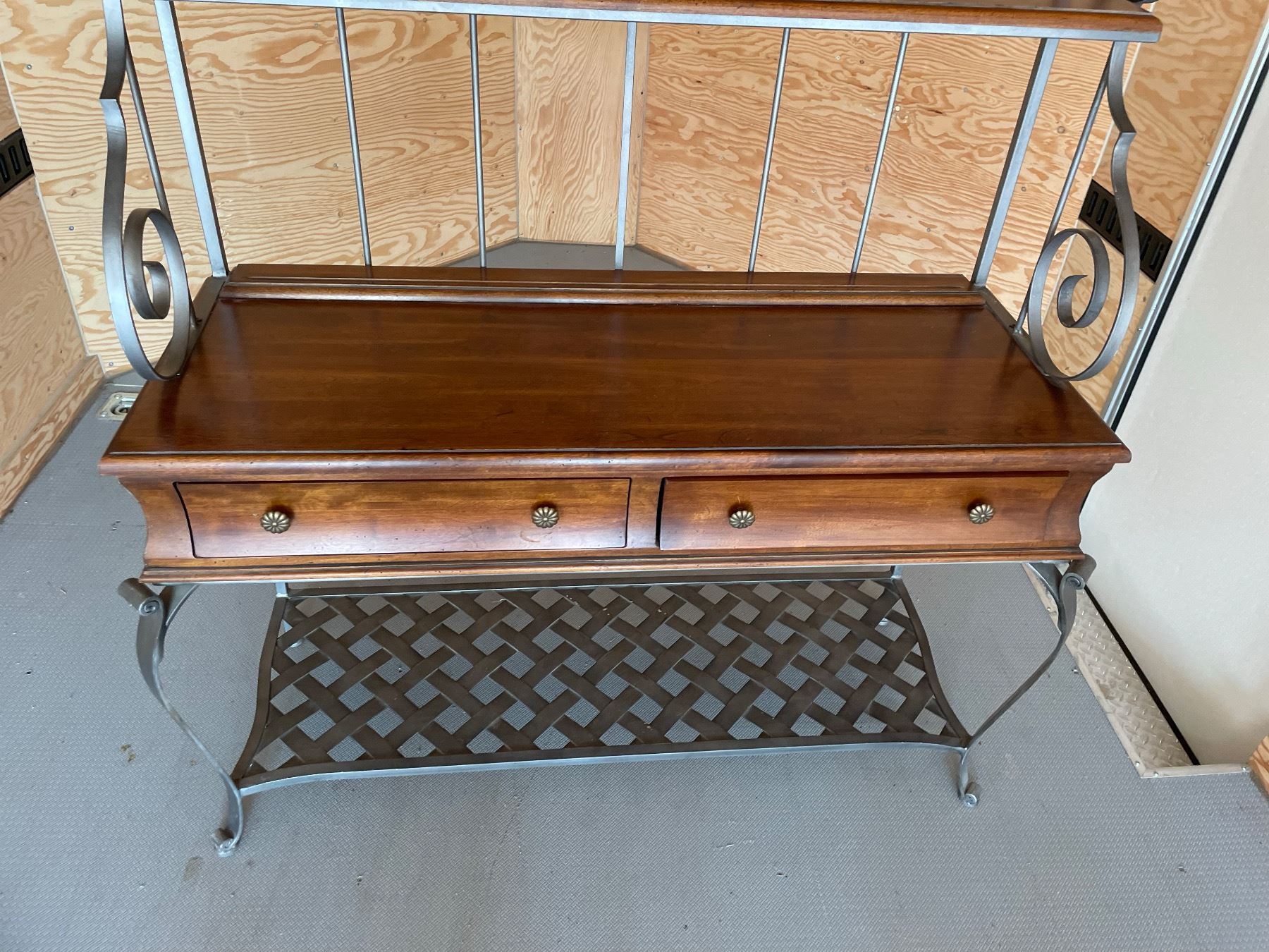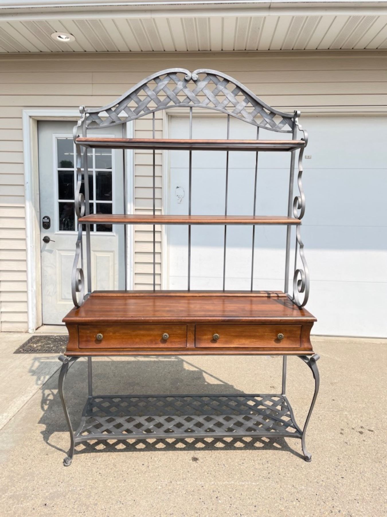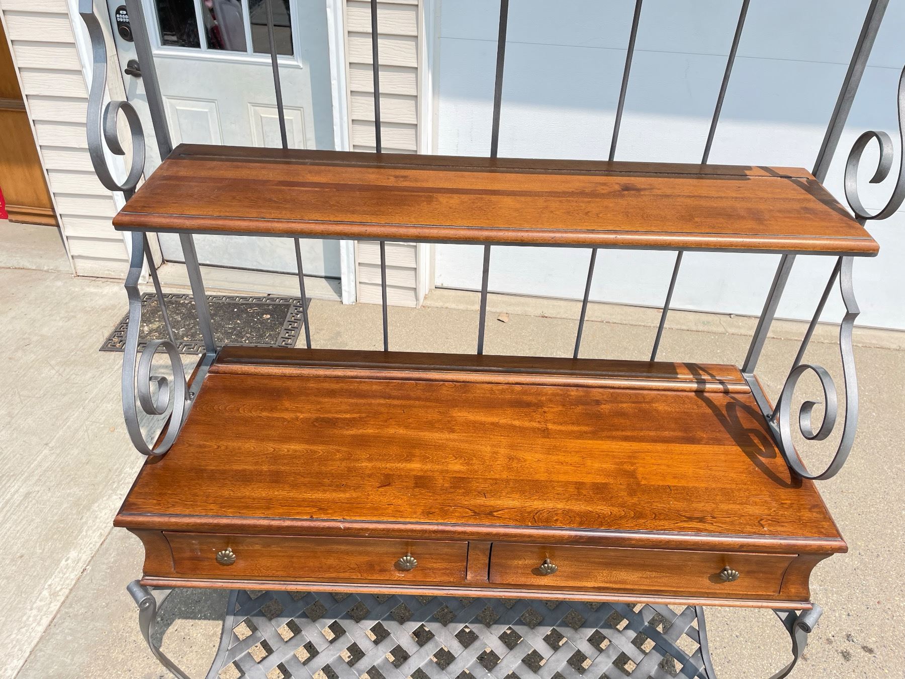 ETHAN ALLEN COUNTRY FRENCH BAKERS' RACK - METAL AND WOOD HUTCH STYLE!
