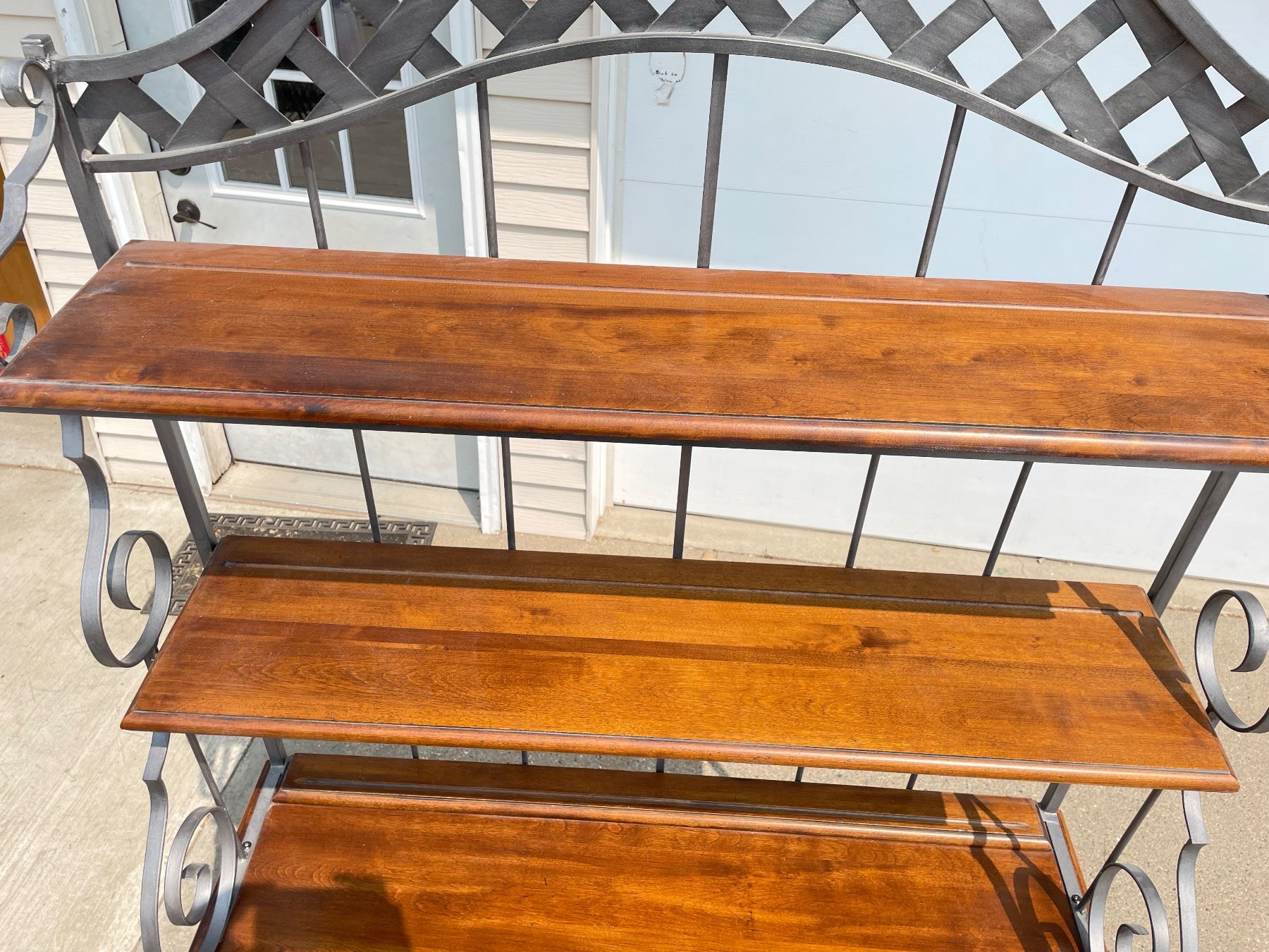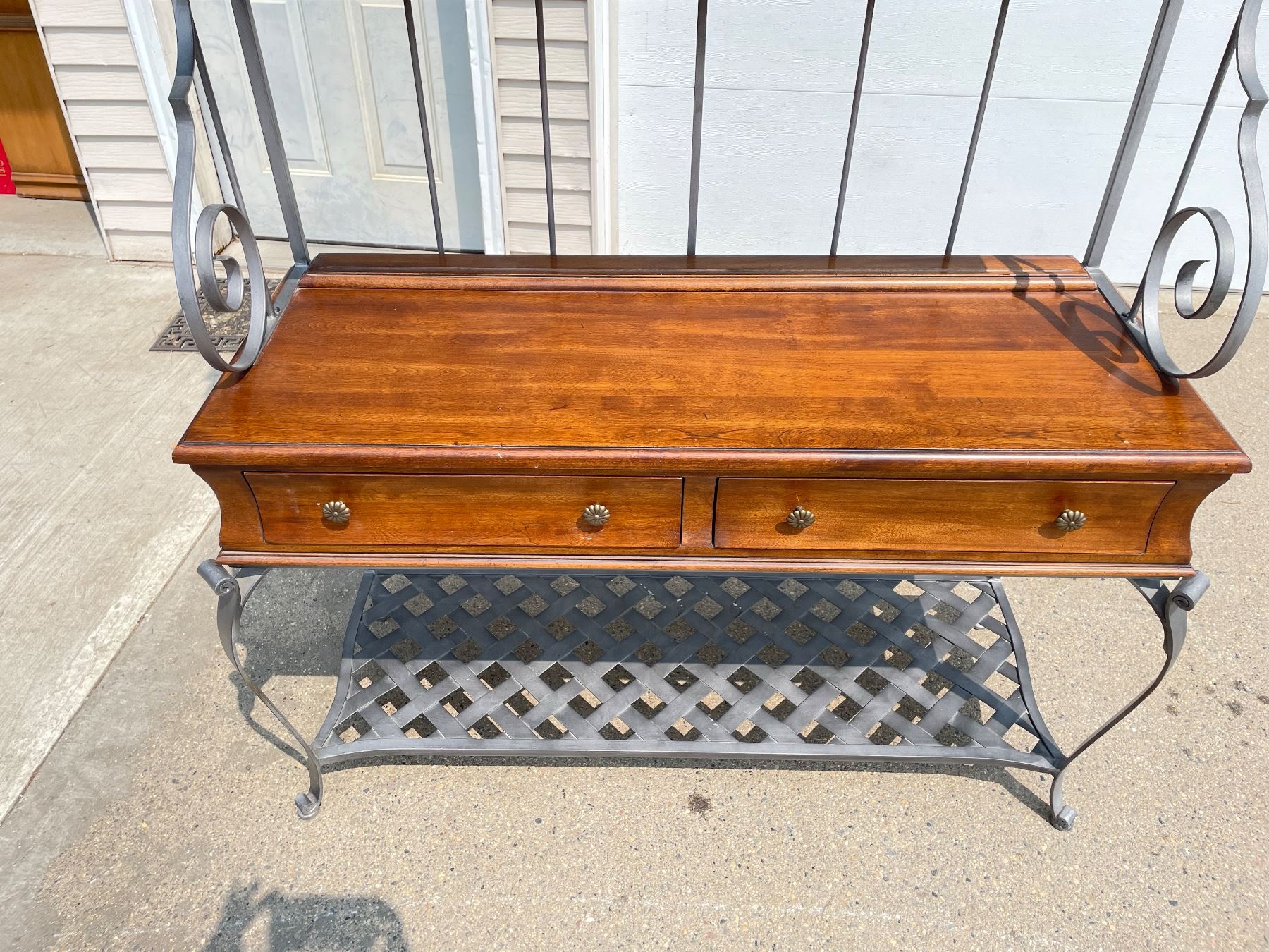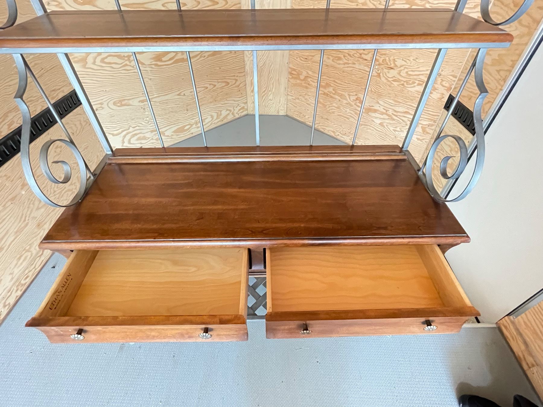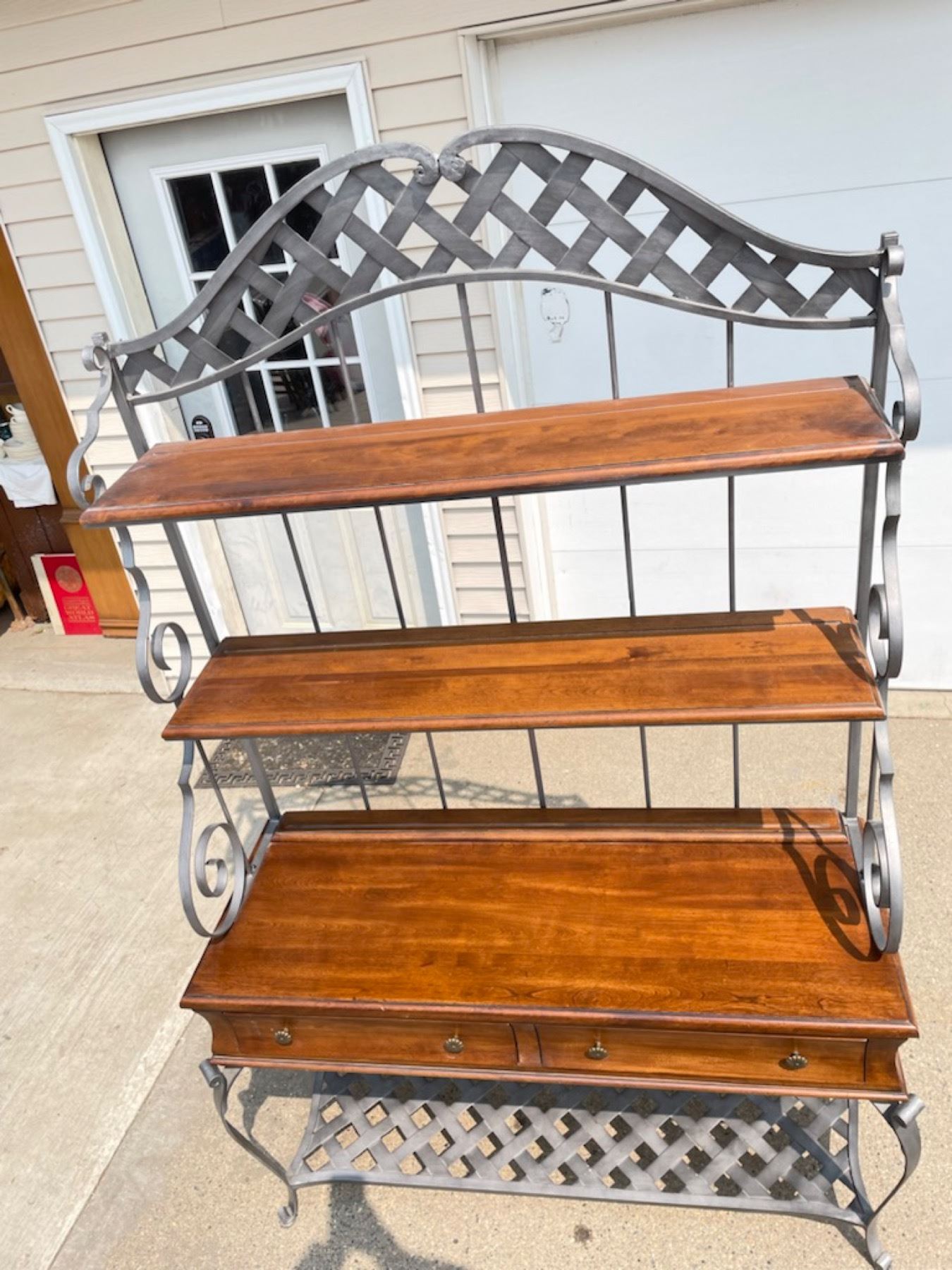 ETHAN ALLEN COUNTRY FRENCH BAKERS' RACK - METAL AND WOOD HUTCH STYLE!