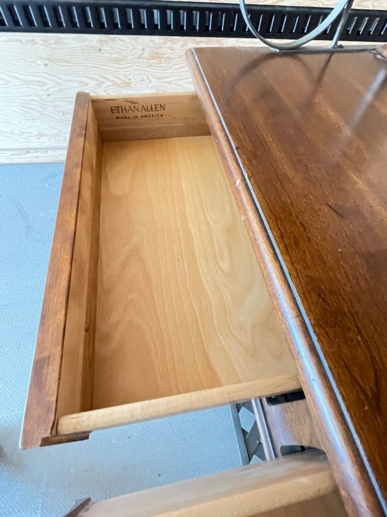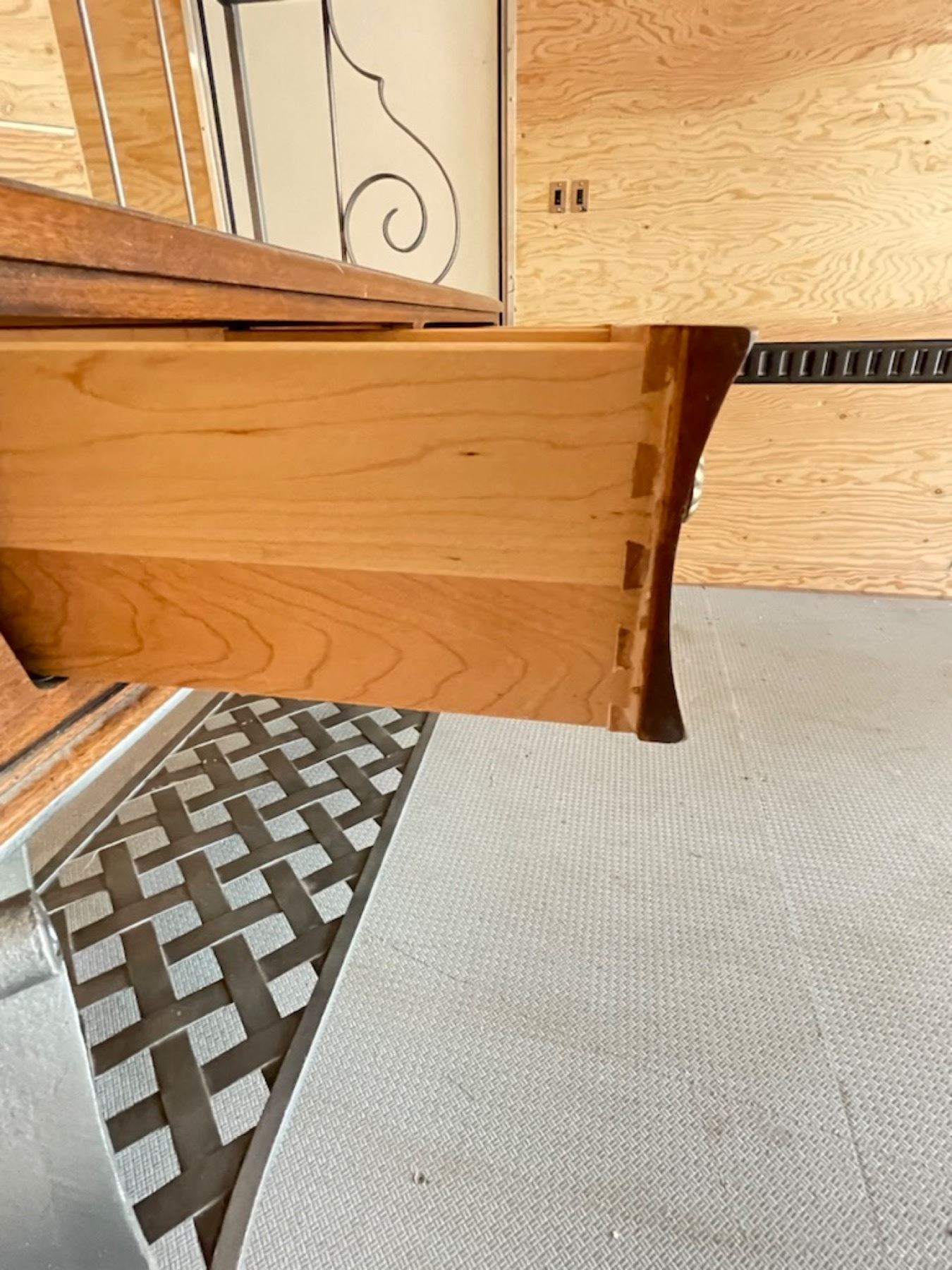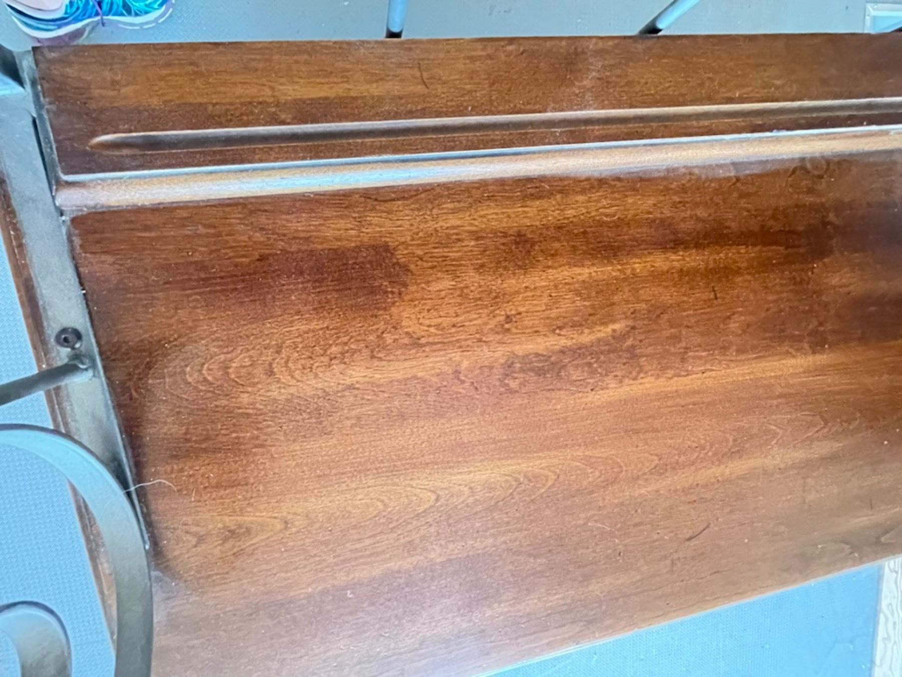 IMAGINE COOLING YOUR MACRONS, BREAD, OR PIES ON THIS BEAUTIFUL PIECE! THIS STYLISH AND VERY DETAILED RACK IS FRAMED WITH WROUGHT IRON THAT GIVES THE IMPRESSION OF BEING WOVEN AND INCLUDES SOLID MAPLE WOOD BASE AND TWO SHELVES; THIS RACK FEATURES A DECORATIVE ARCHED TOP, SCROLLED SIDES, CROSS STYLED CONSOLE, AND TWO CLEAN AND FULLY FUNCTIONAL DRAWERS; THIS ITEM WAS MANUFACTURED IN THE EARLY 2000S AND IS FACTORY DISTRESSED TO ADD CHARACTER AND CHARM TO THIS COUNTRY FRENCH COLLECTION; THIS RACK IS VERY CLEAN AND WAS WELL CARED FOR OVER THE YEARS AND IS IN EXCELLENT CONDITION