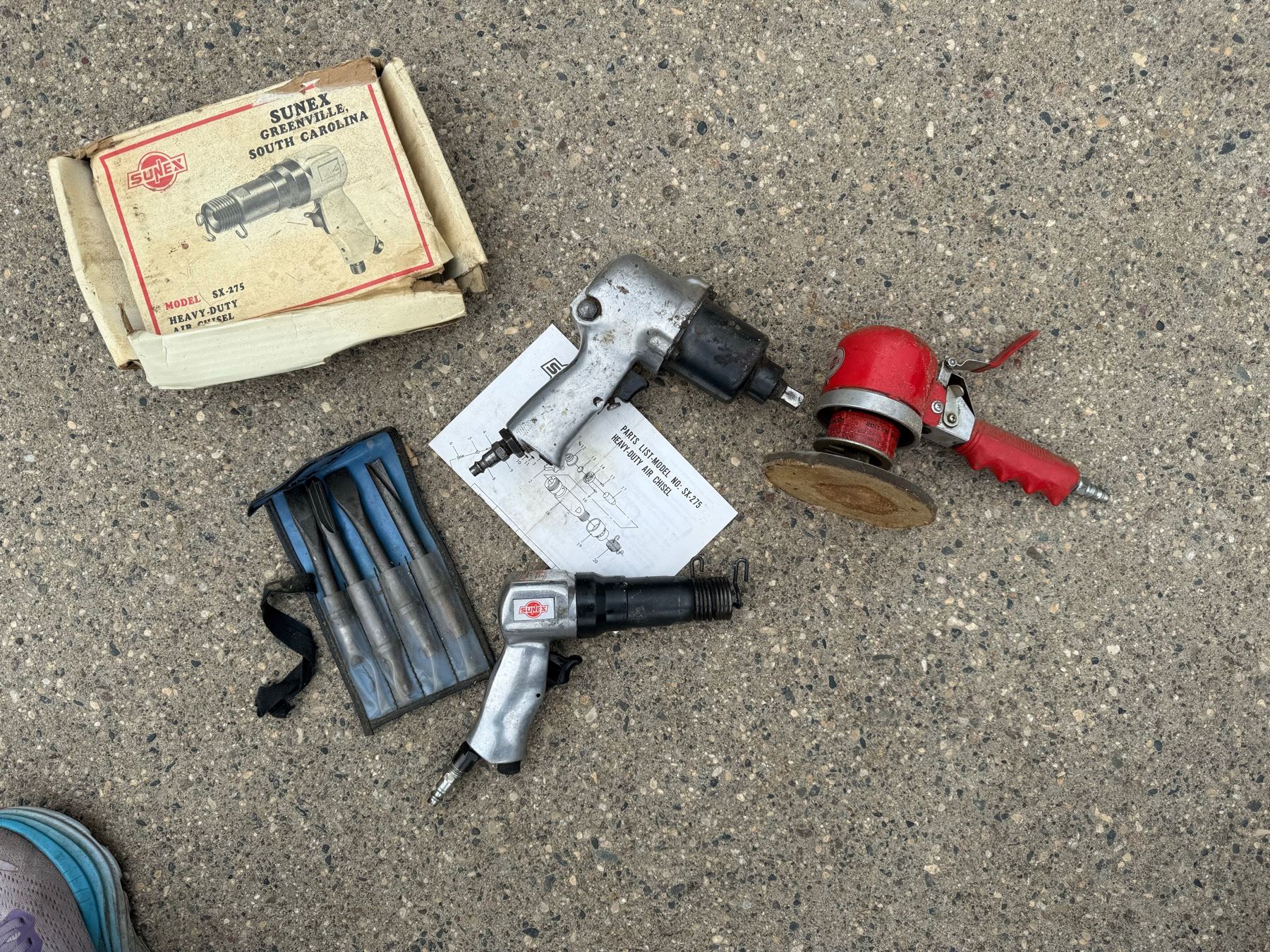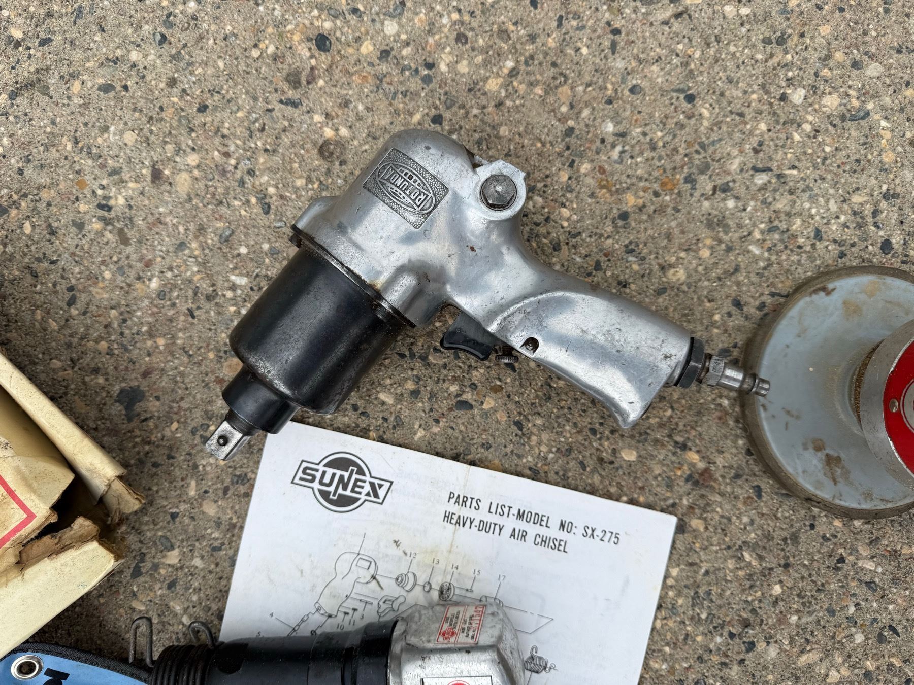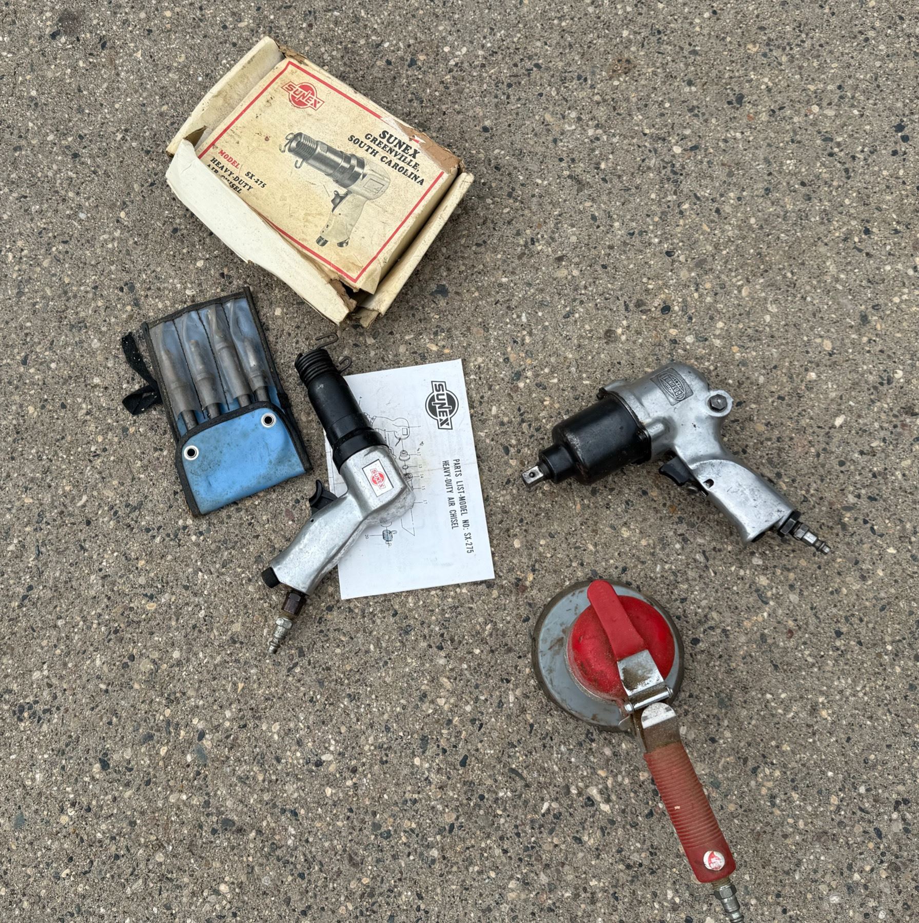 FORD MOTOR COMPANY ROTUNDA PNEUMATIC IMPACT WRENCH; SUNEX PNEUMATIC SX-275 HEAVY DUTY AIR CHISEL; AND SUNEX PNEUMATIC ORBITAL SANDER- WORK!