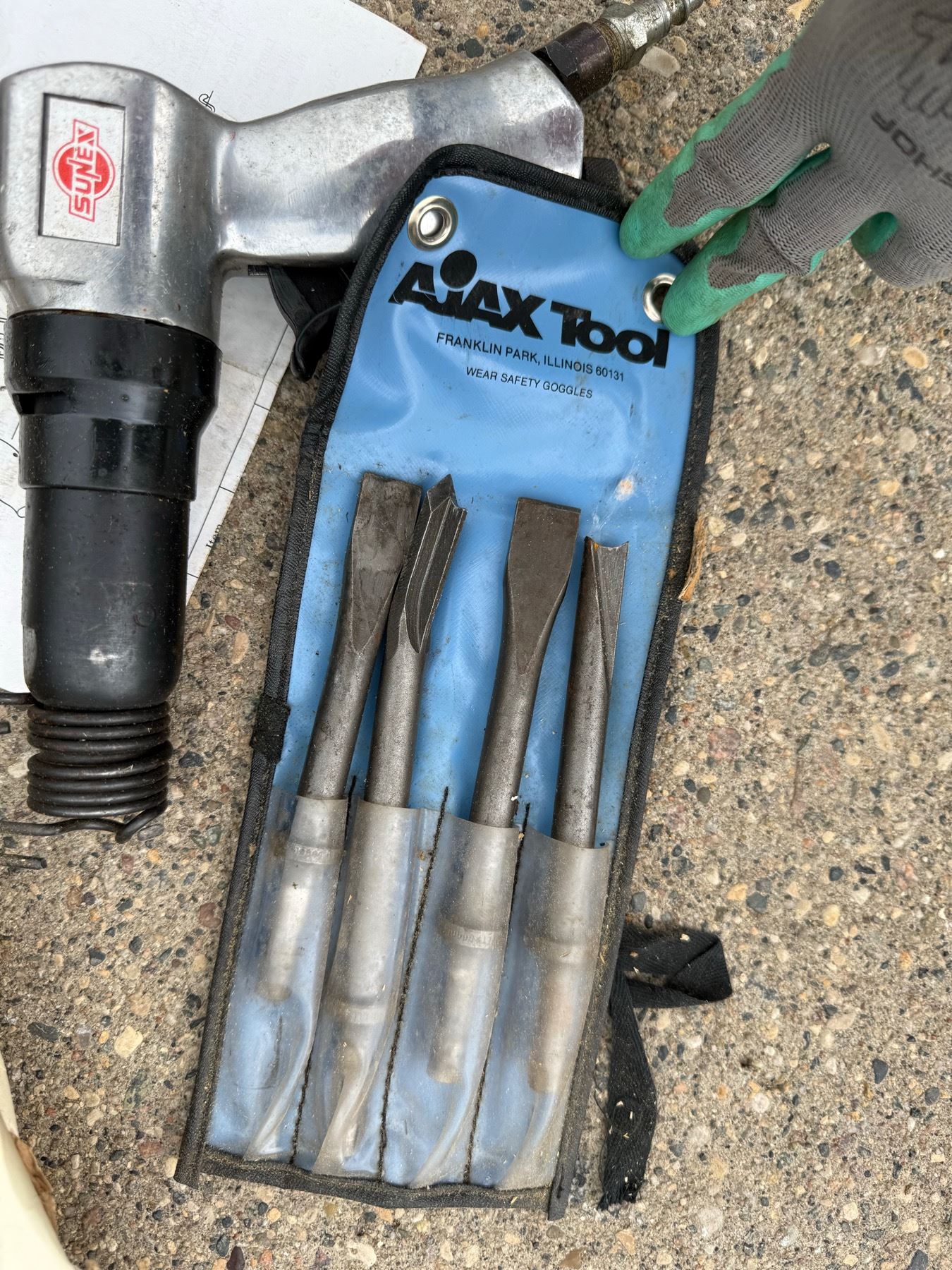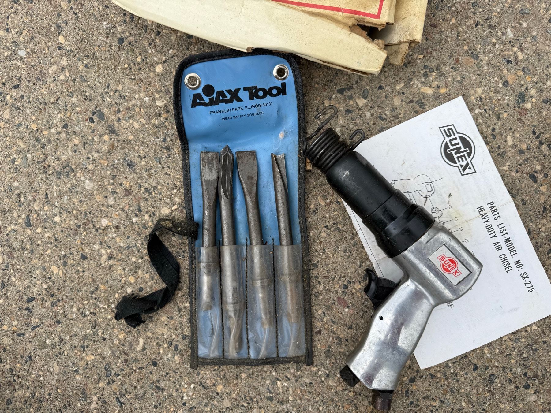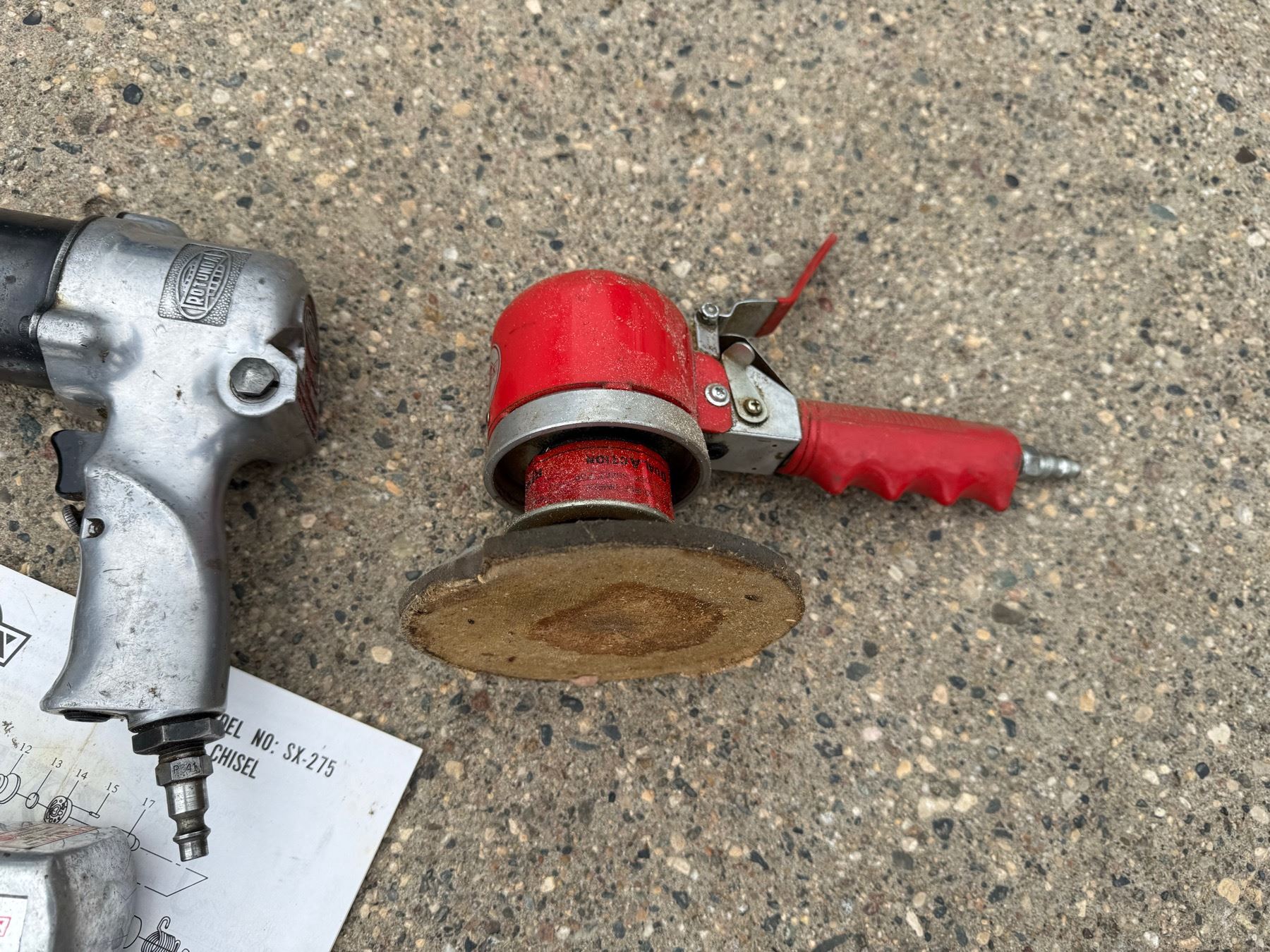 FORD MOTOR COMPANY ROTUNDA PNEUMATIC IMPACT WRENCH; SUNEX PNEUMATIC SX-275 HEAVY DUTY AIR CHISEL; AND SUNEX PNEUMATIC ORBITAL SANDER- WORK!