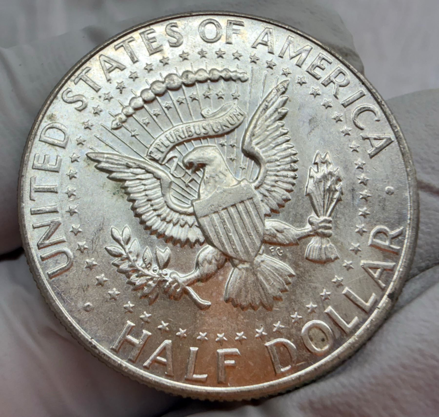 THE BARBER HALF DOLLAR IS 90 PERCENT SILVER AND 10 PERCENT COPPER WITH A TOTAL WEIGHT OF 12.5 GRAMS, CONTAINS 0.36169 TROY OUNCE OF PURE SILVER, AND WAS MINTED FROM 1892-1915; THE WALKING LIBERTY HALF DOLLAR IS 90 PERCENT SILVER AND 10 PERCENT COPPER WITH A TOTAL WEIGHT OF 12.5 GRAMS, CONTAINS 0.36169 TROY OUNCE OF PURE SILVER, AND WAS MINTED FROM 1916-1947; THE FRANKLIN SILVER HALF DOLLAR IS 90 PERCENT SILVER AND 10 PERCENT COPPER WITH A TOTAL WEIGHT OF 12.5 GRAMS, CONTAINS 0.36169 TROY OUNCE OF PURE SILVER, AND WAS MINTED FROM 1948-1963; THE 1964 KENNEDY HALF DOLLAR IS 90 PERCENT SILVER AND 10 PERCENT COPPER WITH A TOTAL WEIGHT OF 12.5 GRAMS, CONTAINS .36169 TROY OUNCE OF PURE SILVER; FROM 1965–1970, THE KENNEDY HALF DOLLAR IS 40 PERCENT SILVER AND 60 PERCENT COPPER WITH A TOTAL WEIGH OF 11.5 GRAMS AND CONTAINS .14779 TROY OUNCE OF PURE SILVER; THE KENNEDY HALF DOLLAR WAS ISSUED FROM 1964-PRESENT; THE 1964 MINT MARK IN ON THE REVERSE OF THE COIN, THERE WERE NO MINT MARKS ON ANY FROM 1965-1967, THE MINT MARKS ARE ON THE FRONT (OBVERSE) OF THE COIN FROM 1968-PRESENT