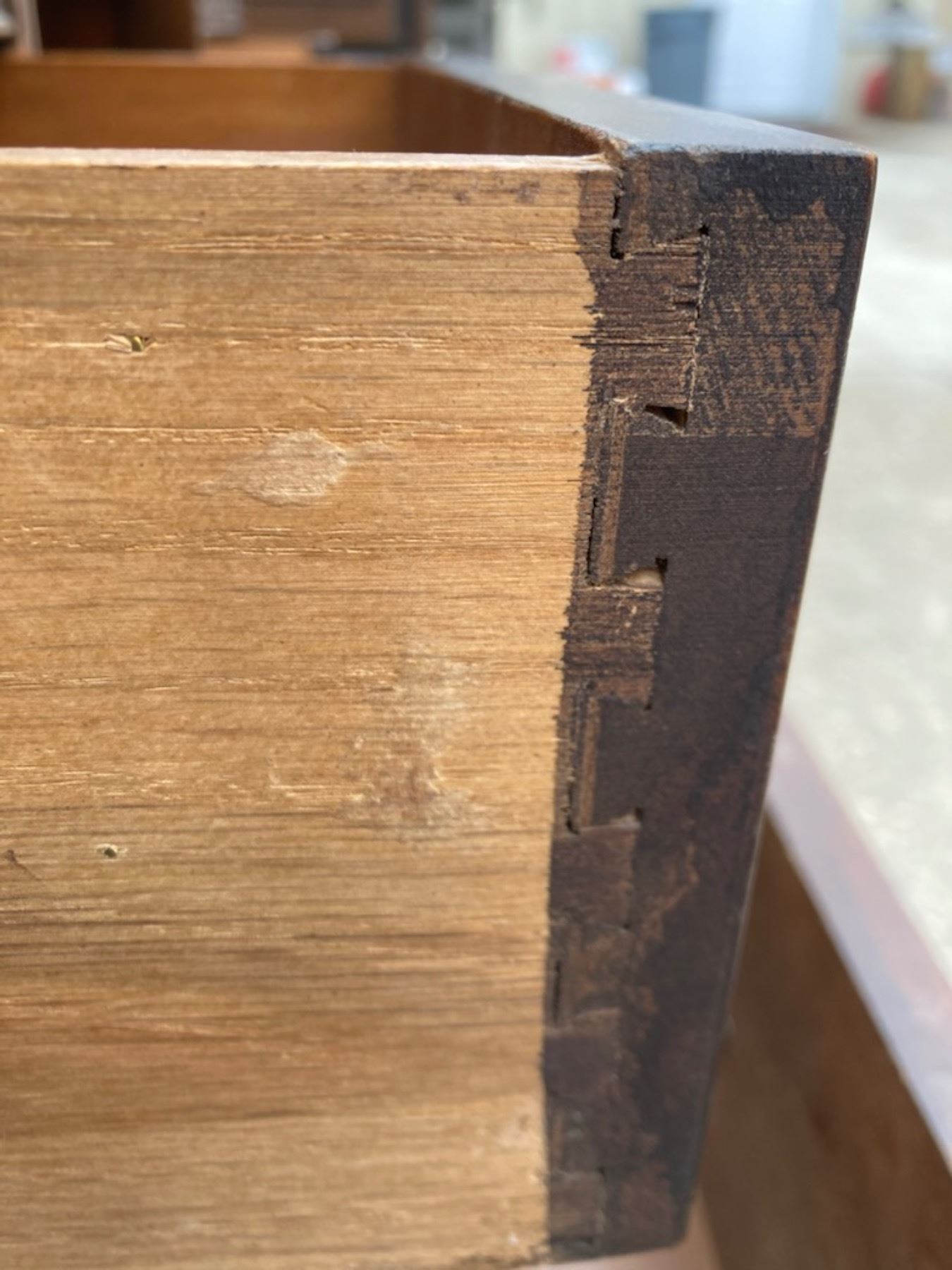 THE CARVING FEATURES A WITH GOTHIC REVIVAL STYLE, CHARACTERIZED BY THE USE OF POINTED ARCHES AND QUATREFOIL (FOUR-LEAF) MOTIFS WITHIN THE GEOMETRIC PATTERNS