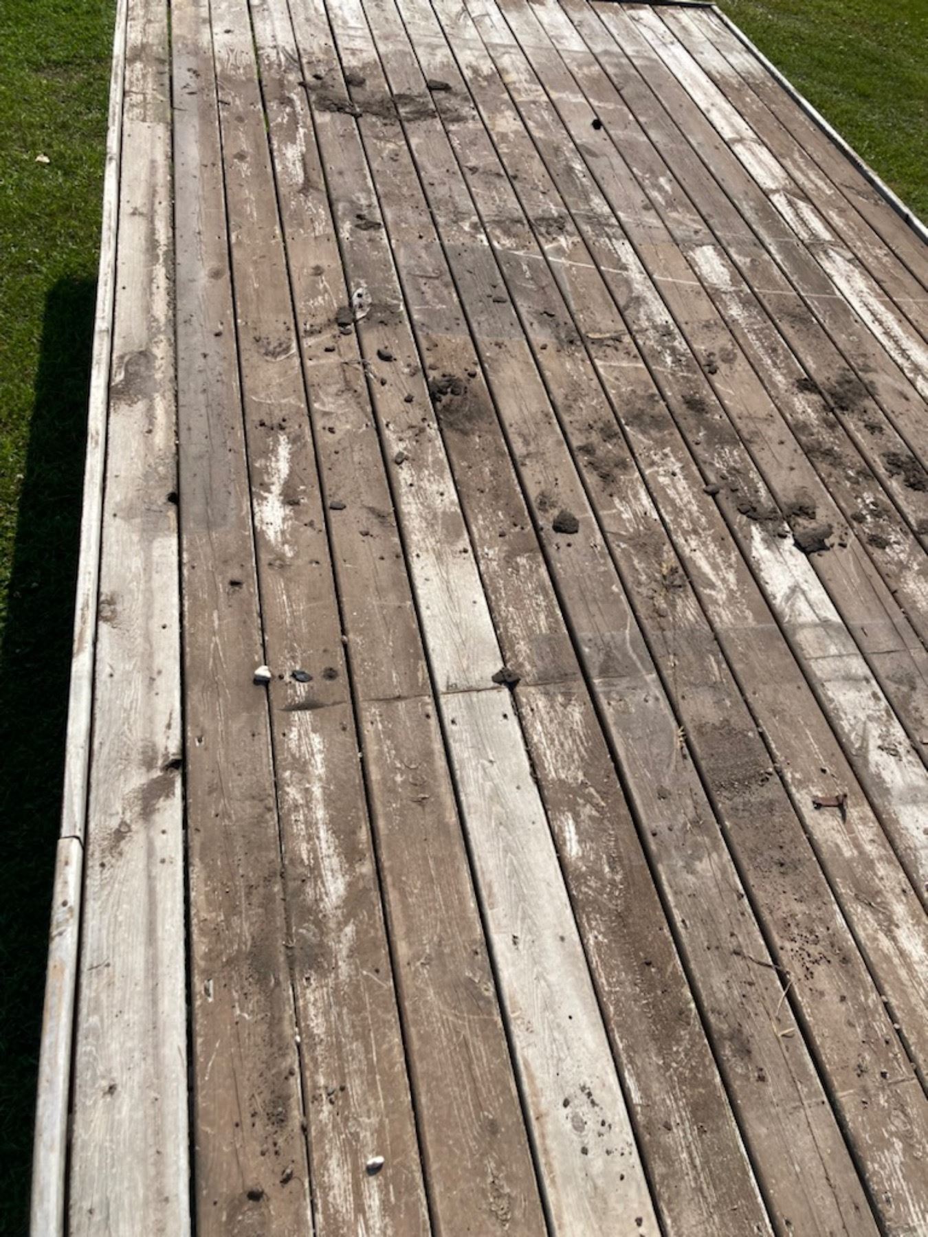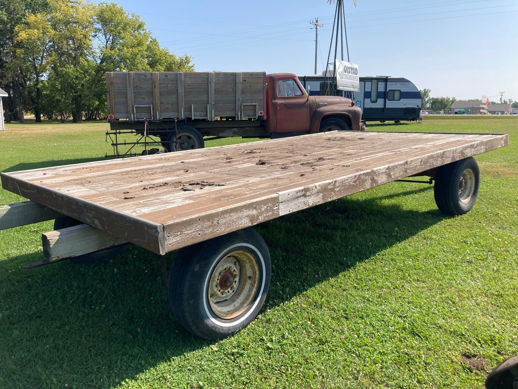 WOODEN DECK ON 4X4 TIMBERS; 6-LUG TIRE AXLES
