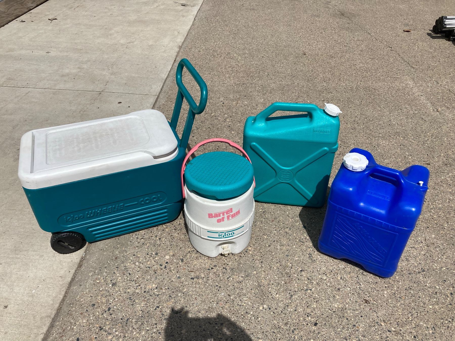 IGLOO COOLER, IGLOO WATER JUG, AND WATER JUGS