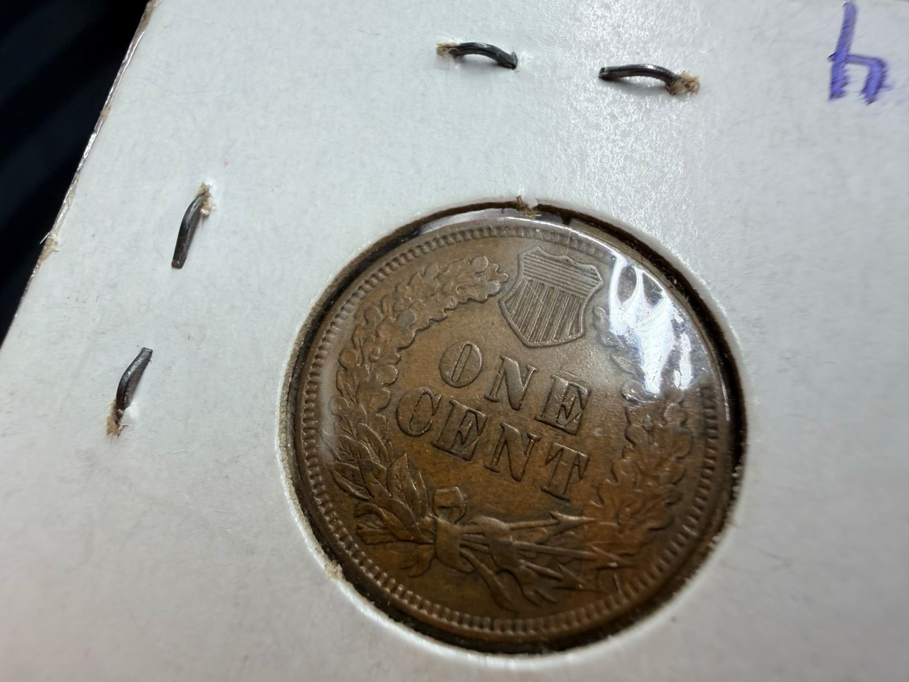 INDIAN HEAD CENTS, COMMONLY KNOWN AS INDIAN HEAD PENNIES; PRODUCED BY THE U.S. MINT FROM 1859 TO 1909; FROM 1859–1864, THESE COINS ARE 88 PERCENT COPPER, 12 PERCENT NICKEL; FROM 1864–1909 THEY ARE 95 PERCENT COPPER, 5 PERCENT TIN AND ZINC