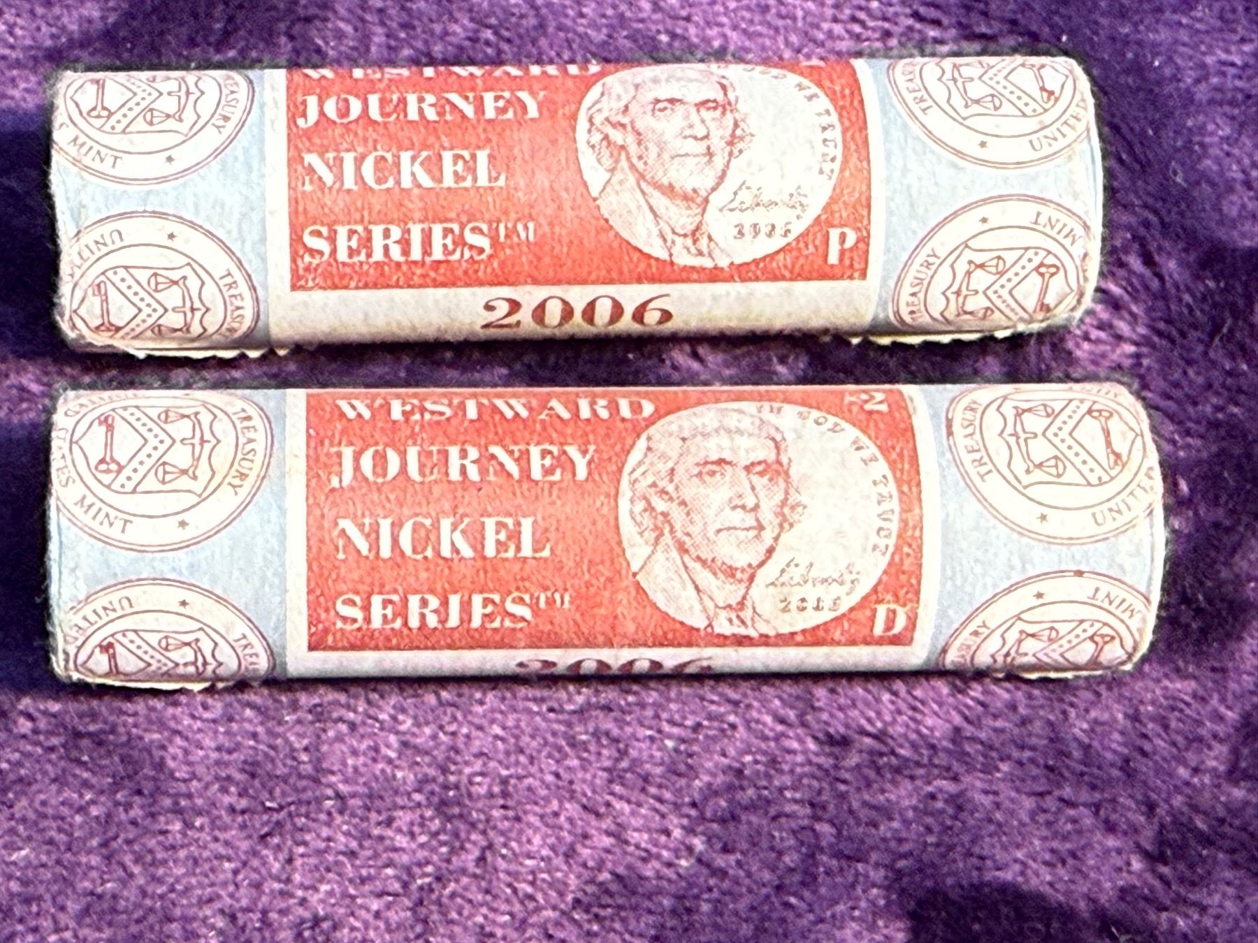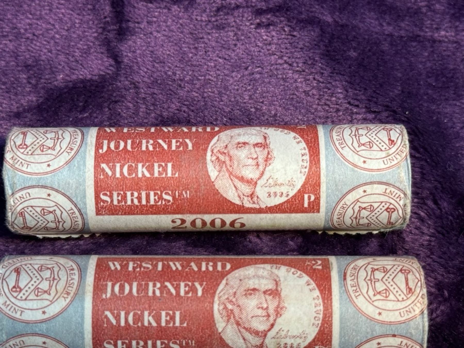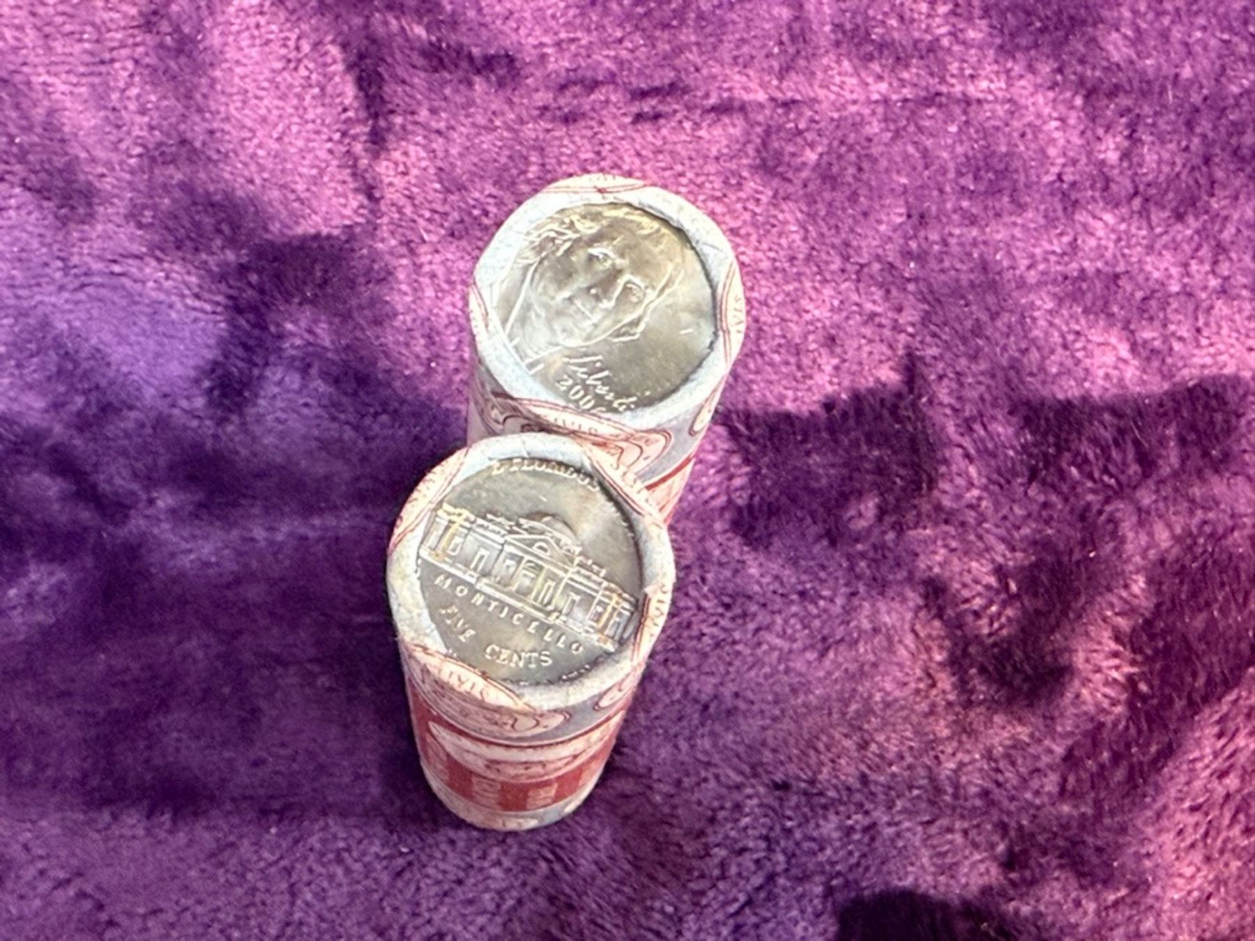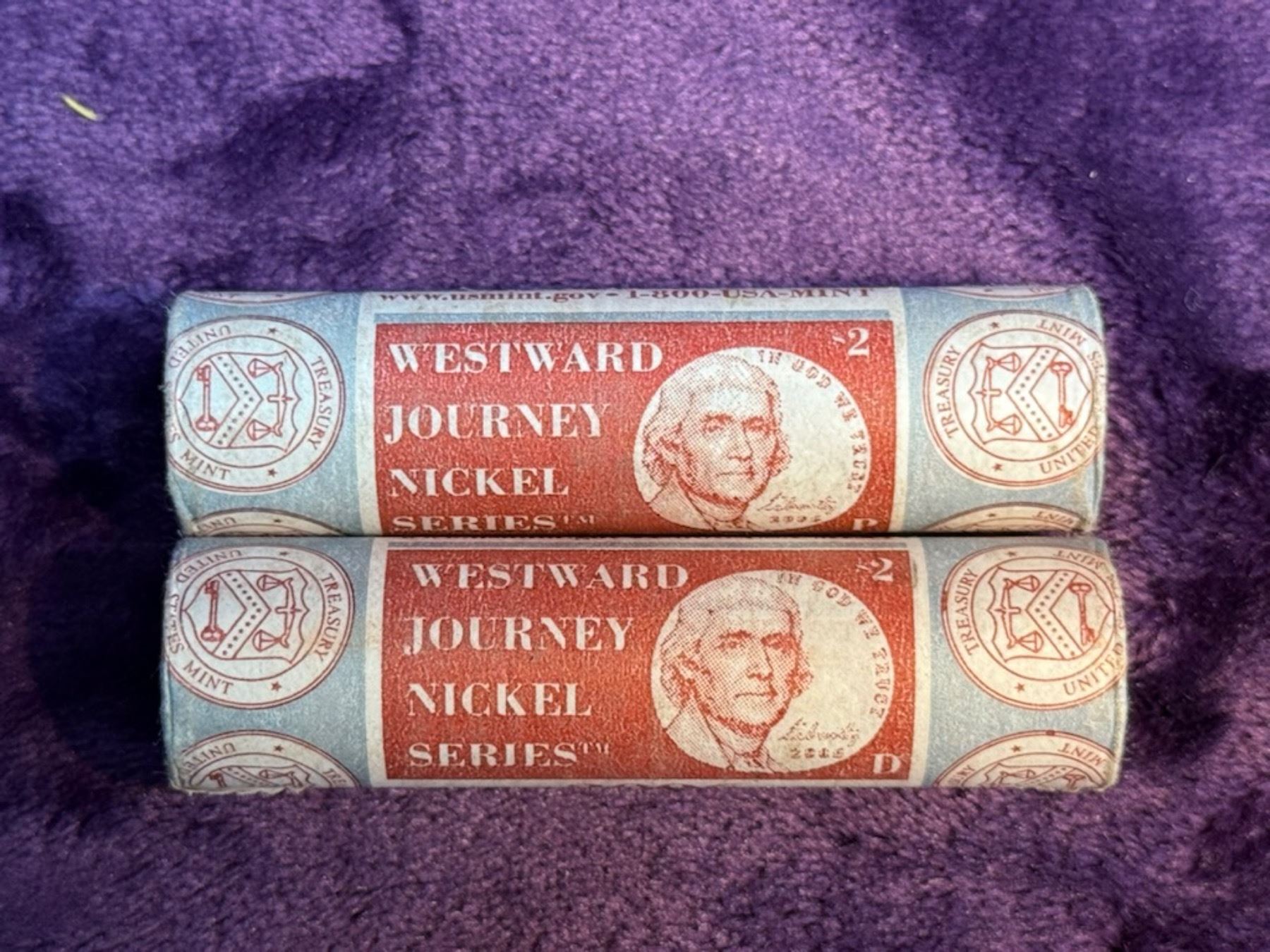 WRAPPED ROLL OF JEFFERSON NICKELS, TWO ROLLS