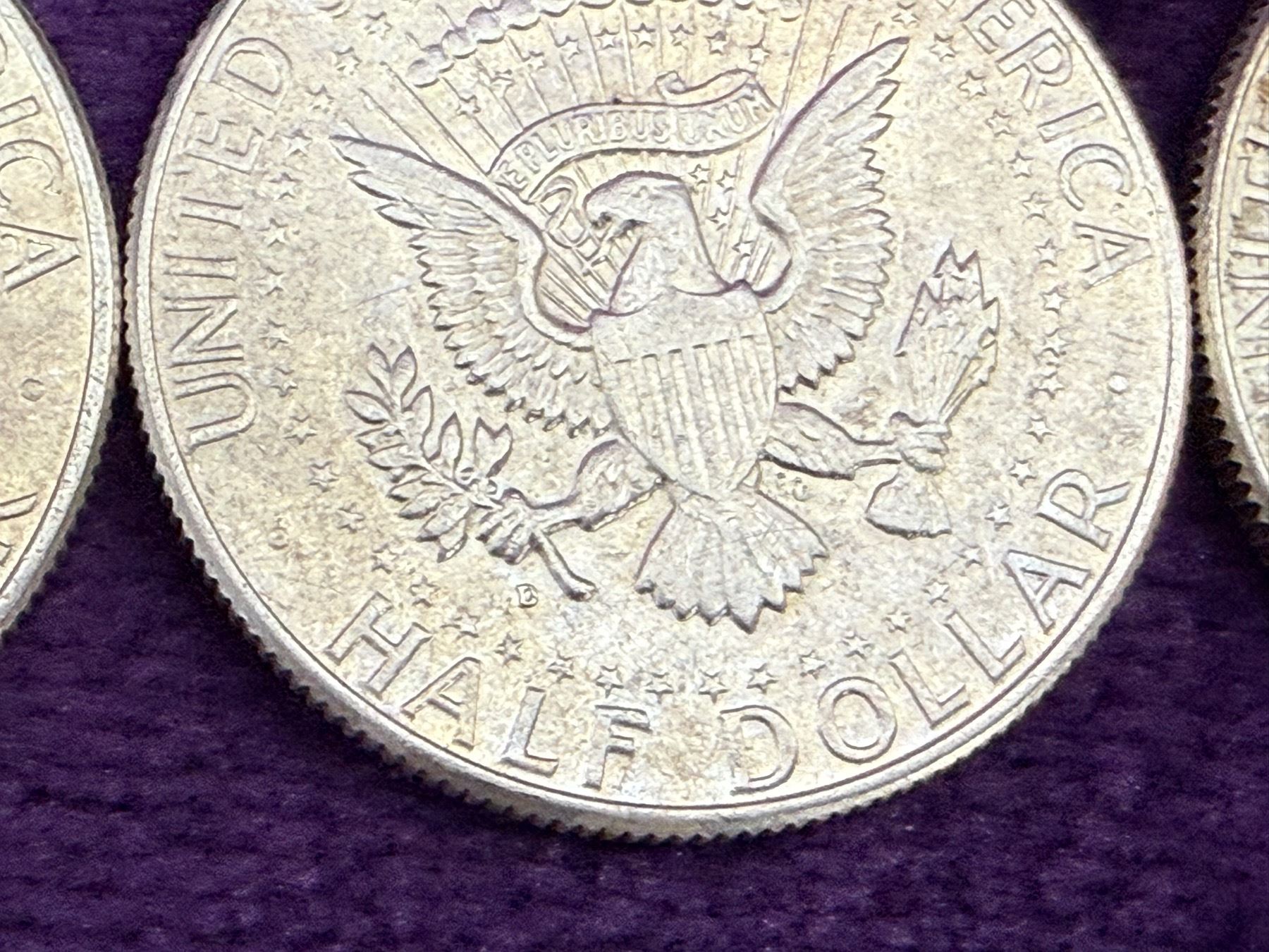 KENNEDY HALF DOLLARS - 1964D X 3, AND 1964