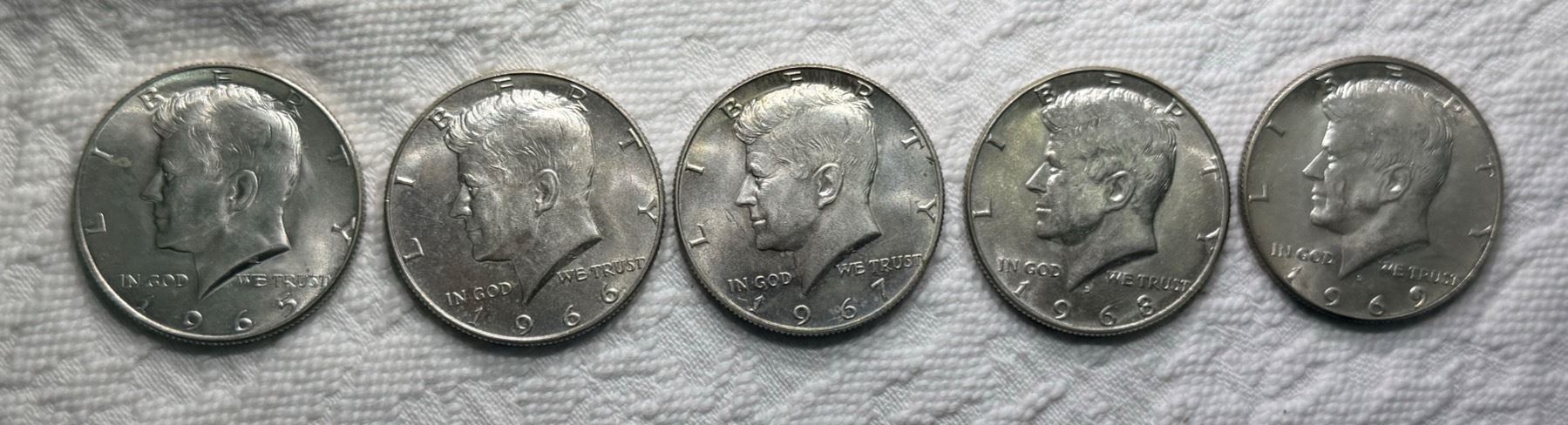 KENNEDY HALF DOLLARS - 1965, 1966, 1967, 1968D, 1969D