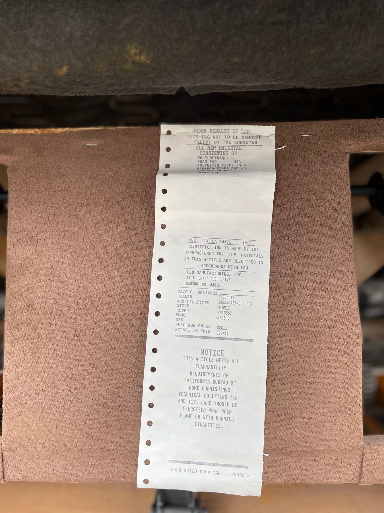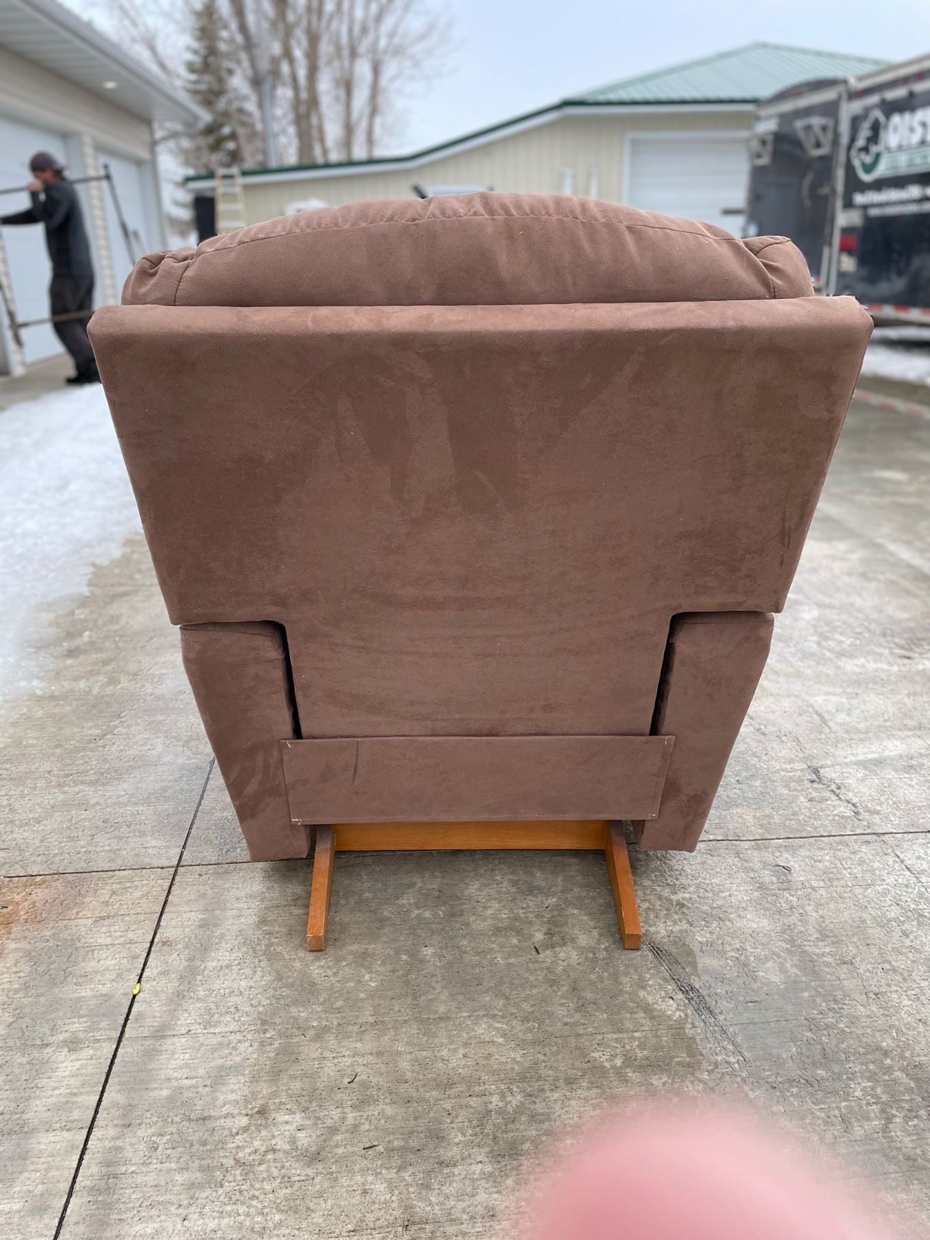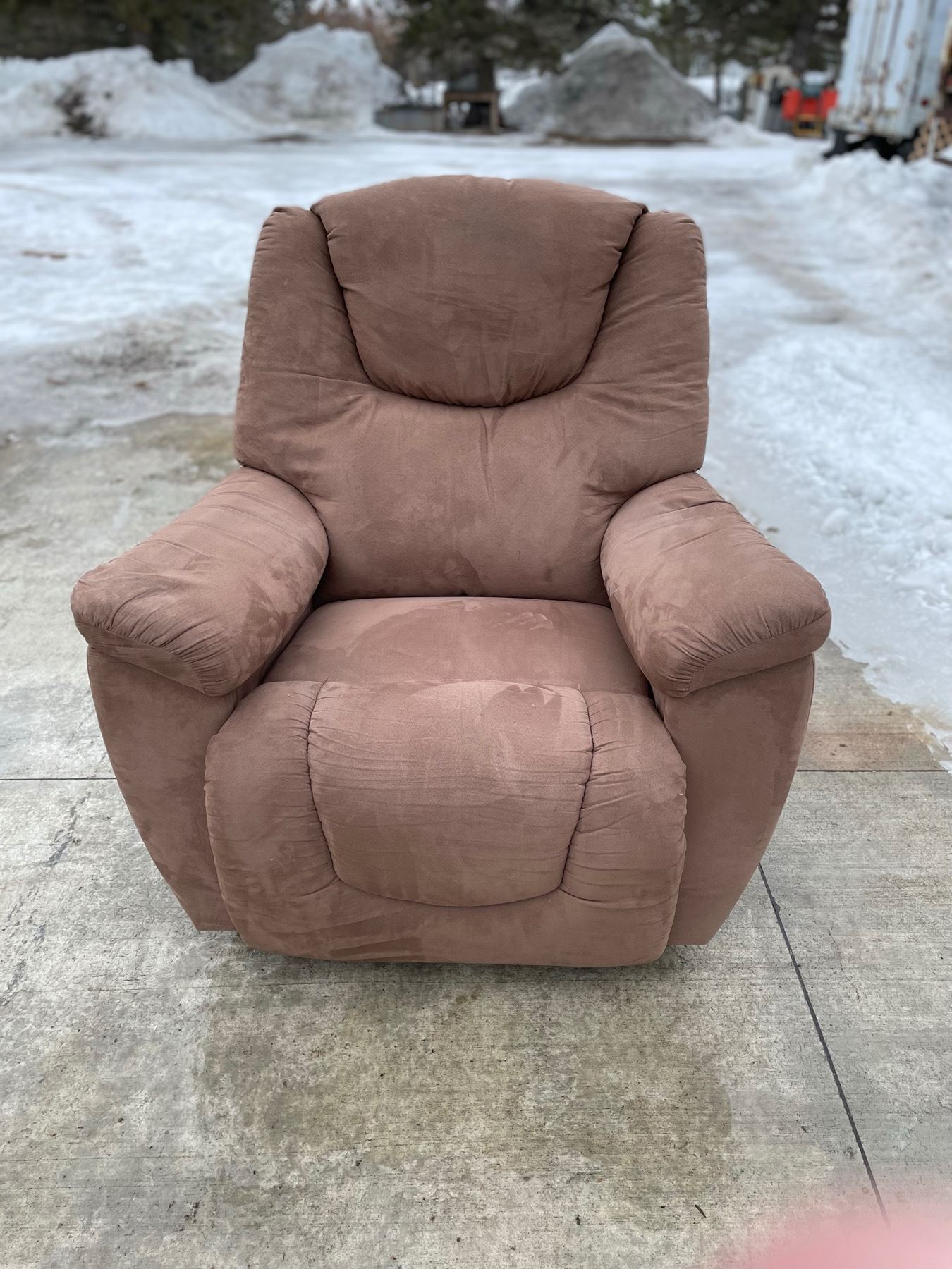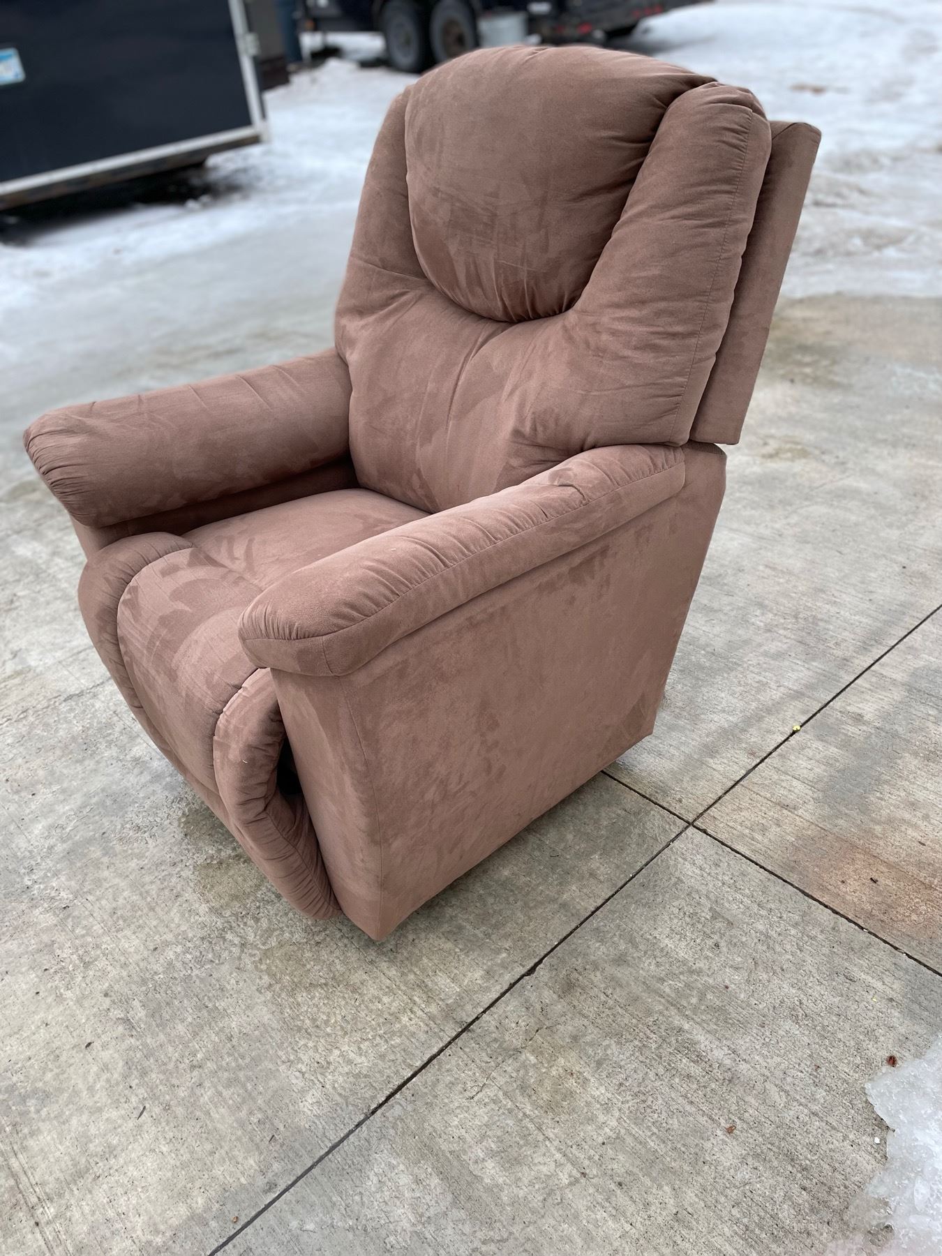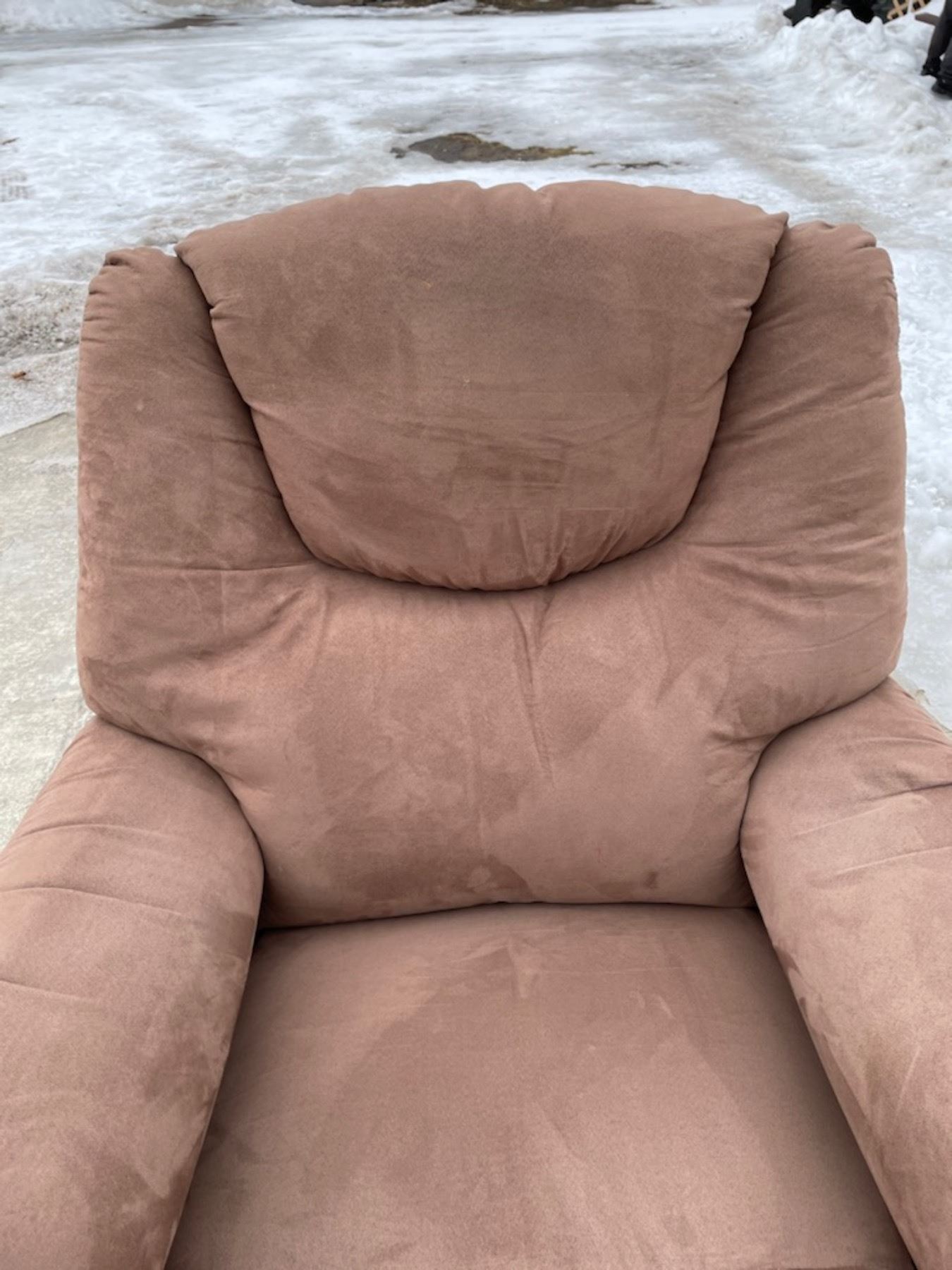 BROWN MICROFIBER LA-Z-BOY ROCKER RECLINER; FROM NO-SMOKING HOME; THERE IS A SMALL BLEMISH ON THE BACK (SEE PICTURES) BUT OTHERWISE IN GREAT CONDITION!