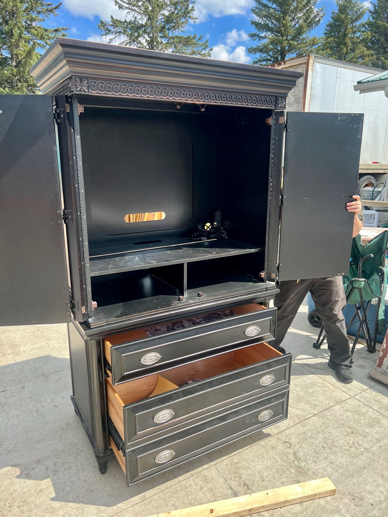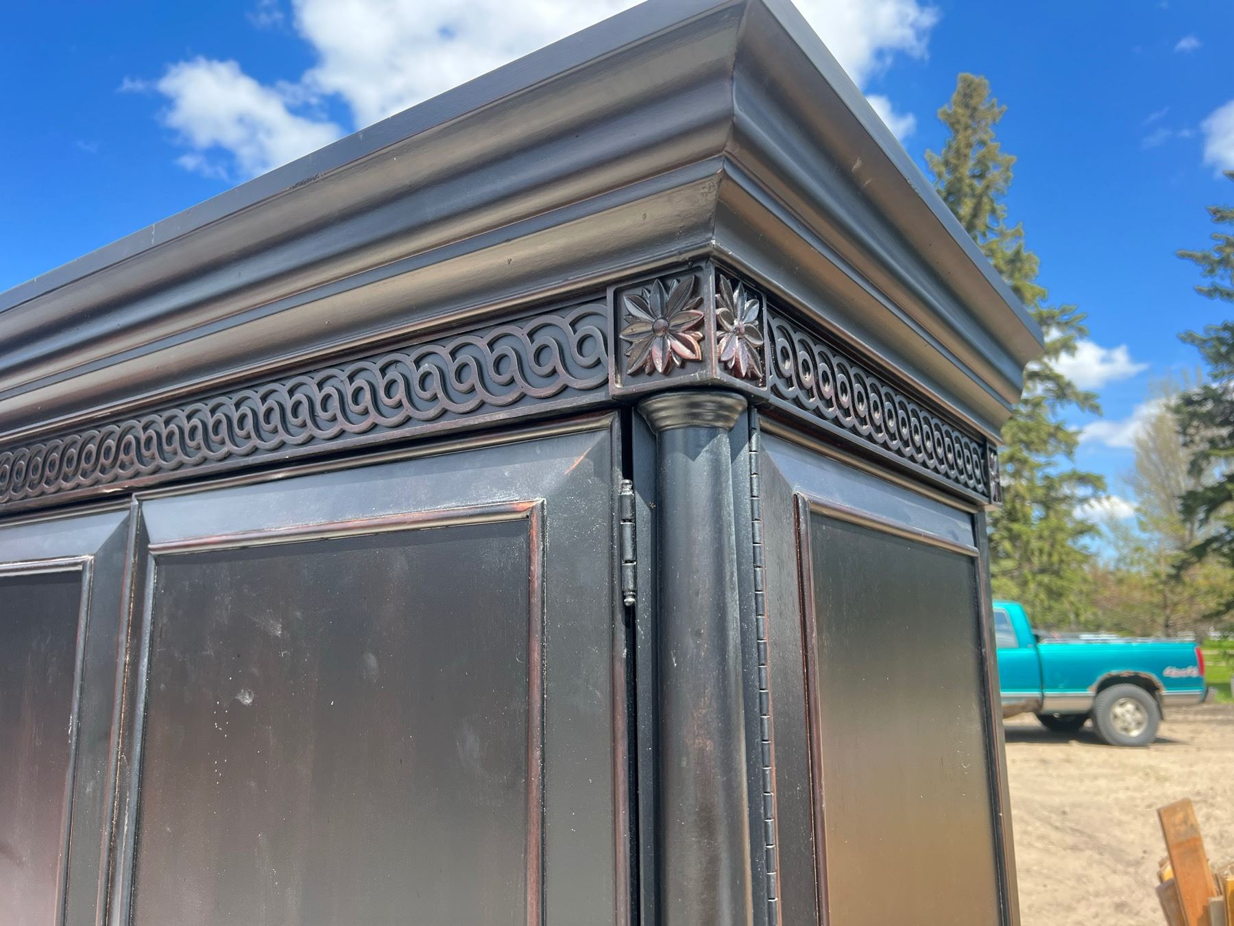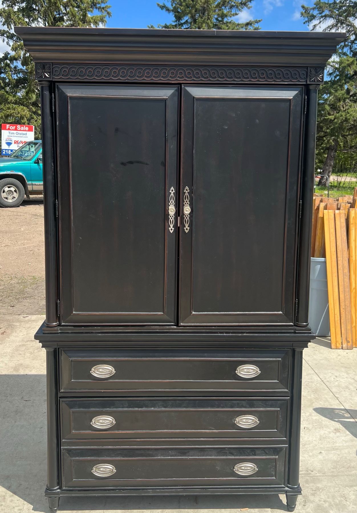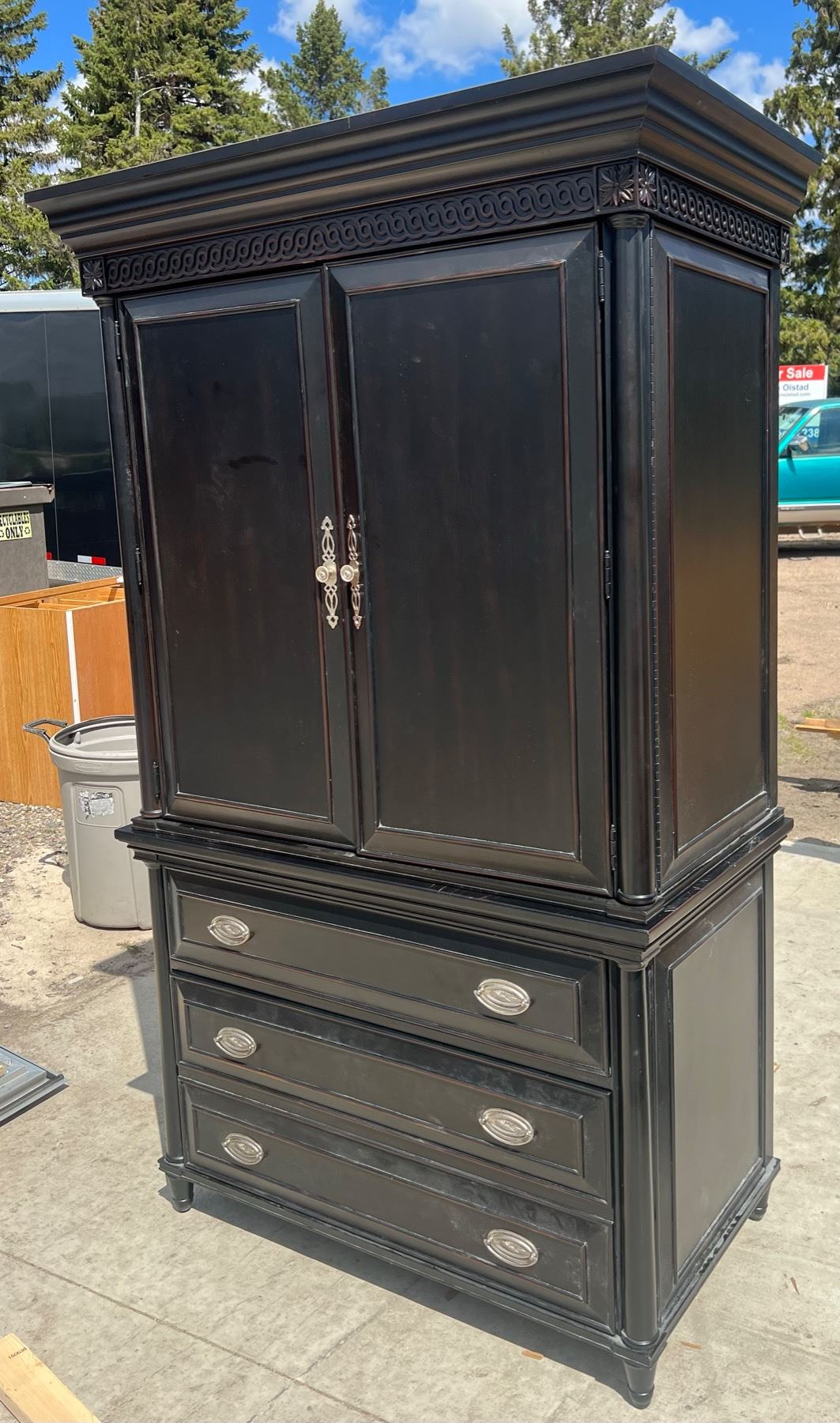 VERY LARGE TWO-PIECE CABINET; WAS USED WITH A TENSION BAR IN A BEDROOM AS AN ARMOIRE; LOTS OF STORAGE OPTIONS!