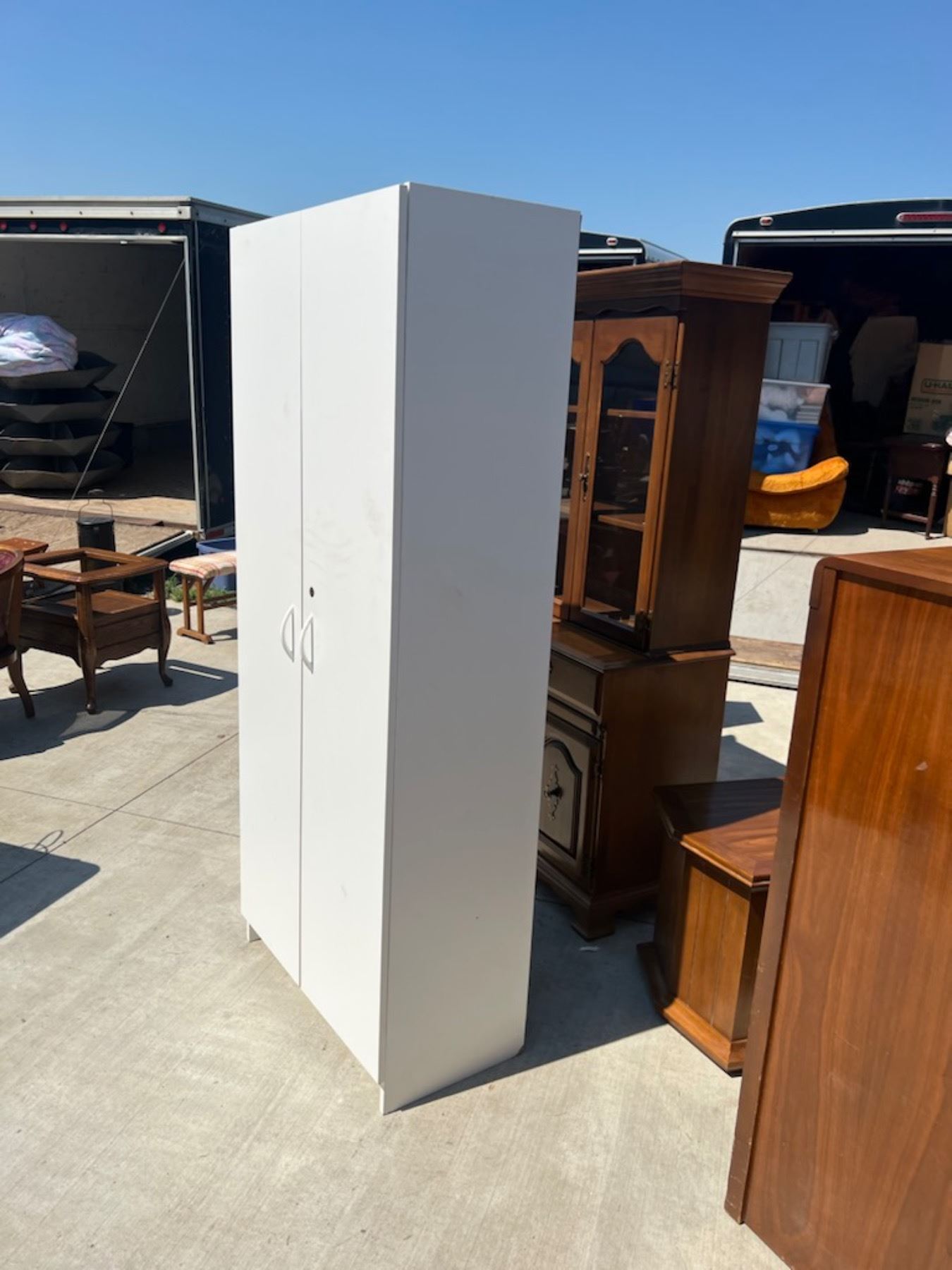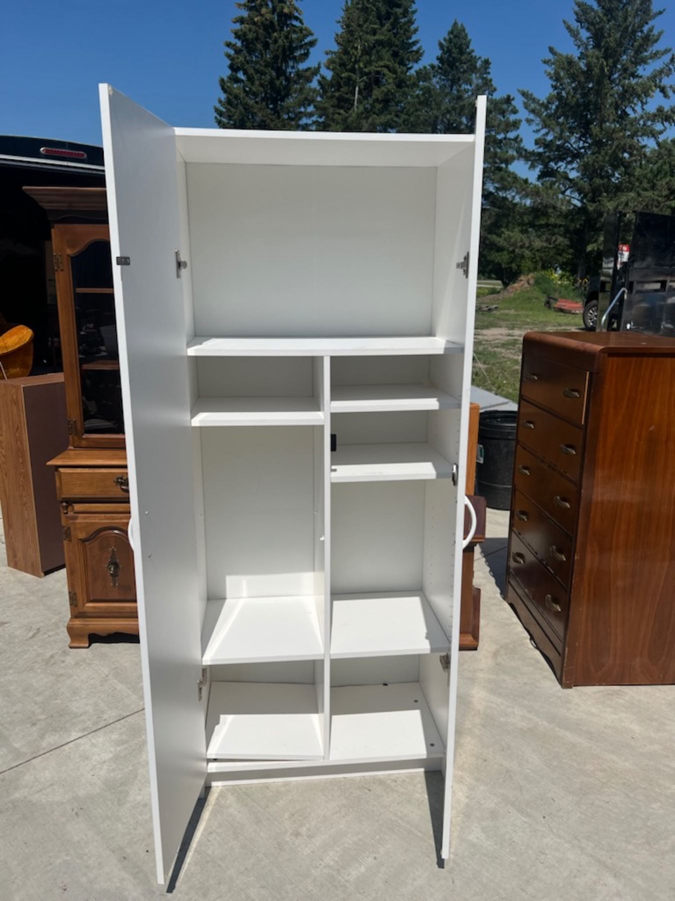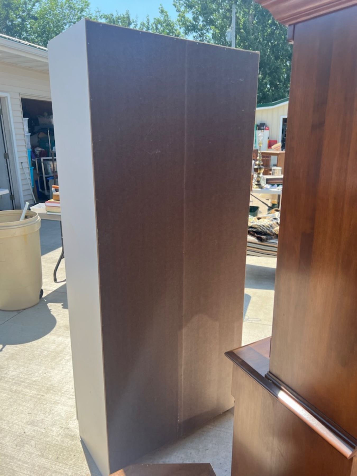 ADJUSTABLE SHELVES; PRESSED WOOD CONSTRUCTION, BUT VERY SOLID