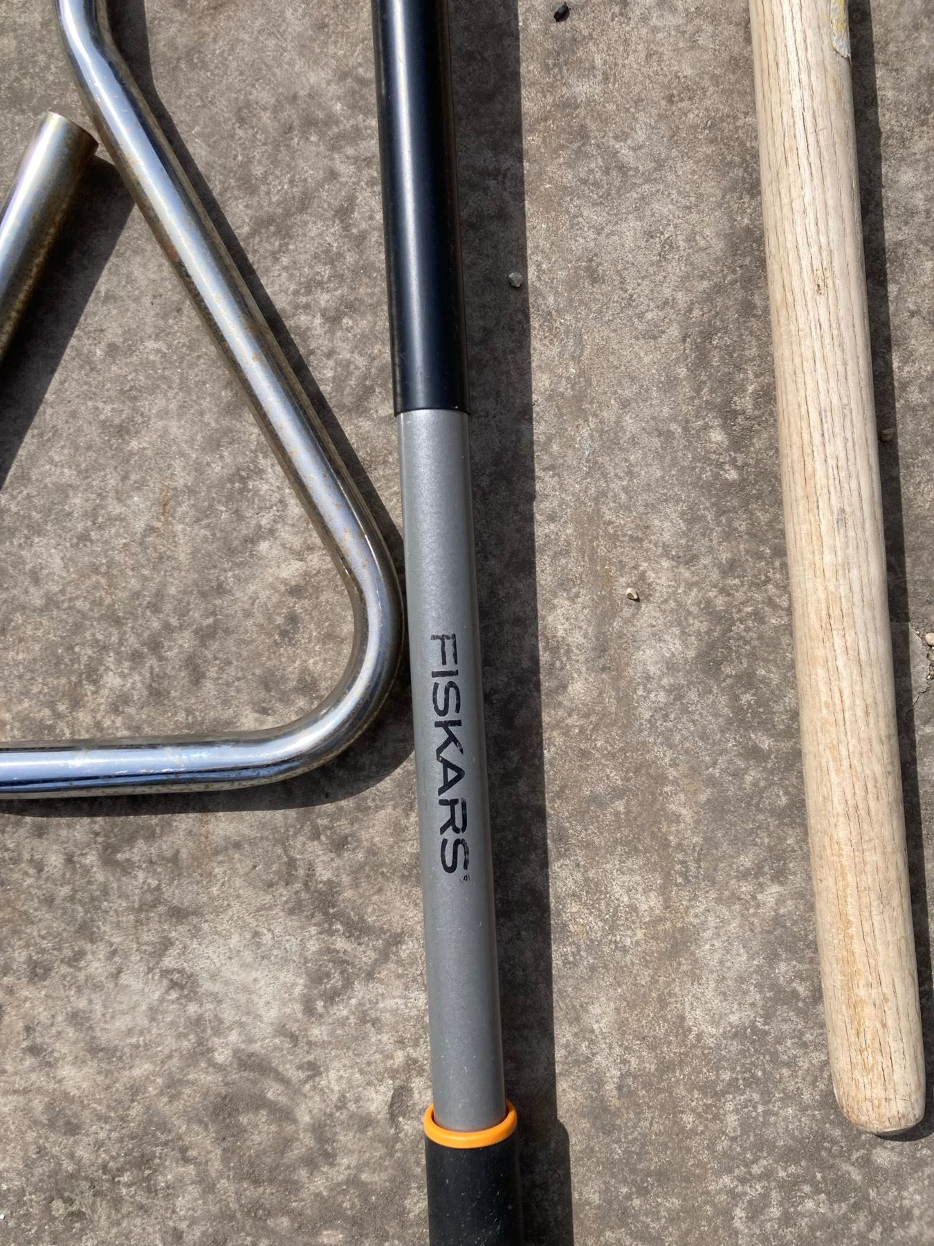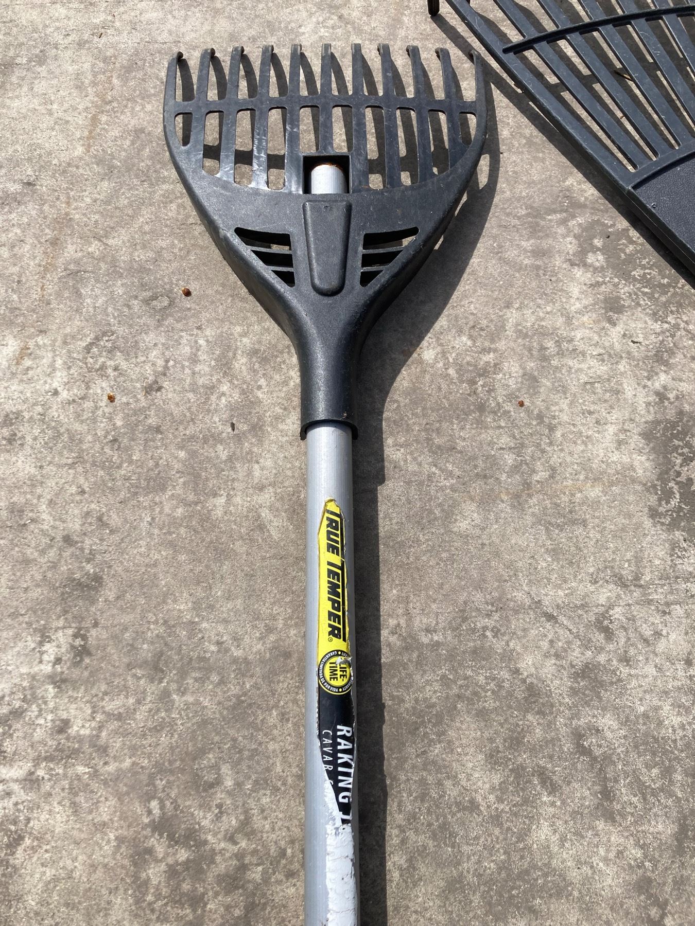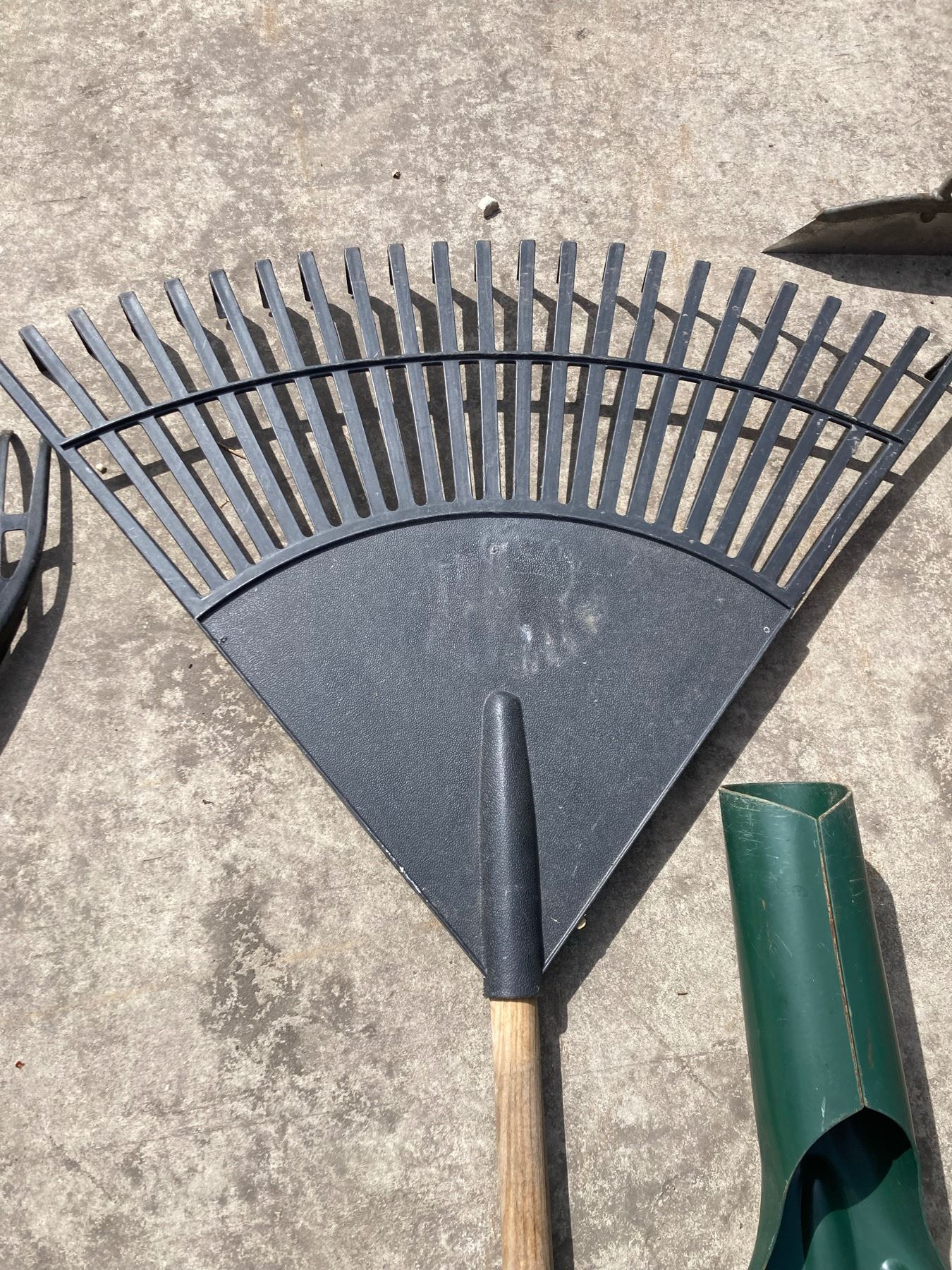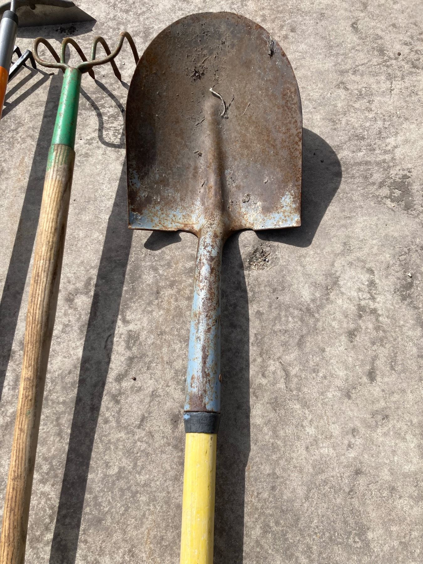 LAWN CARE LOT: RAKES, HOE, SHOVEL, AND BULB PLANTER