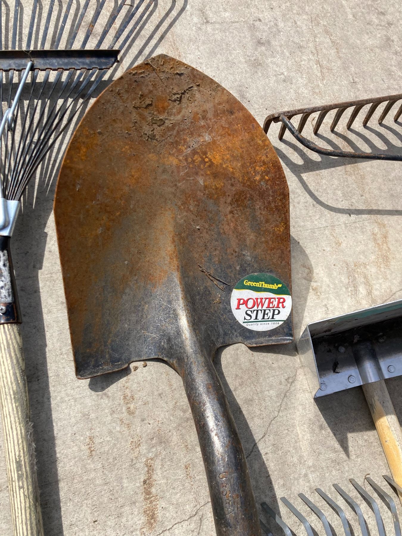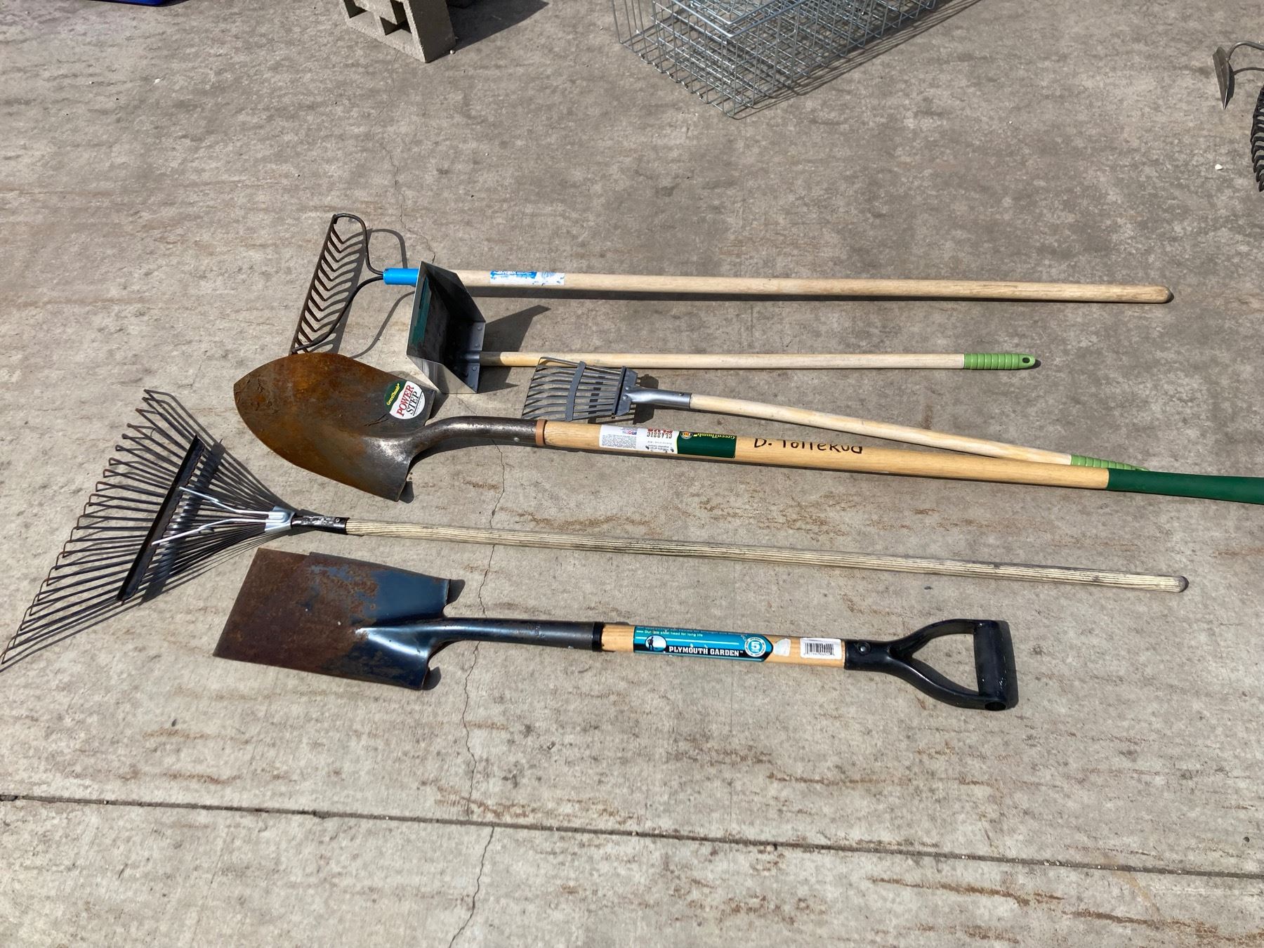 LAWN CARE LOT: RAKES, SHOVELS, AND DUSTPAN