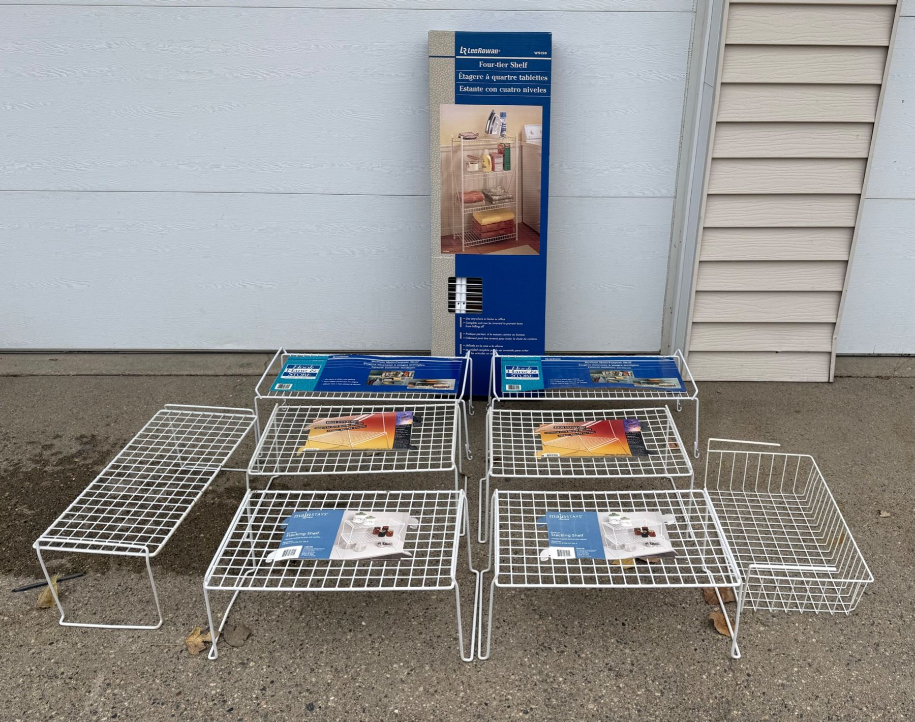 LOT OF COATED WIRE STACKABLE SHELVES AND SHELVING