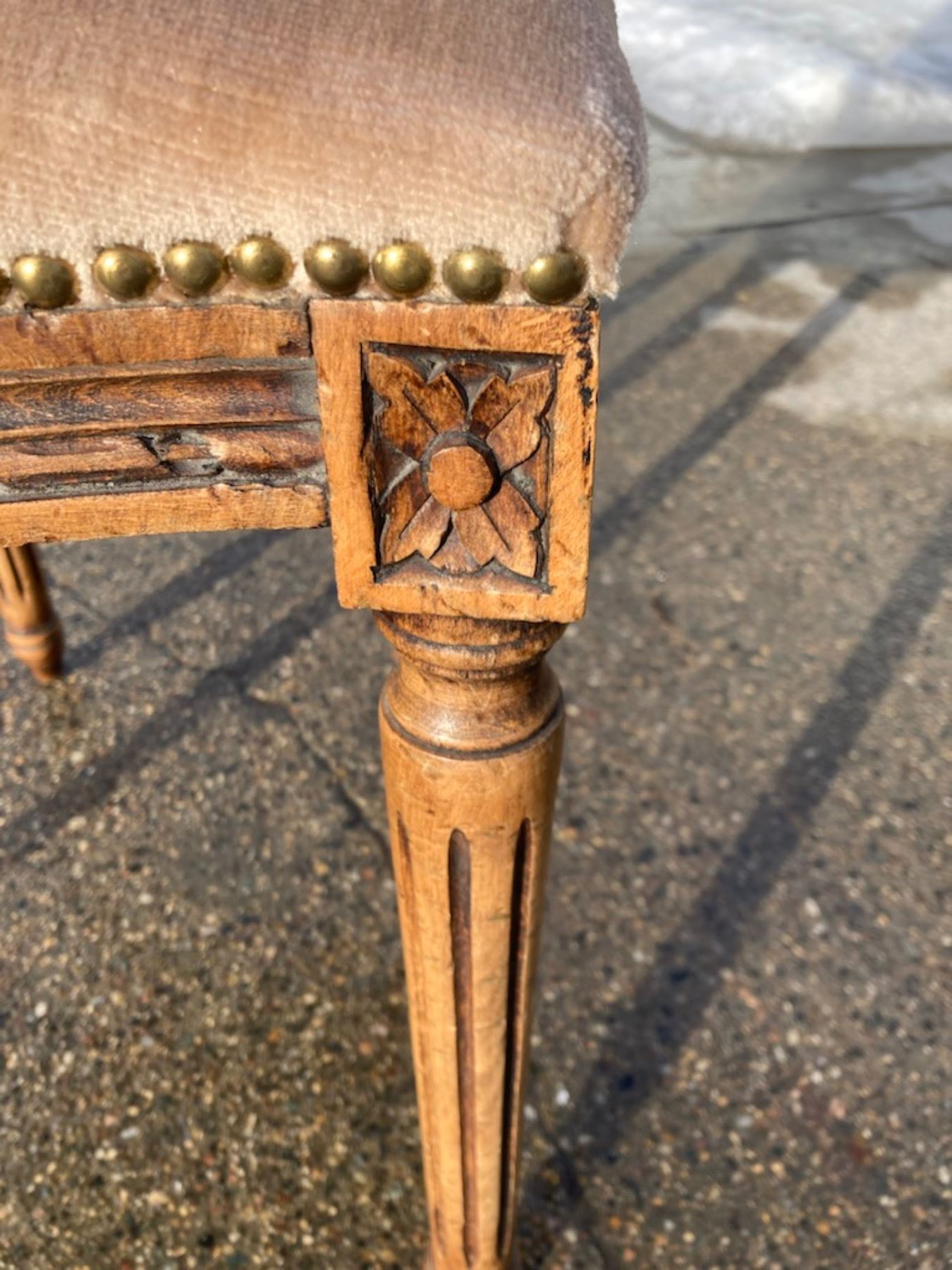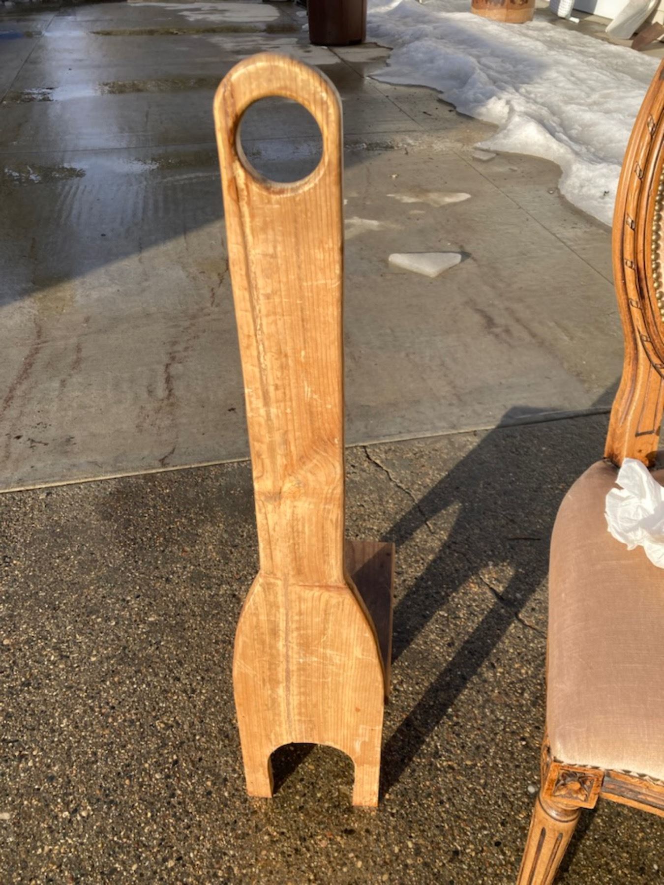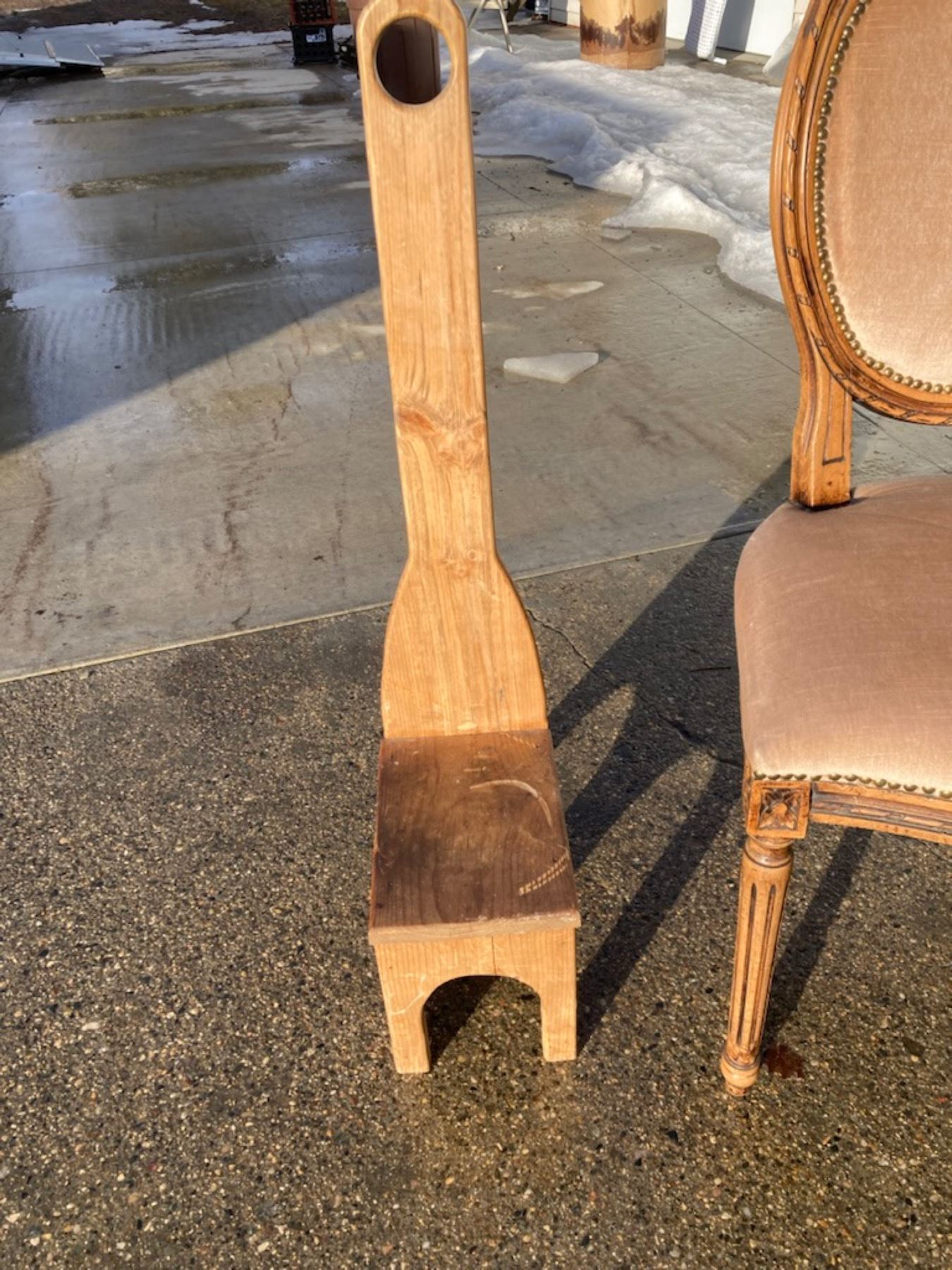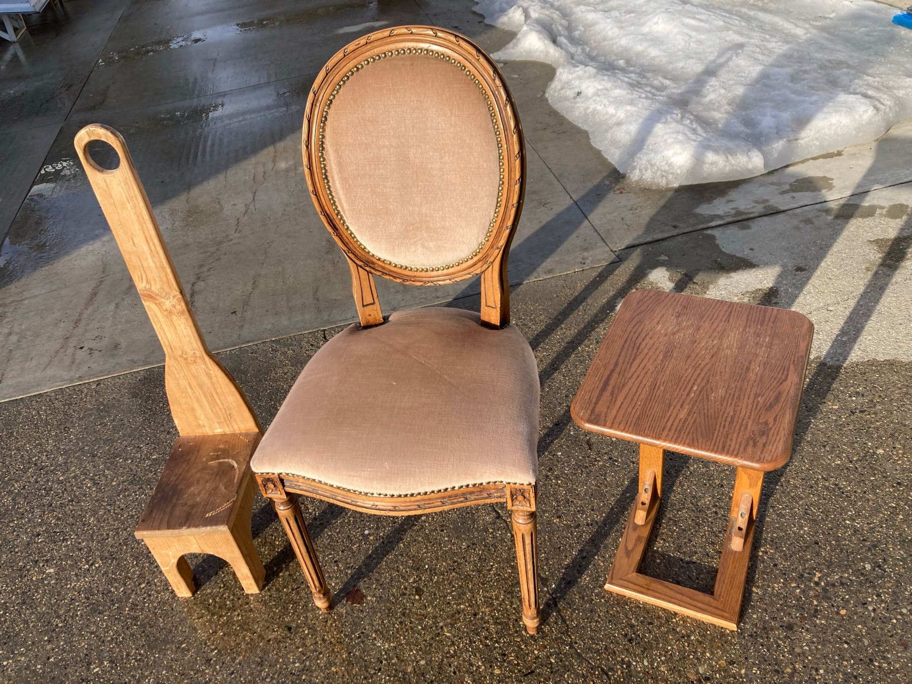 LOUIS XVI STYLE CHAIR, AN SOFA SERVER TABLE, AND A WOODEN STEP STOOL WITH A HANDLE
