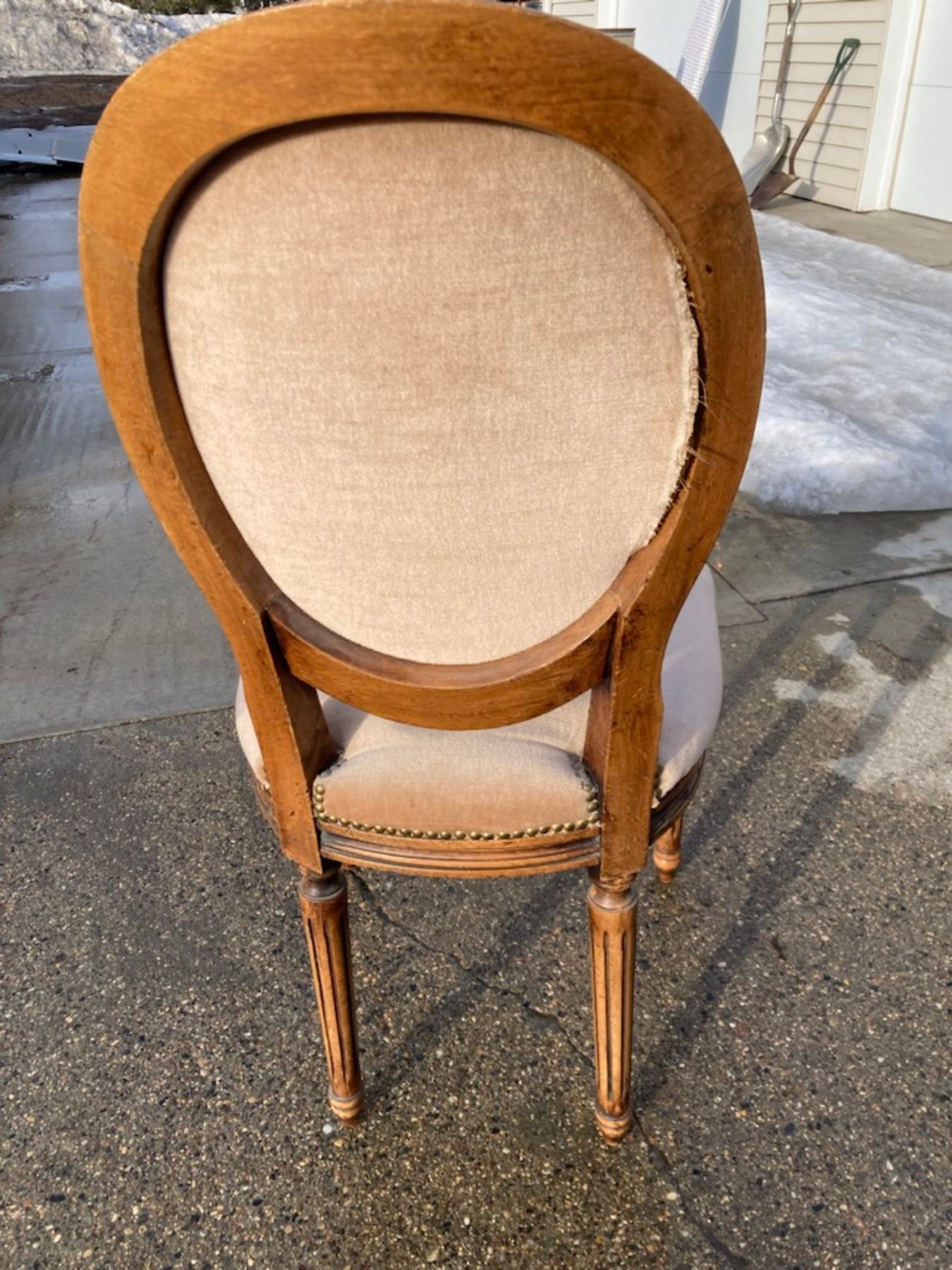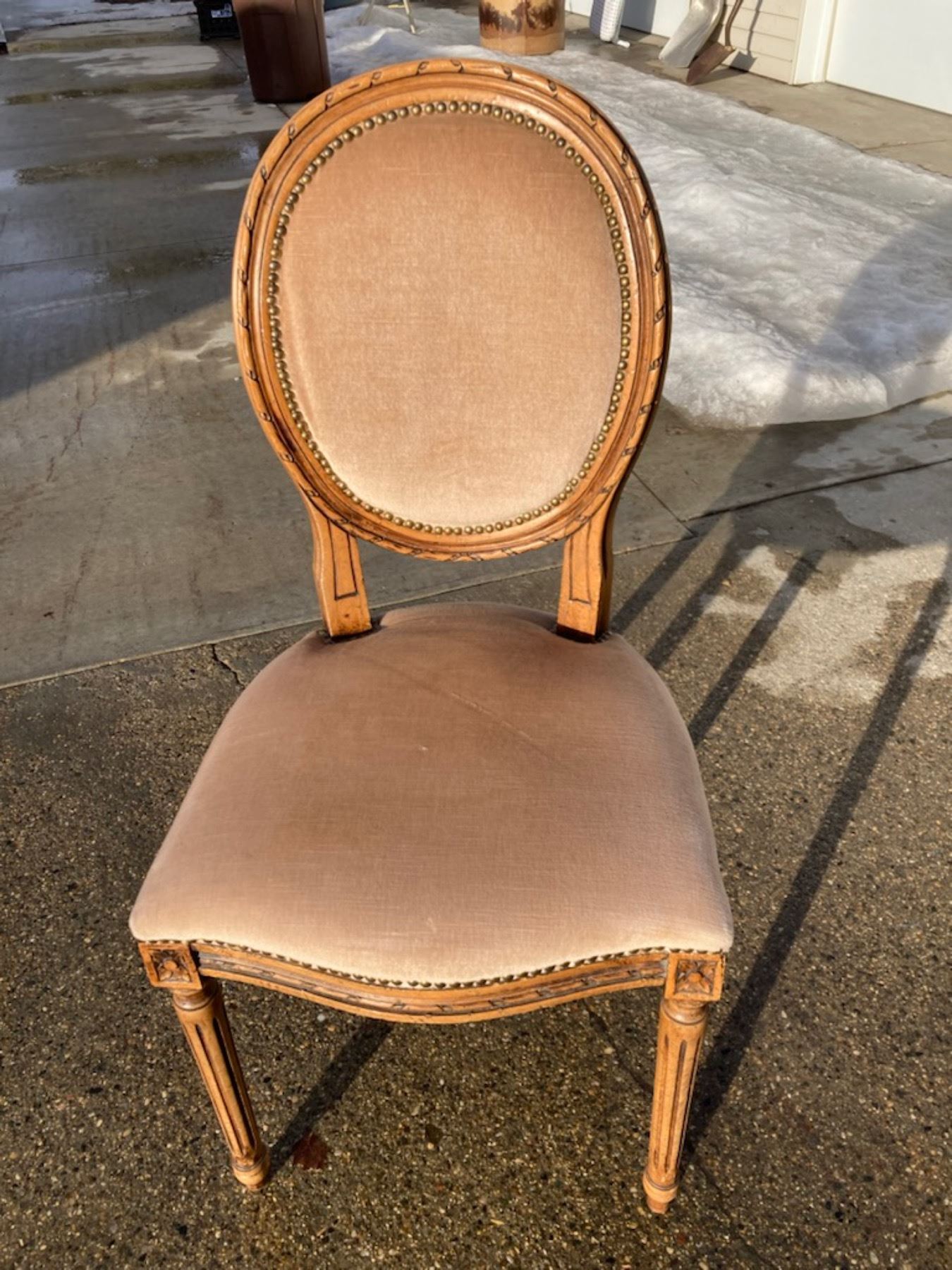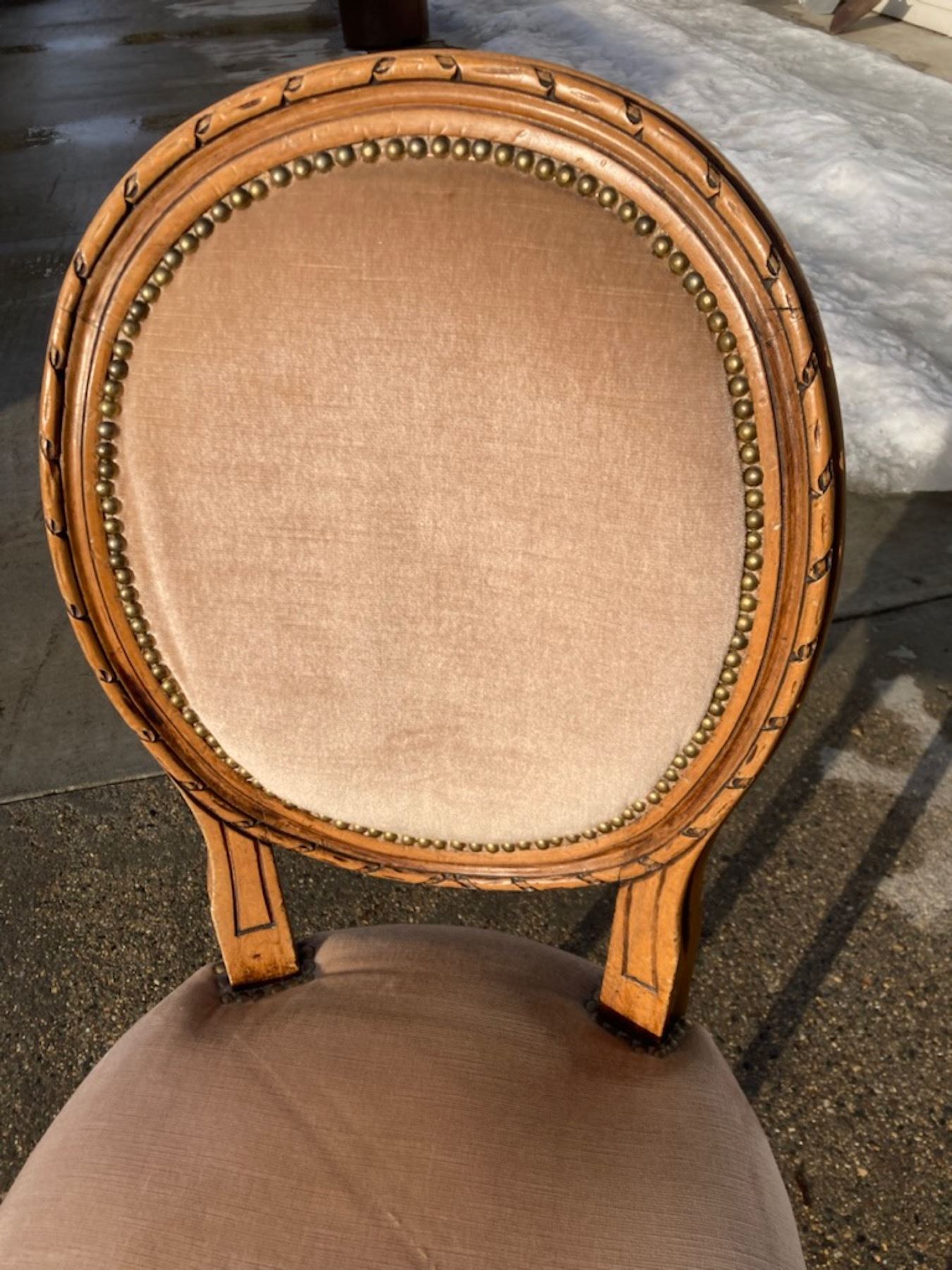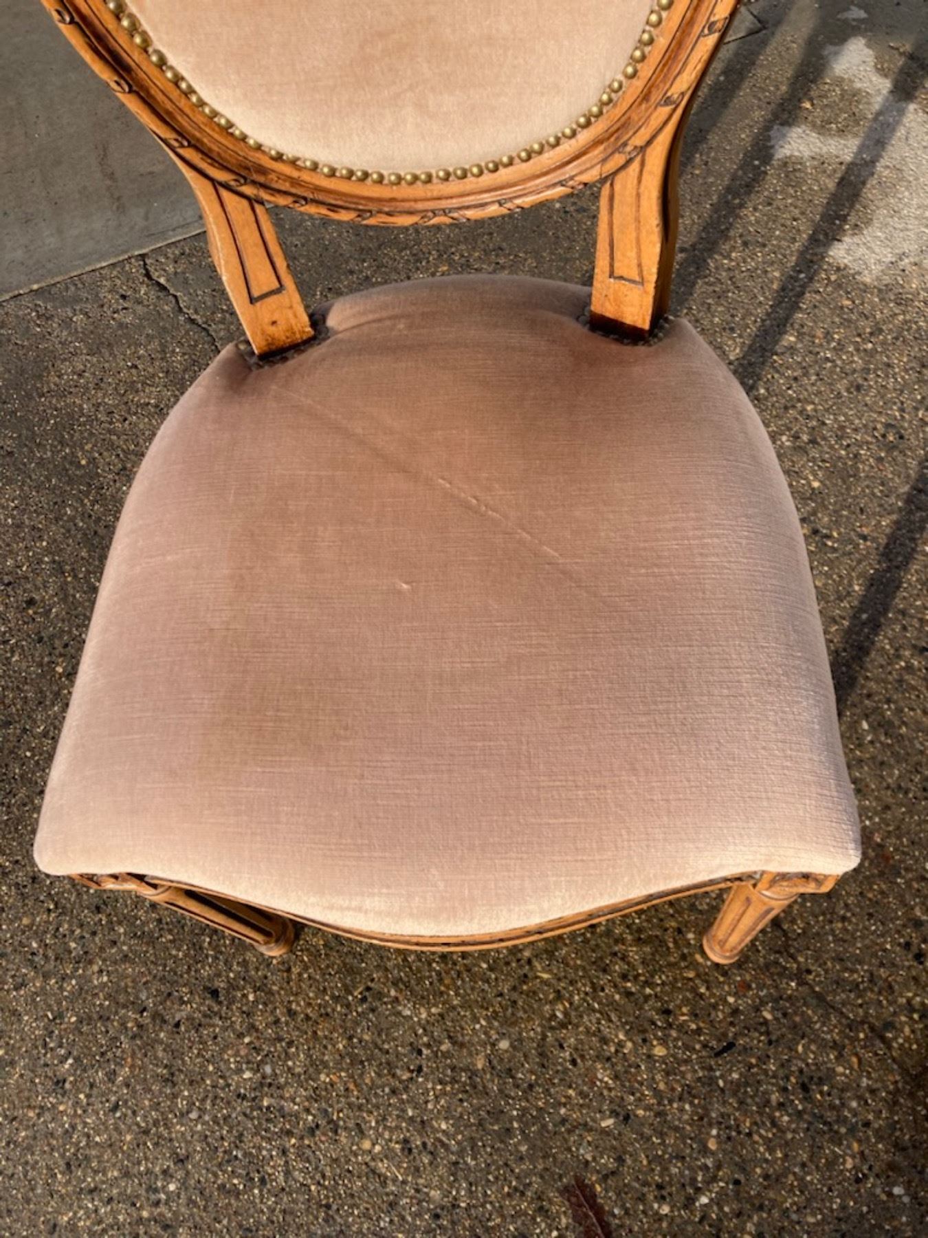 LOUIS XVI STYLE SIDE CHAIR - FEATURES A CHARACTERISTIC CAMEO OR MEDALLION BACK WITH AN OVAL SHAPE; NEOCLASSICAL STYLE WITH AN INTRICATE CARVED WOODEN FRAME